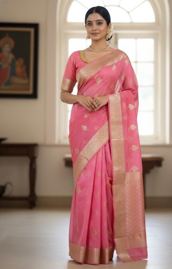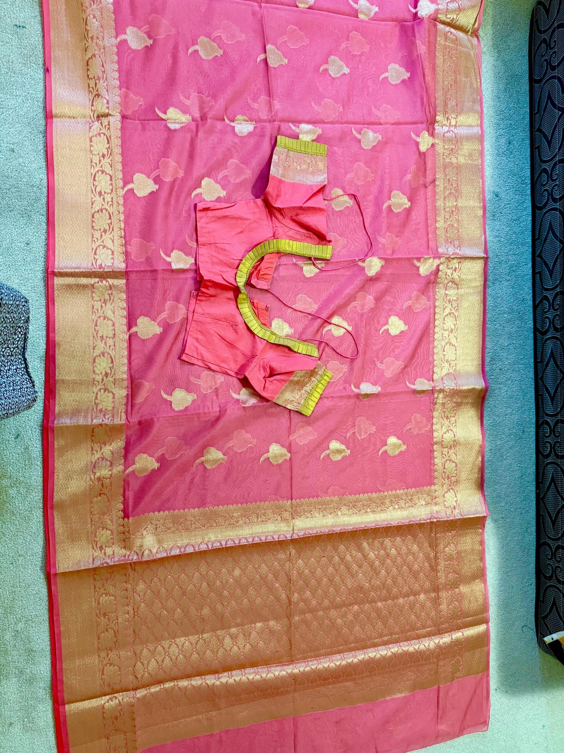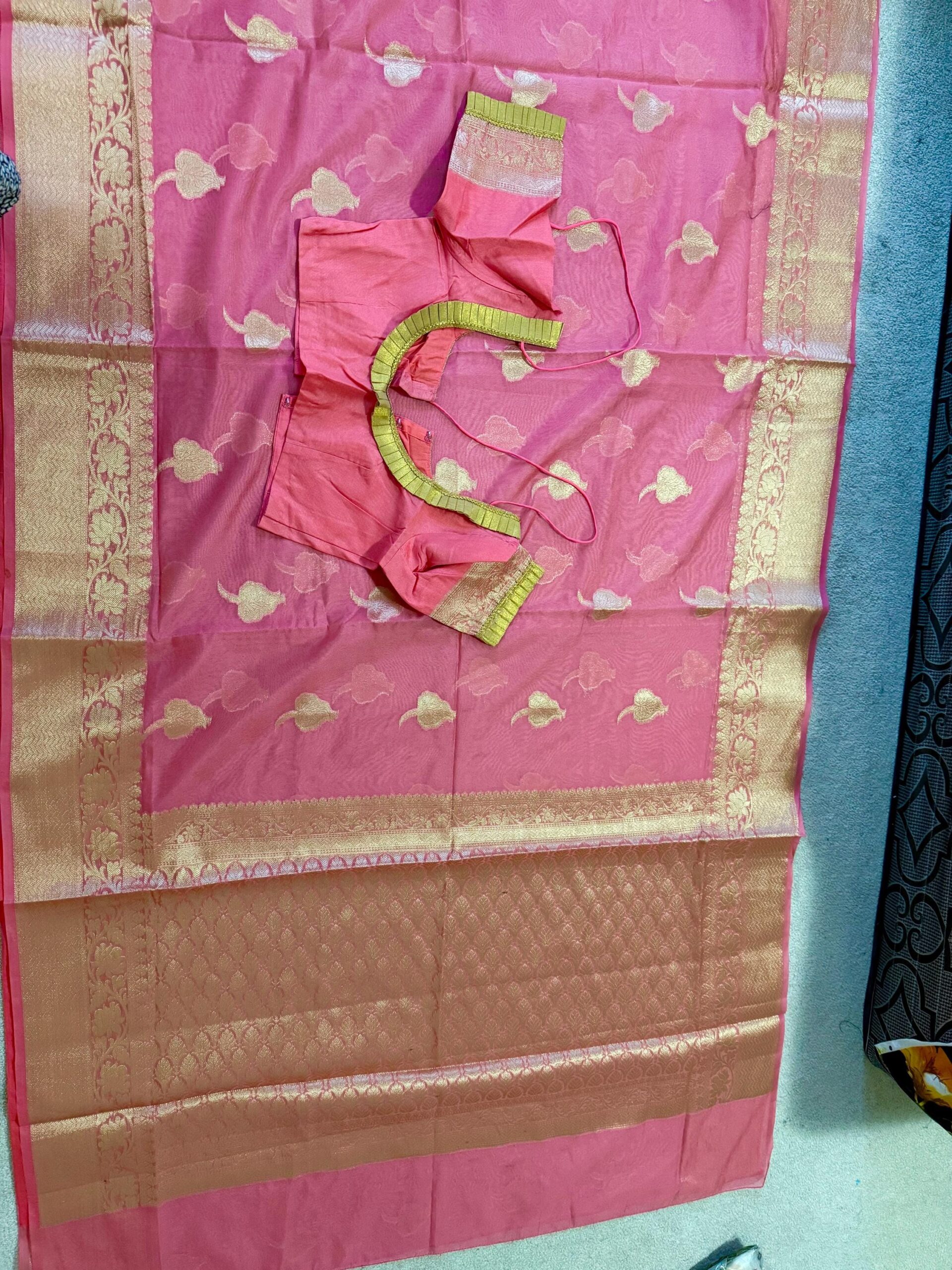 Very good qualityBanarsi fancy beautiful kora organza double zari silk saree very soft and flowy ready to wear designer blouse fits 32-46 eye cooling shades
