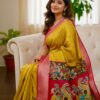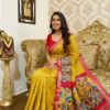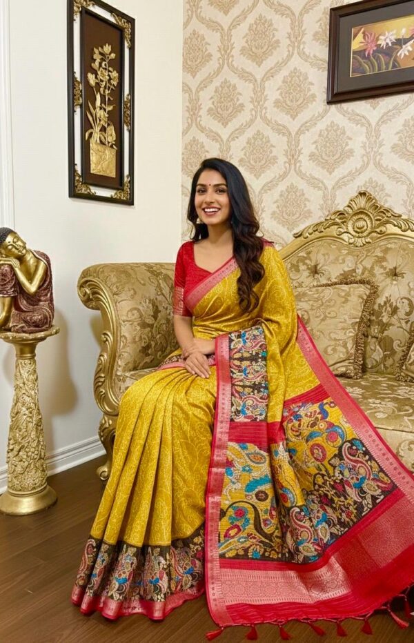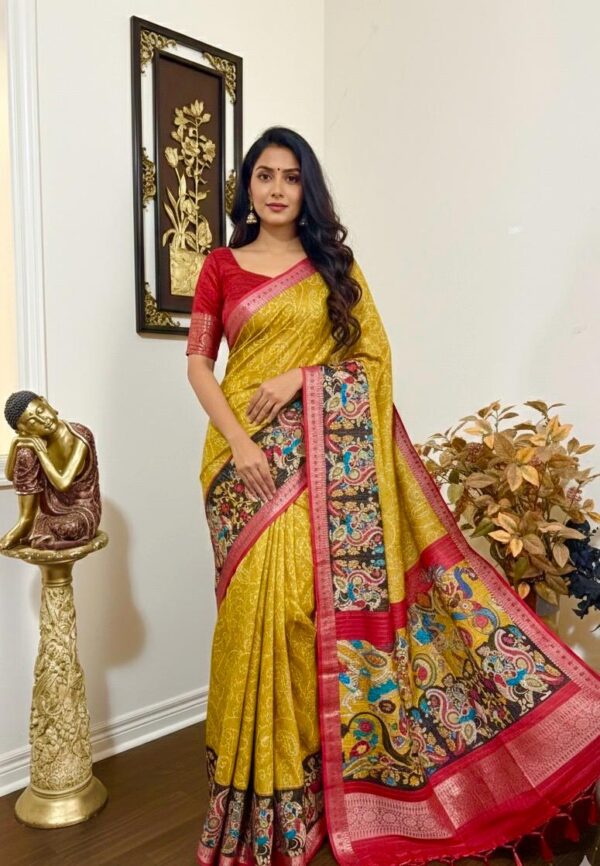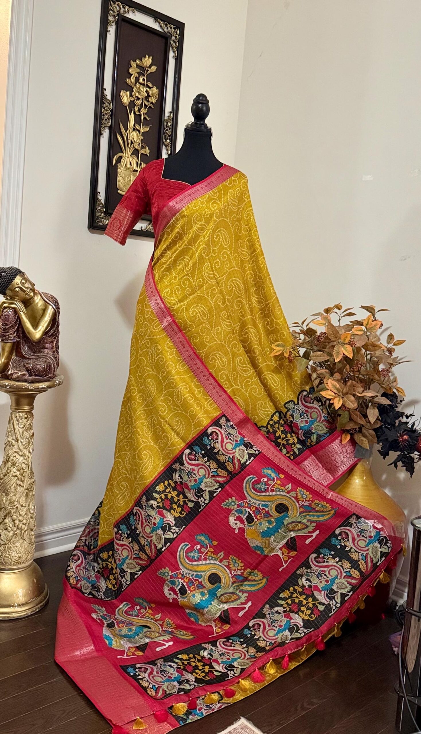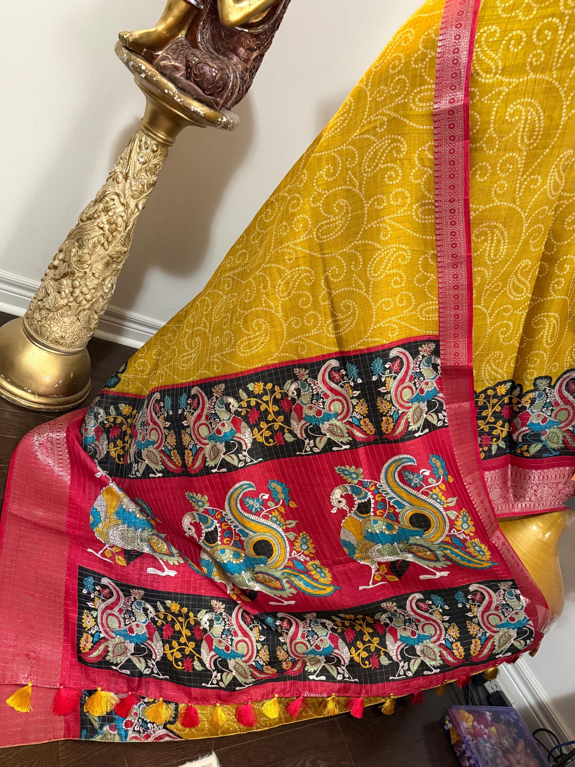 Beautiful Light weight Emerald silk saree with Kanchi boarder beautiful Bhandini prints all over ..beautiful peacock prints along with boarder 🦚 with ready to wear blouse fits 32 to 46 with beautiful color combo