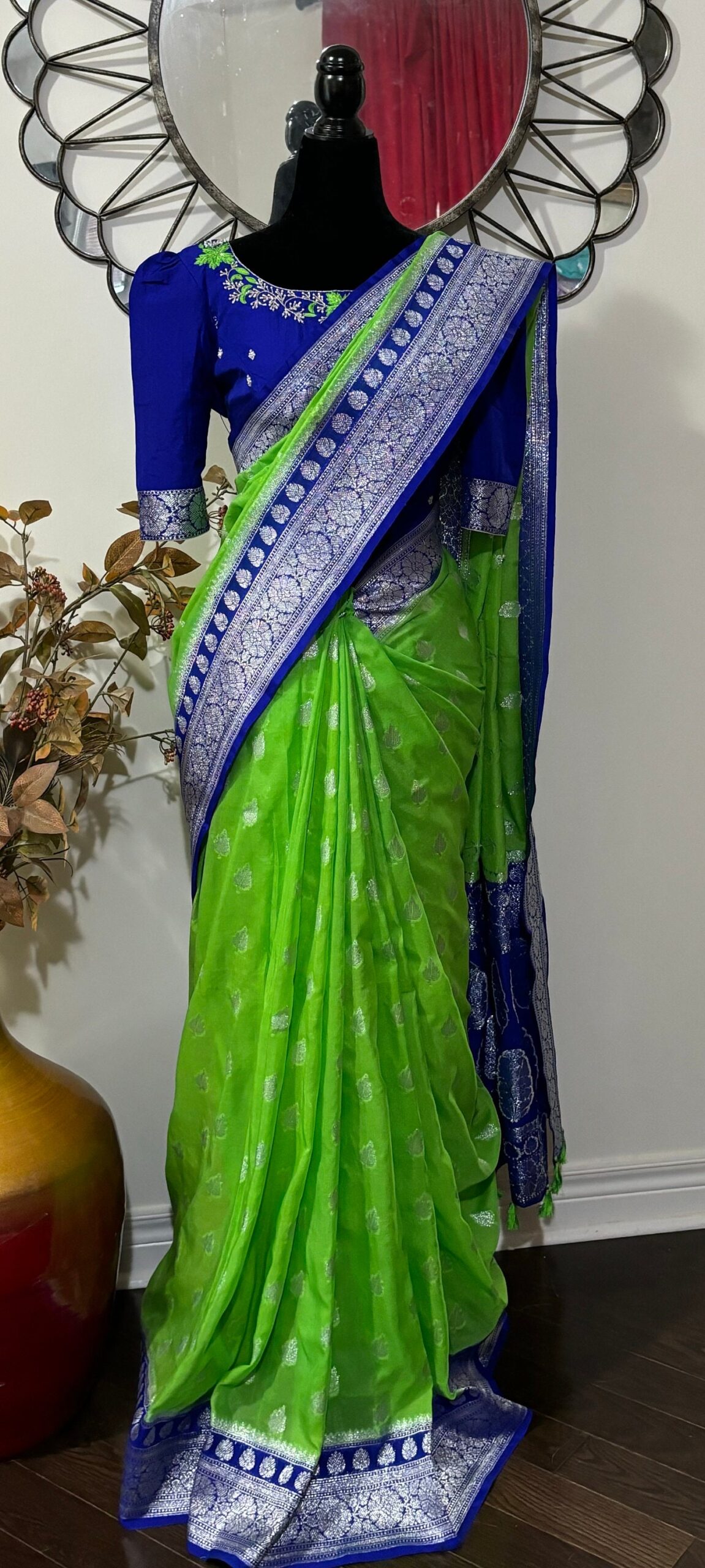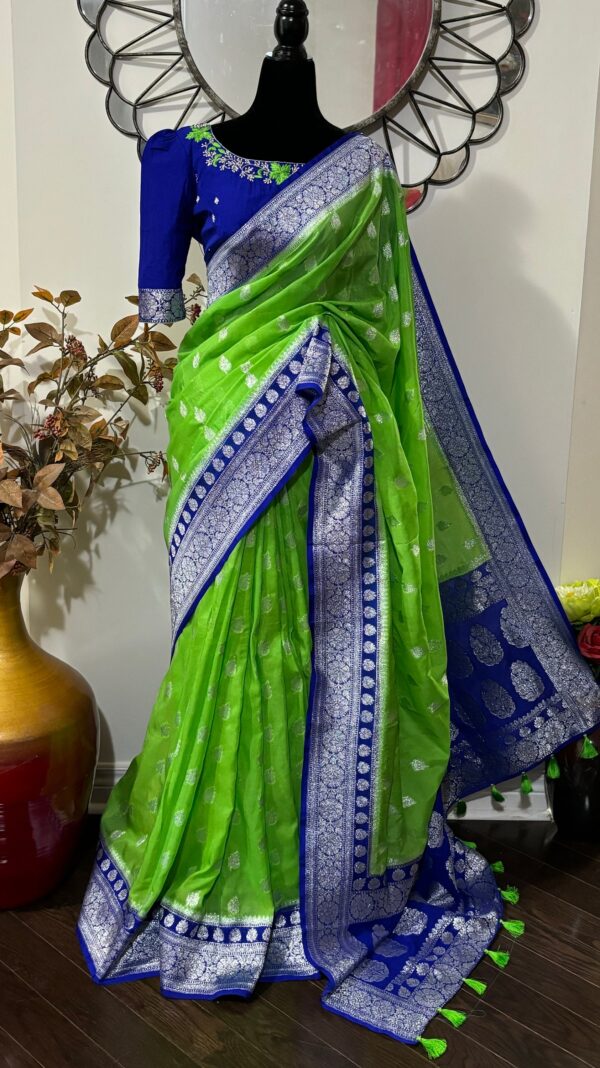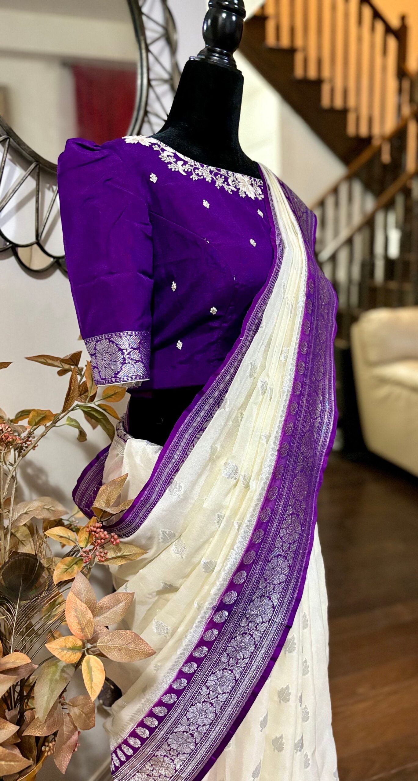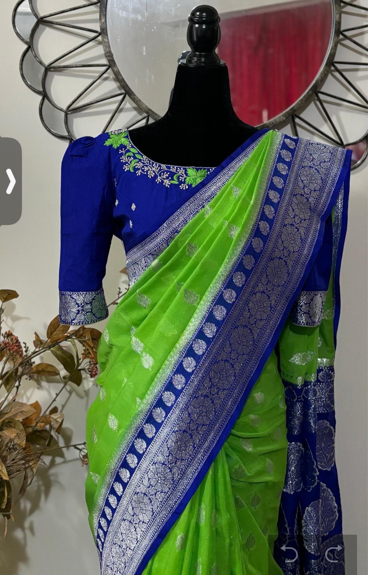 ๐๐ Beautiful banarasi saree paired up with pretty maggam work blouse.
