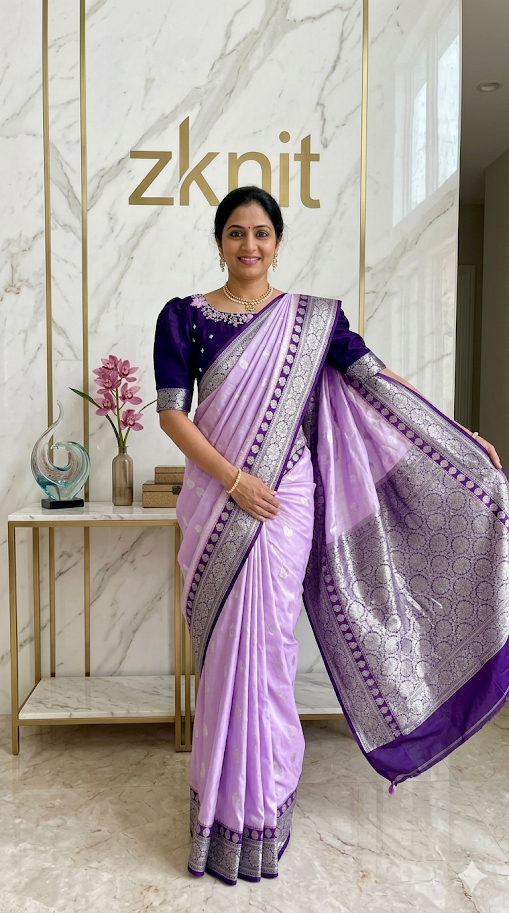 Banarasi Katan Pure Silk Saree in Violet Purple