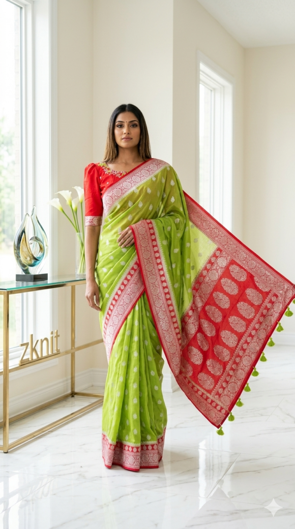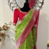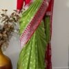 Banarasi Katan Pure Silk saree in Light Green and Red