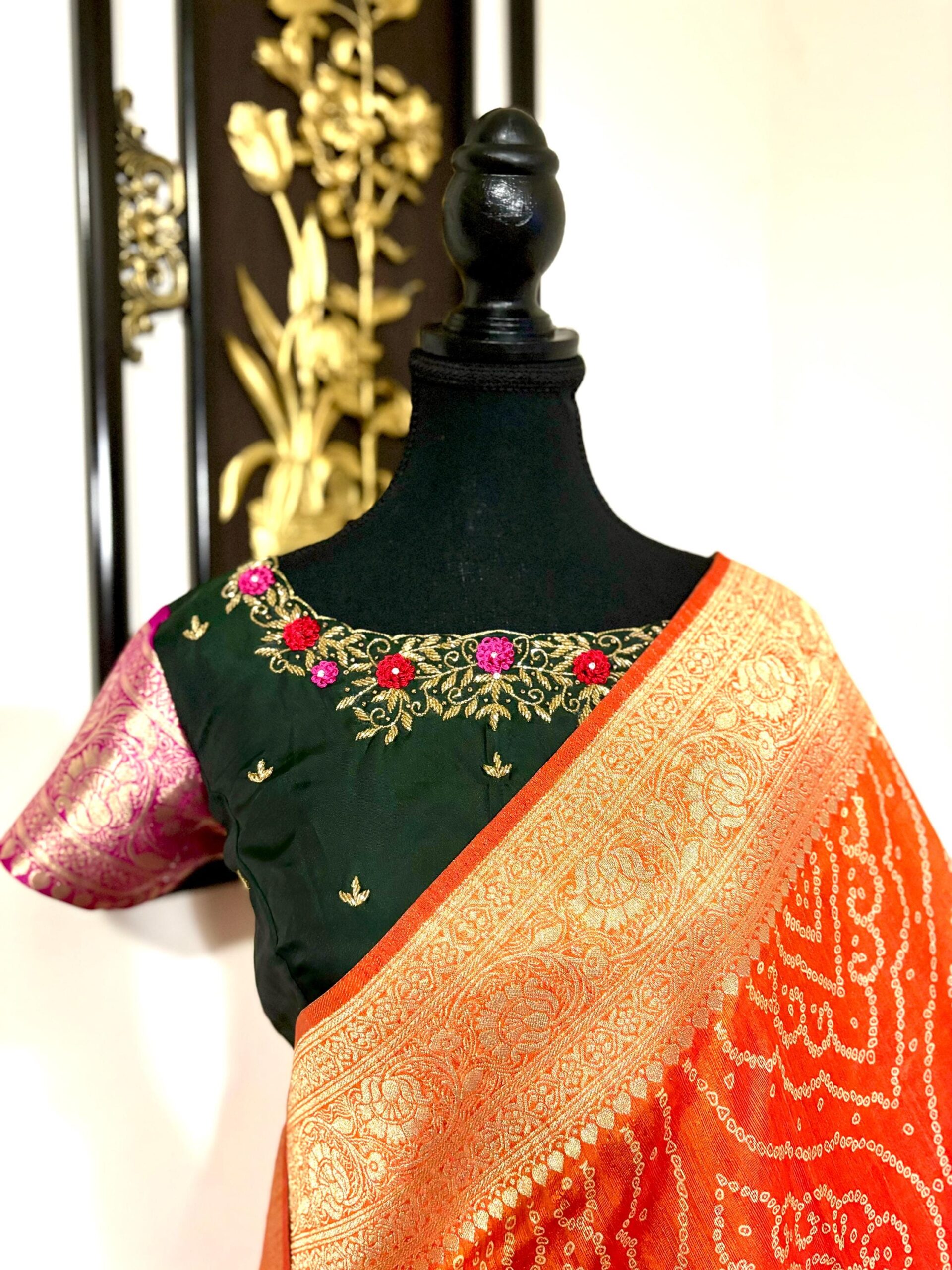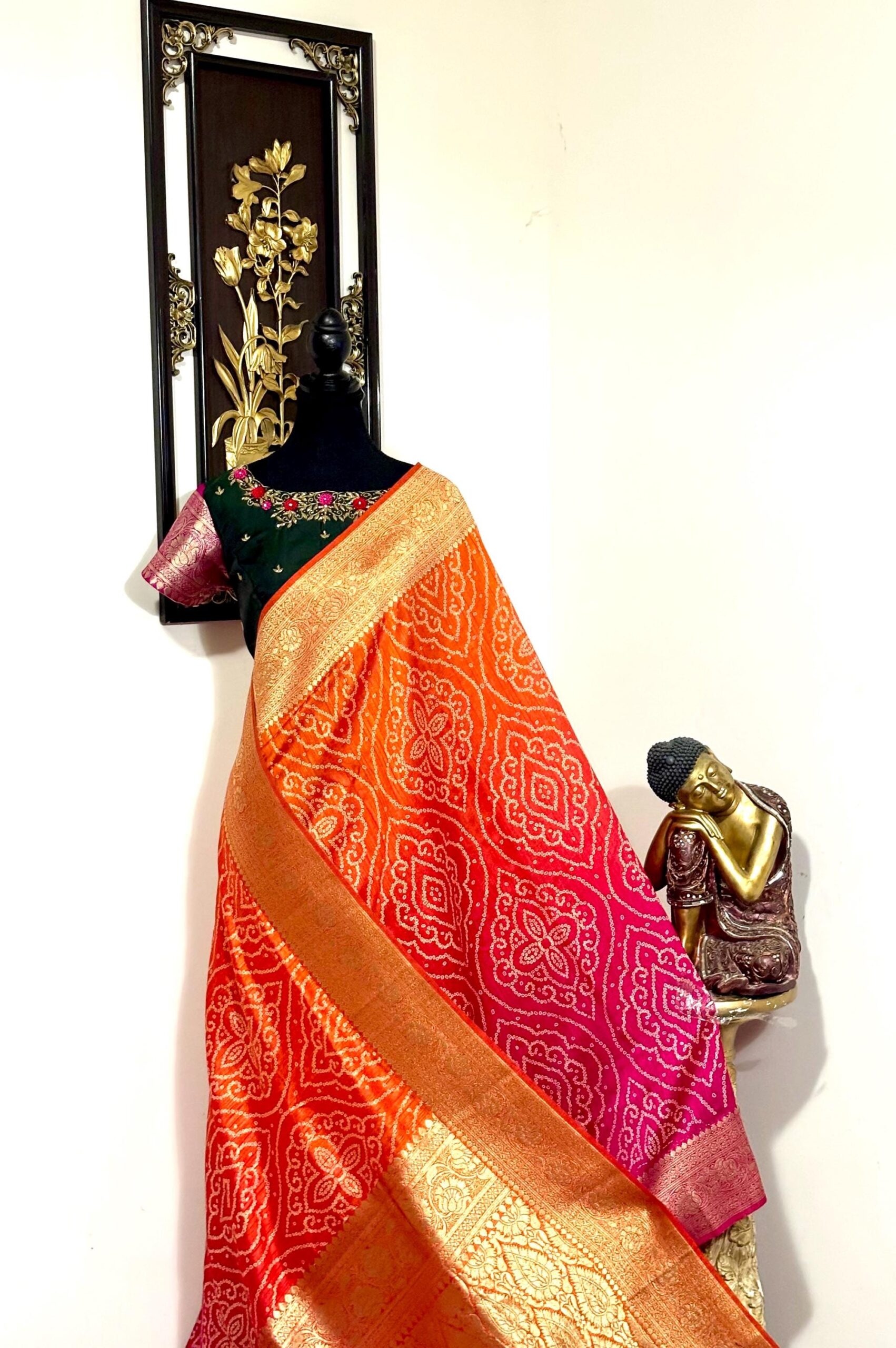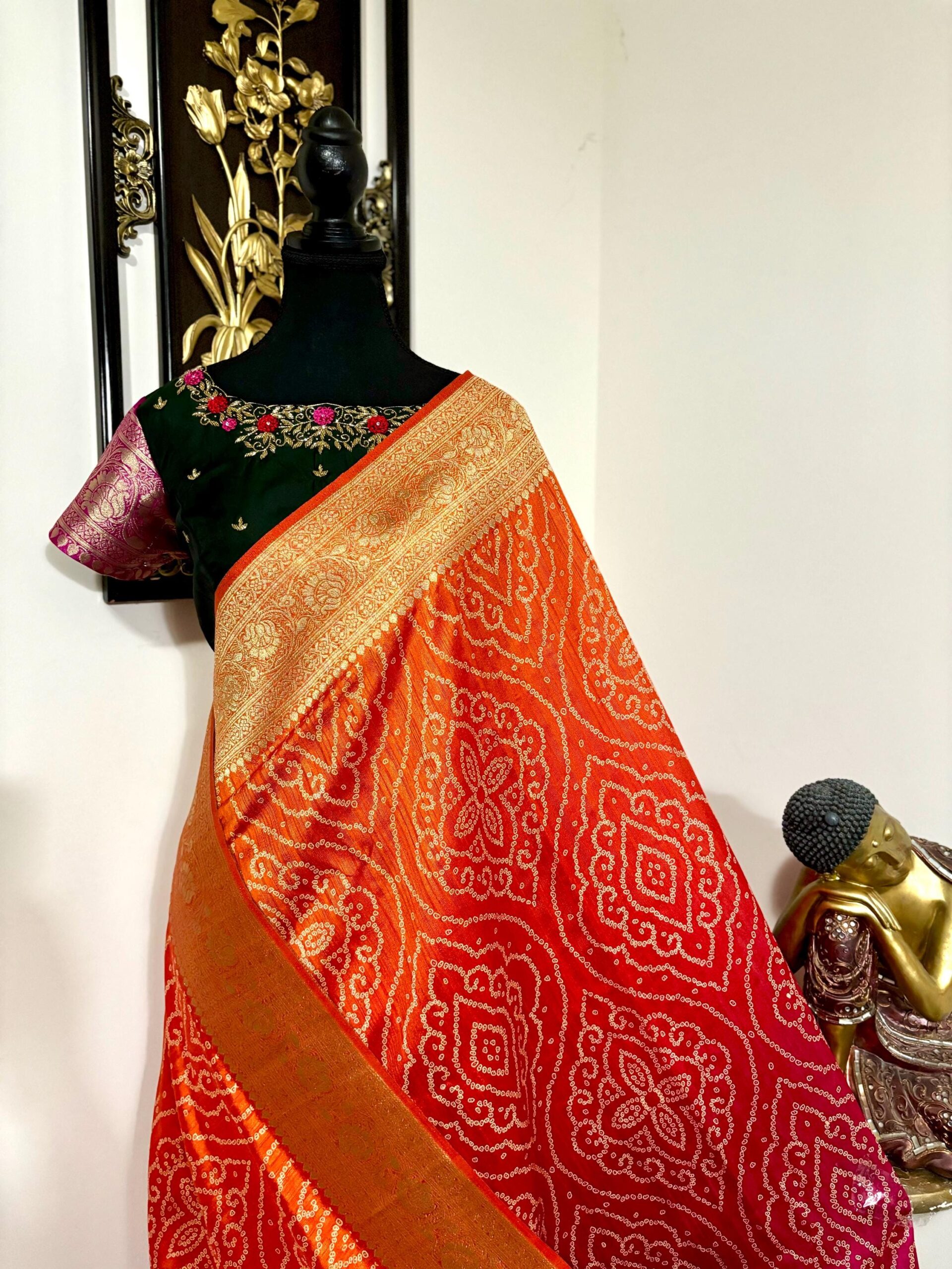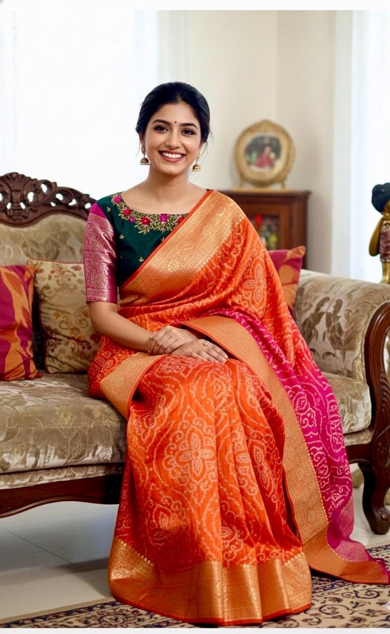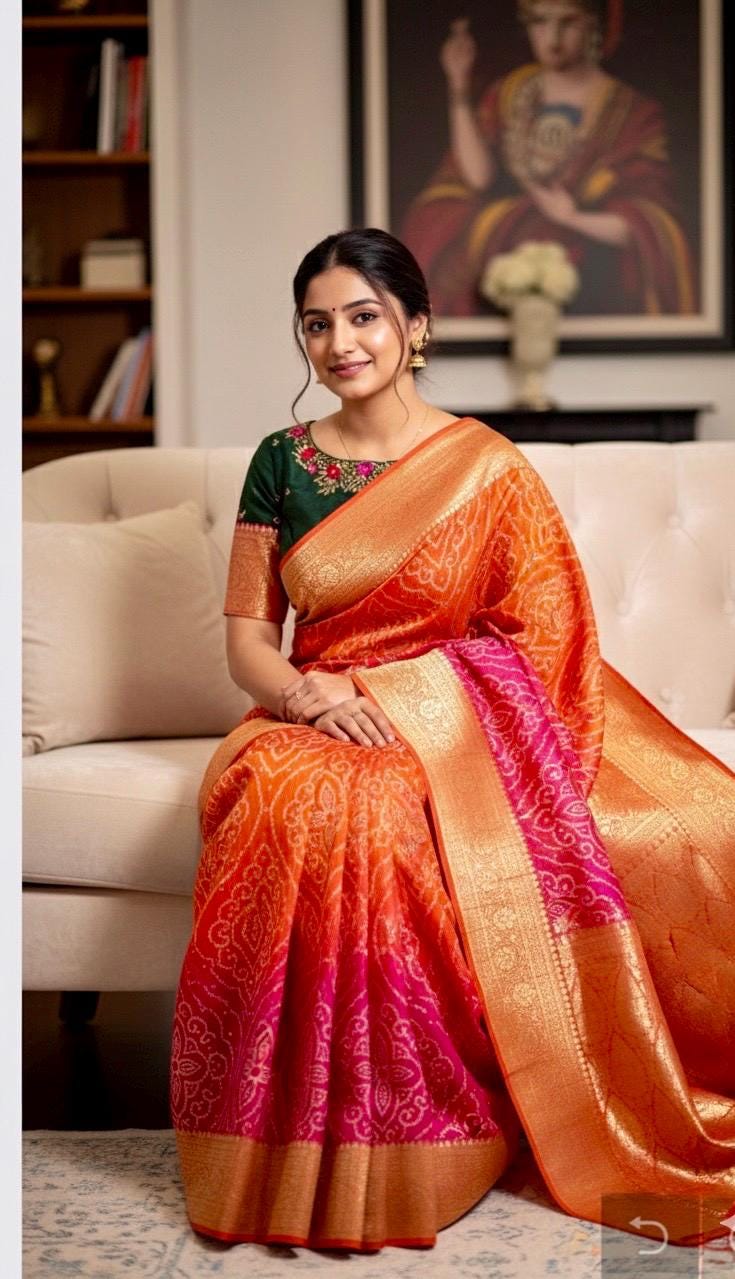 🪷🪷 Beautiful Dual shade banarasi bandhini silk saree paired up with pretty blouse.