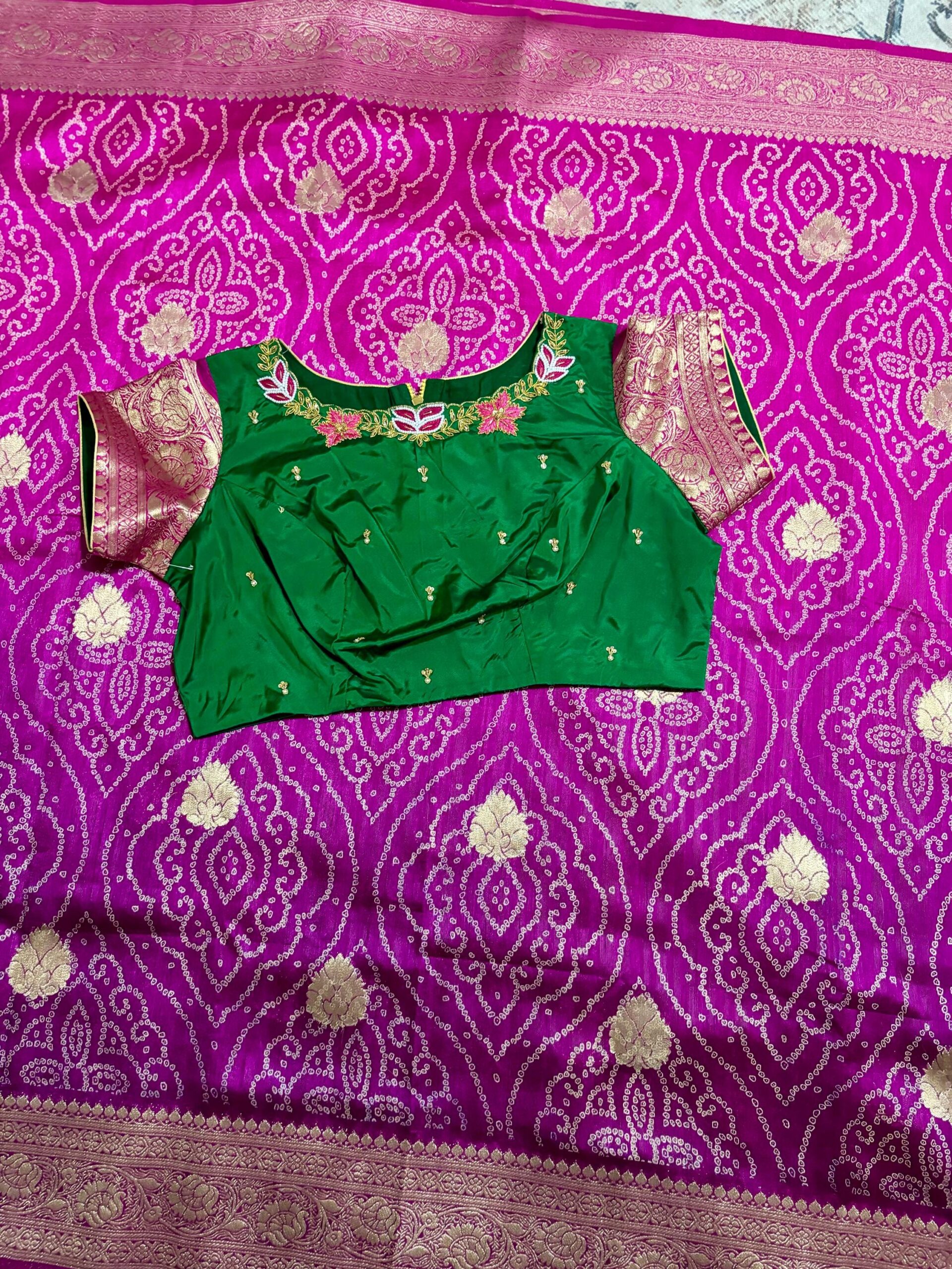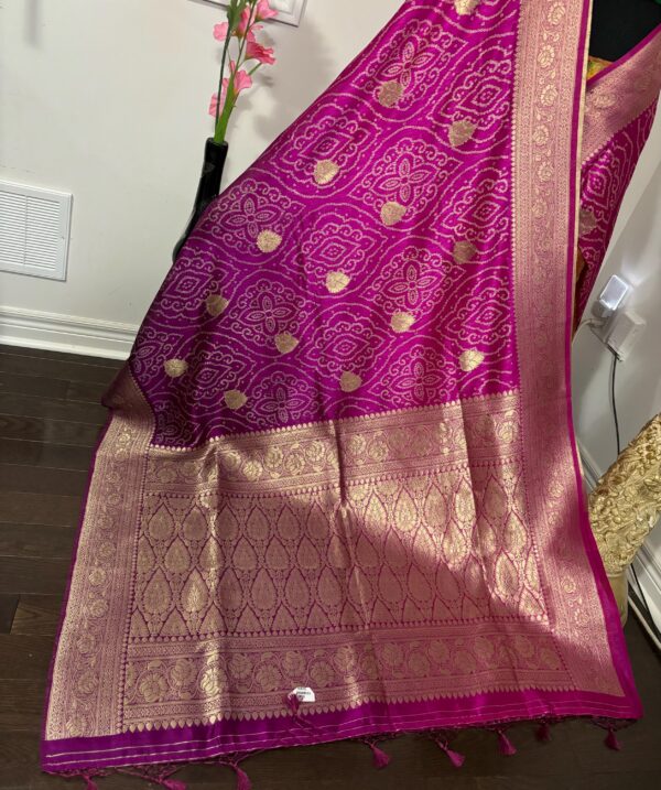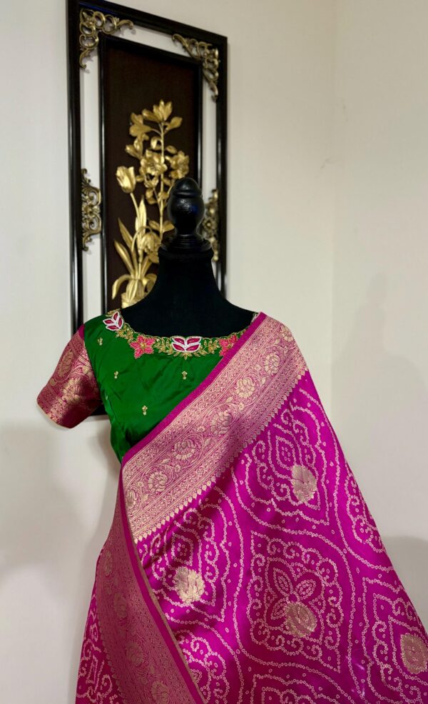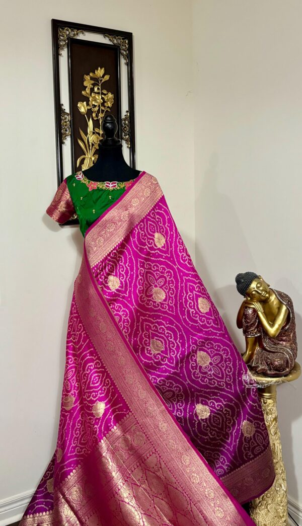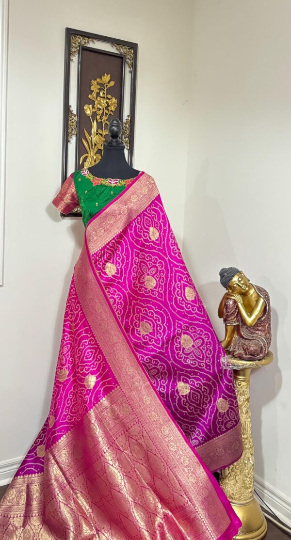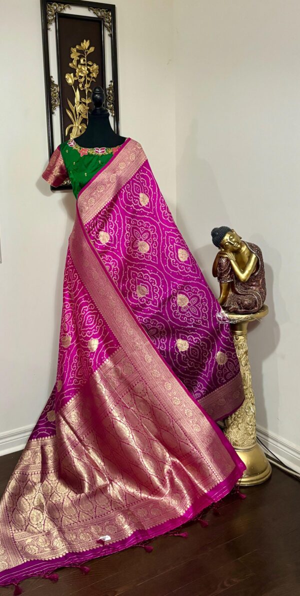 🪷🪷 Beautiful Dual shade banarasi bandhini silk saree paired up with pretty blouse.