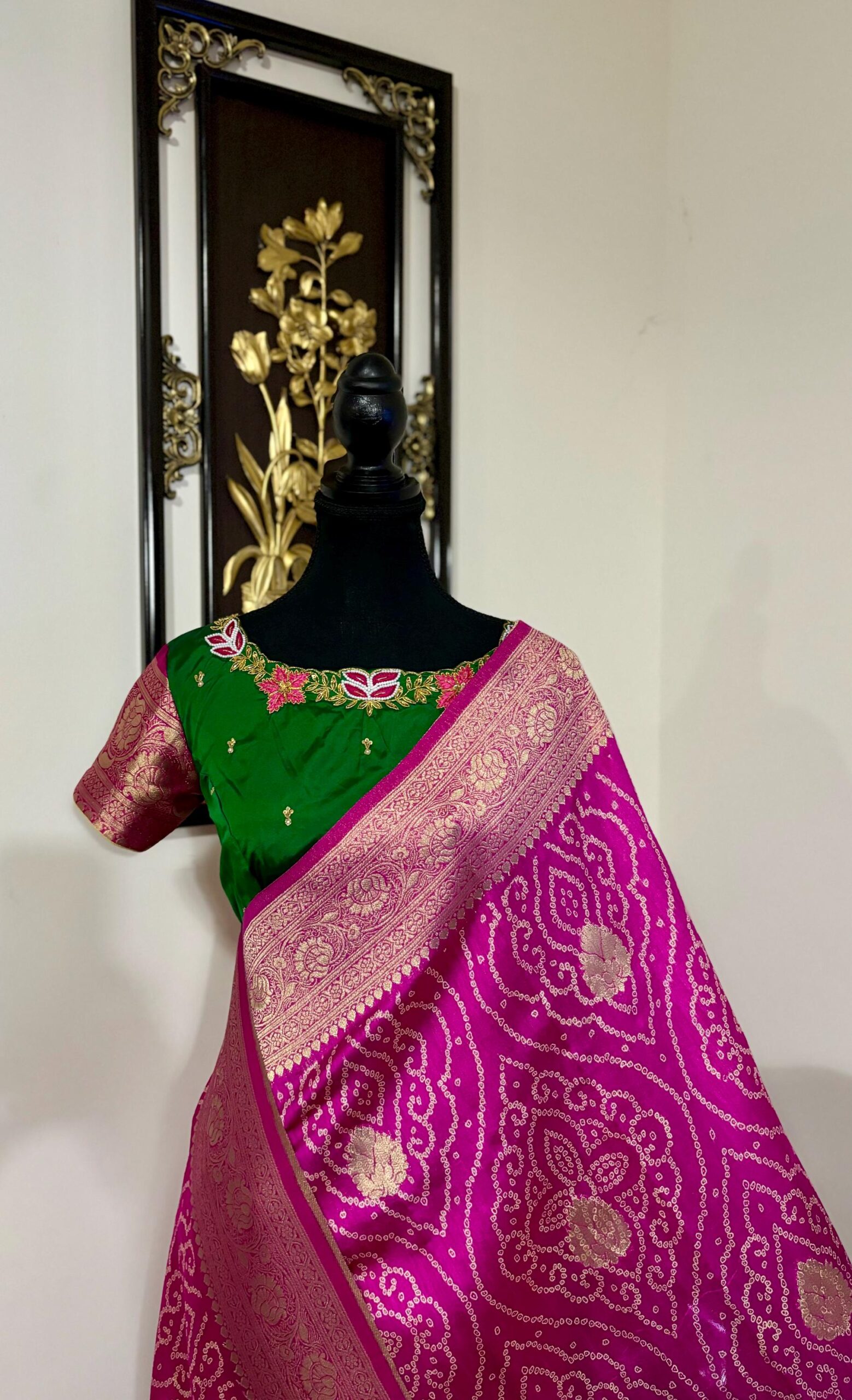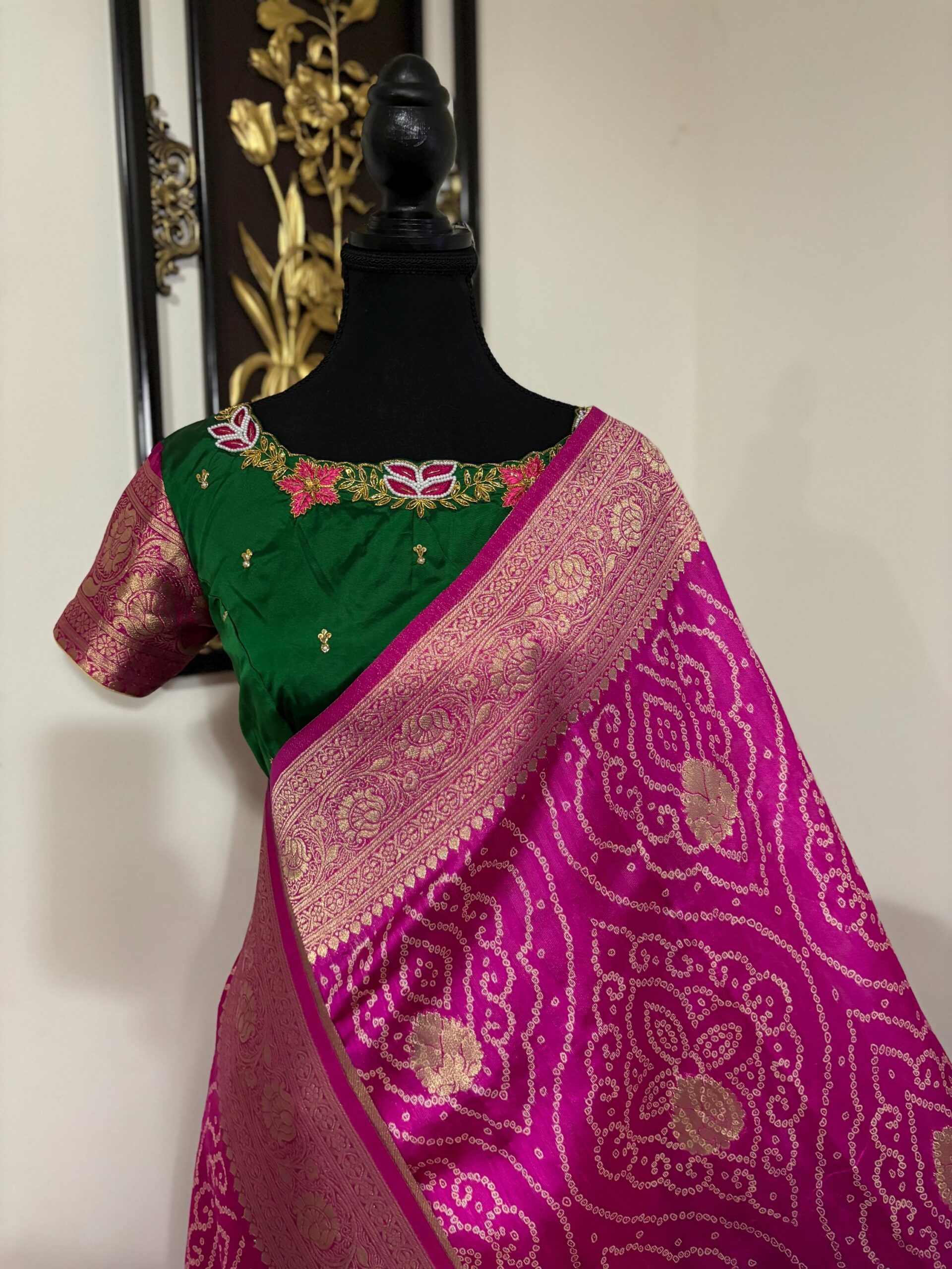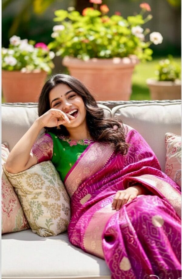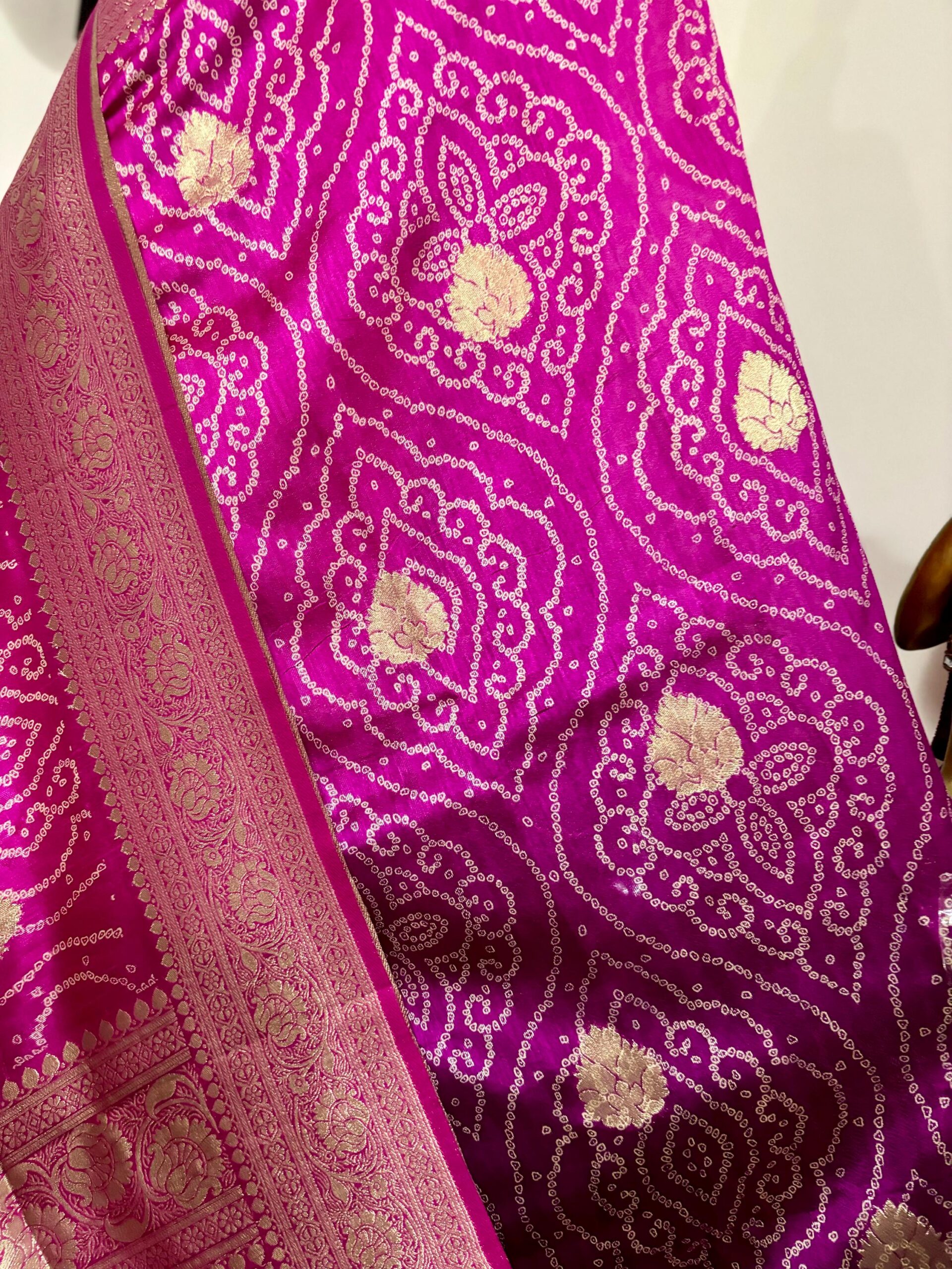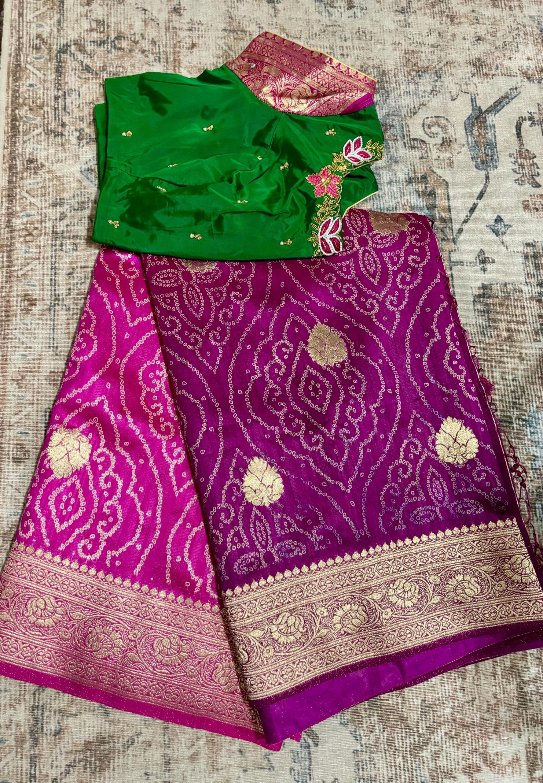 🪷🪷 Beautiful Dual shade banarasi bandhini silk saree paired up with pretty blouse.