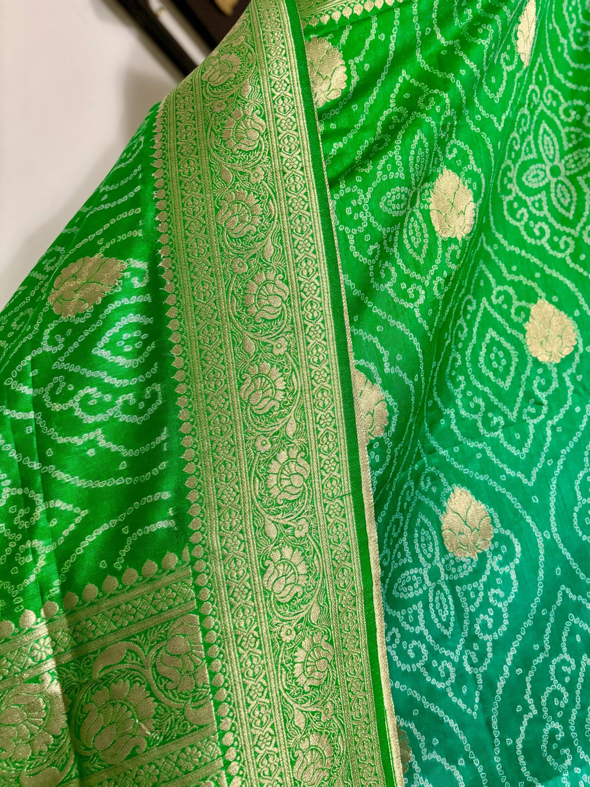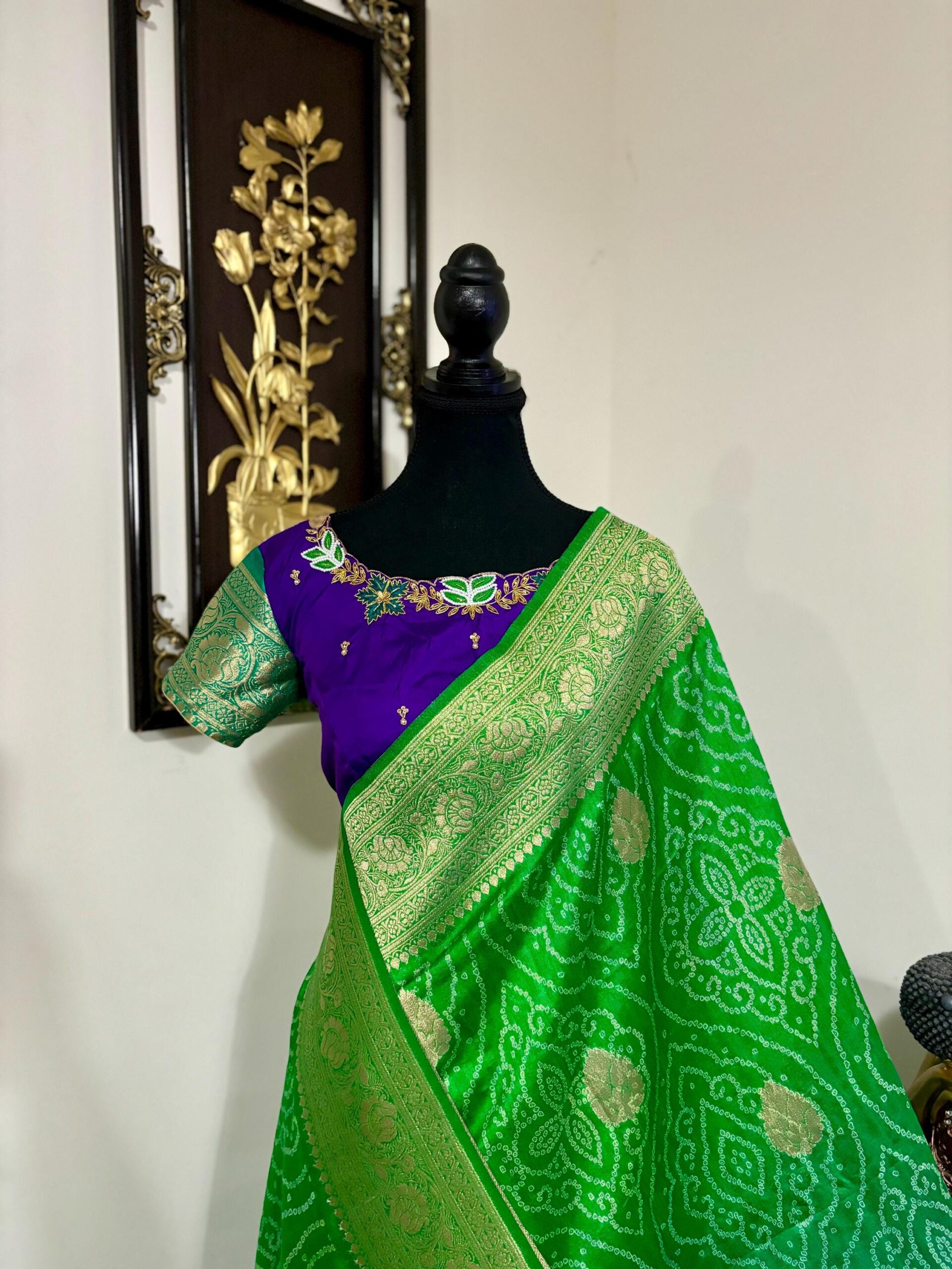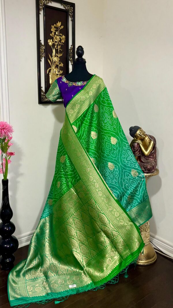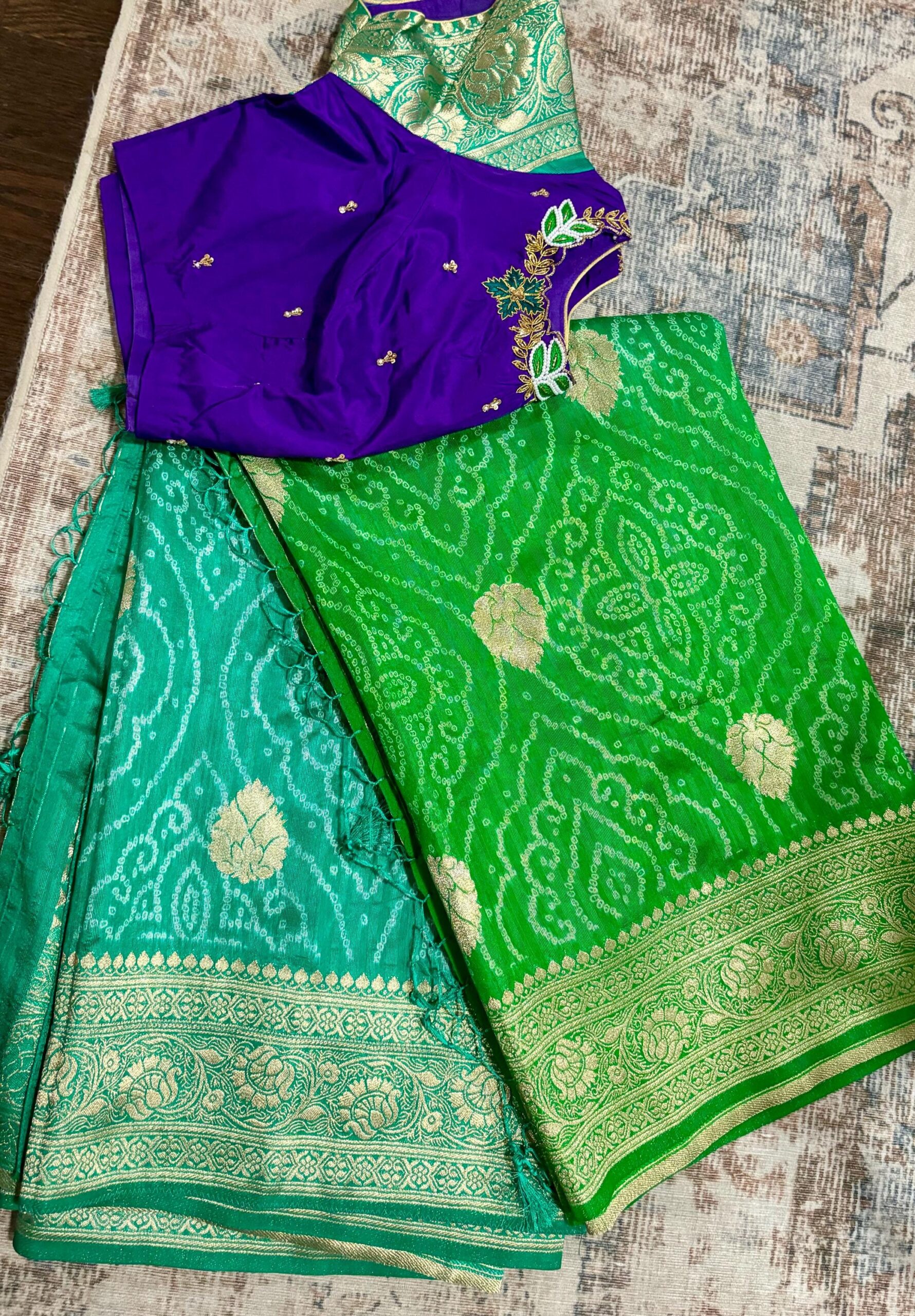 🪷🪷 Beautiful Dual shade banarasi bandhini silk saree paired up with pretty blouse.