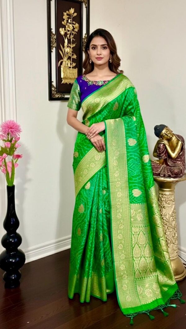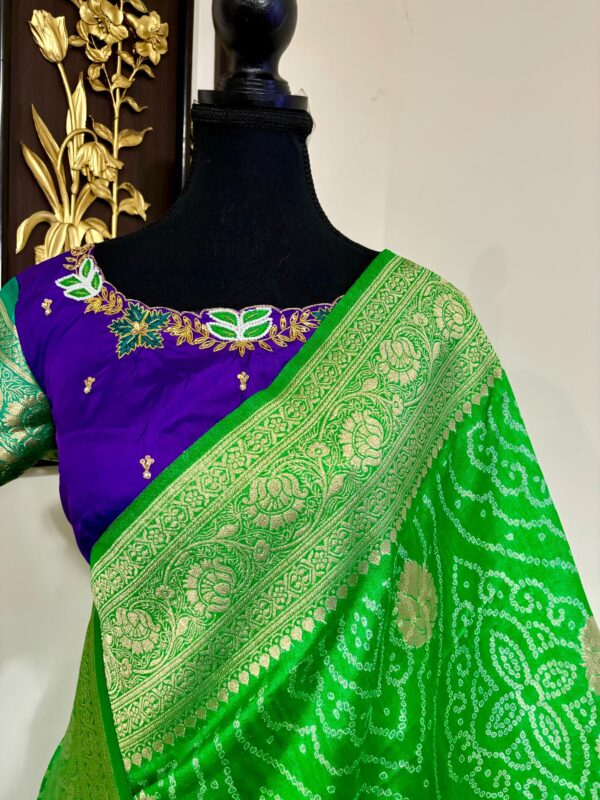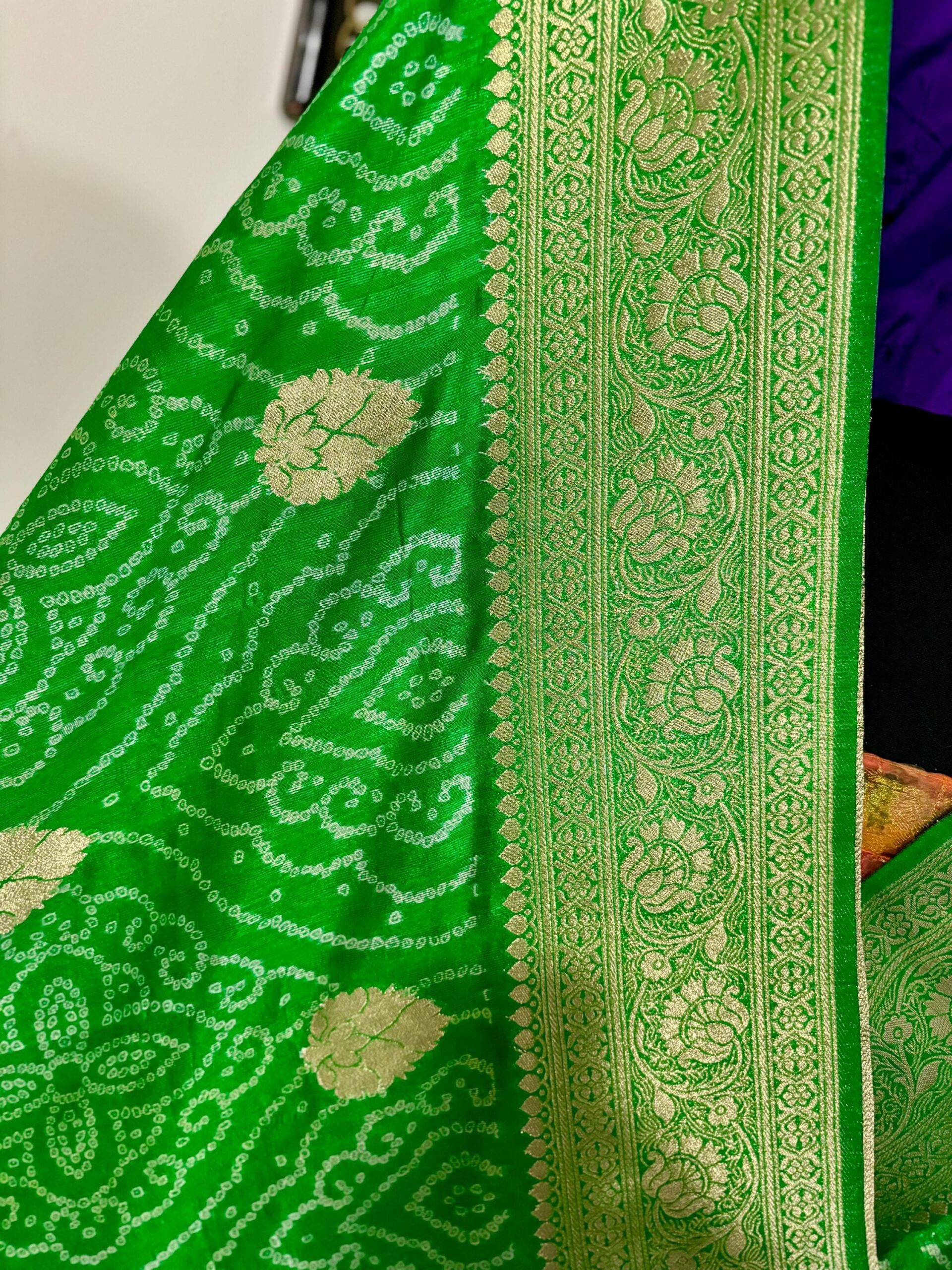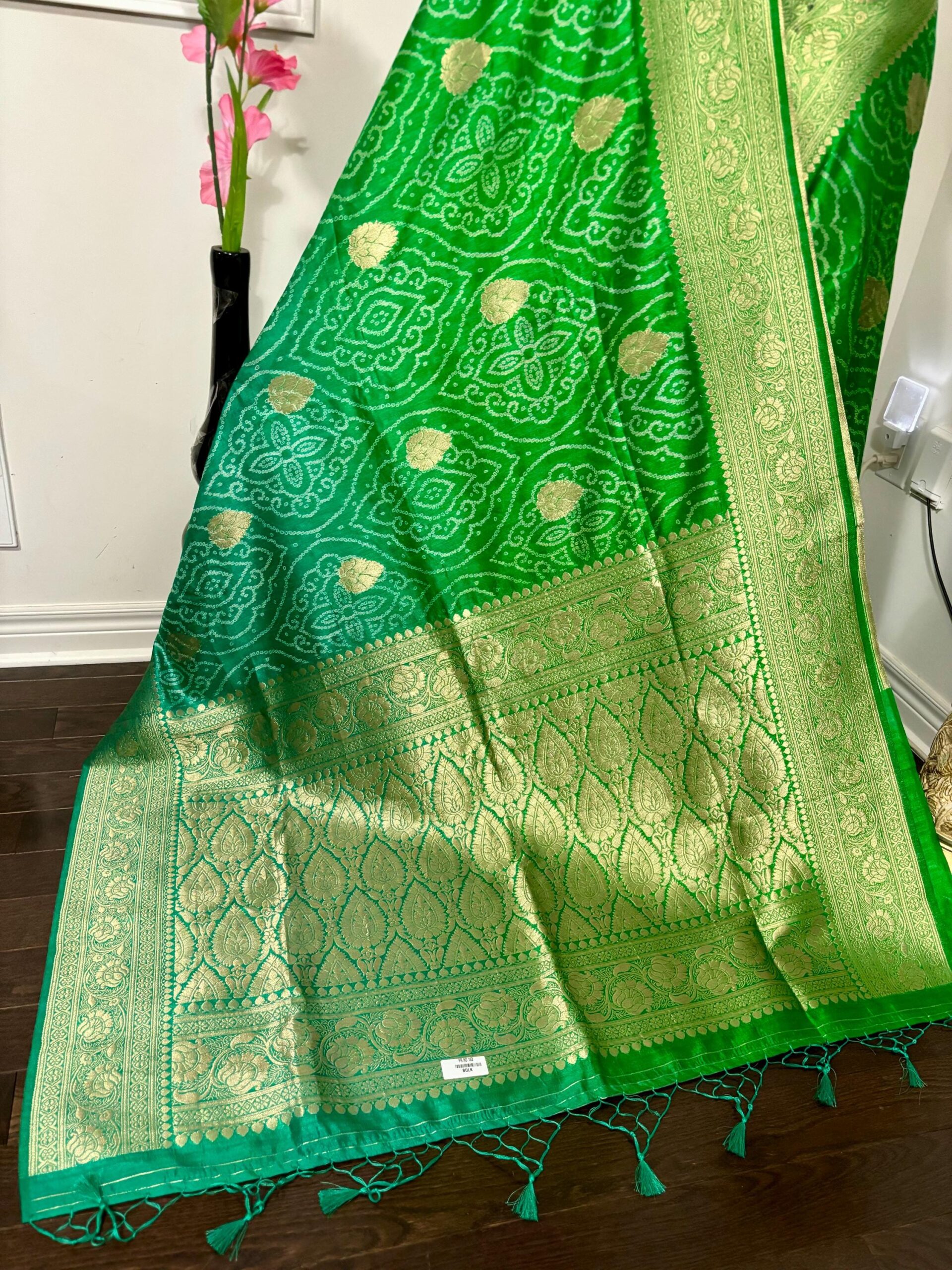 🪷🪷 Beautiful Dual shade banarasi bandhini silk saree paired up with pretty blouse.