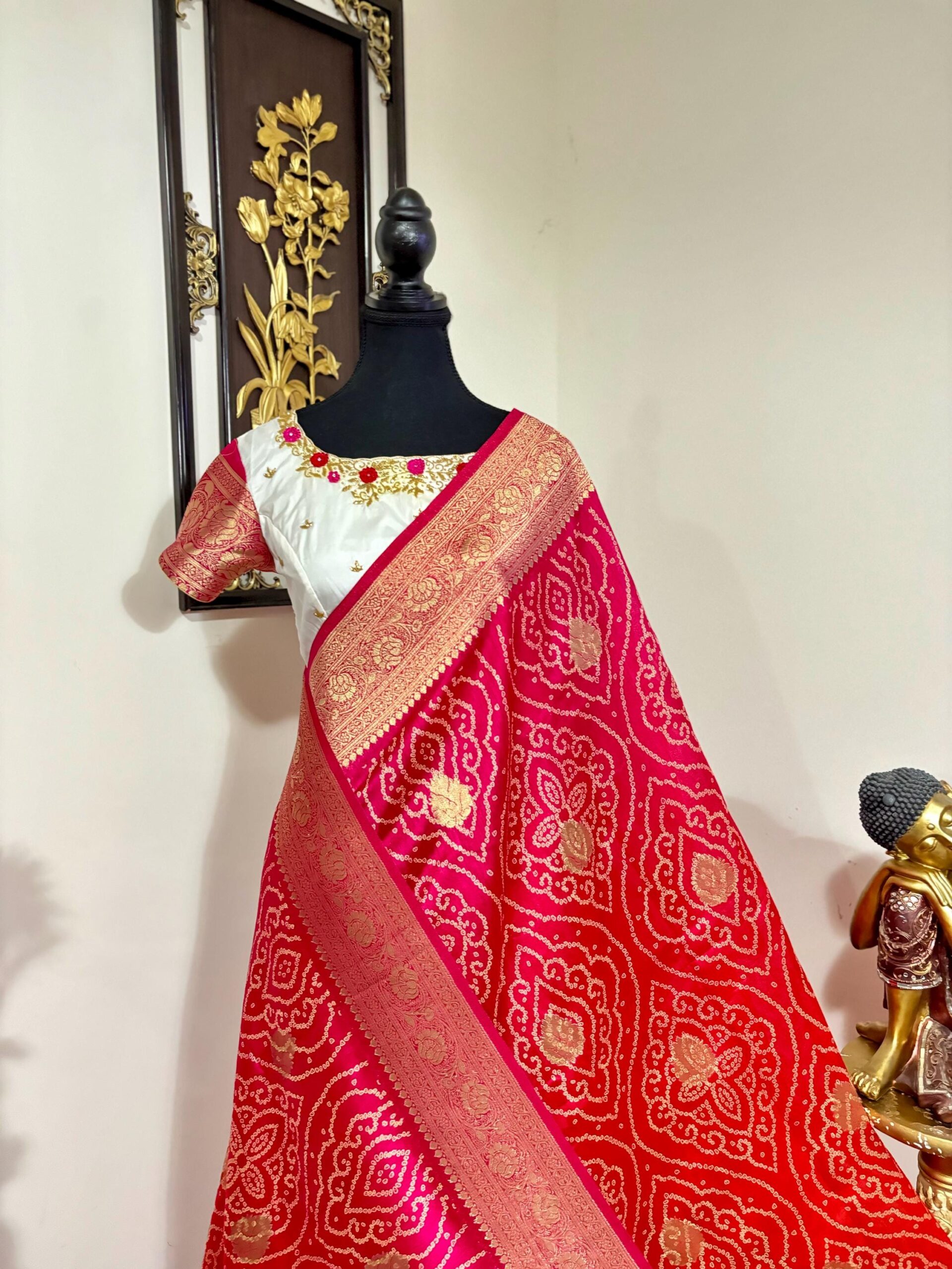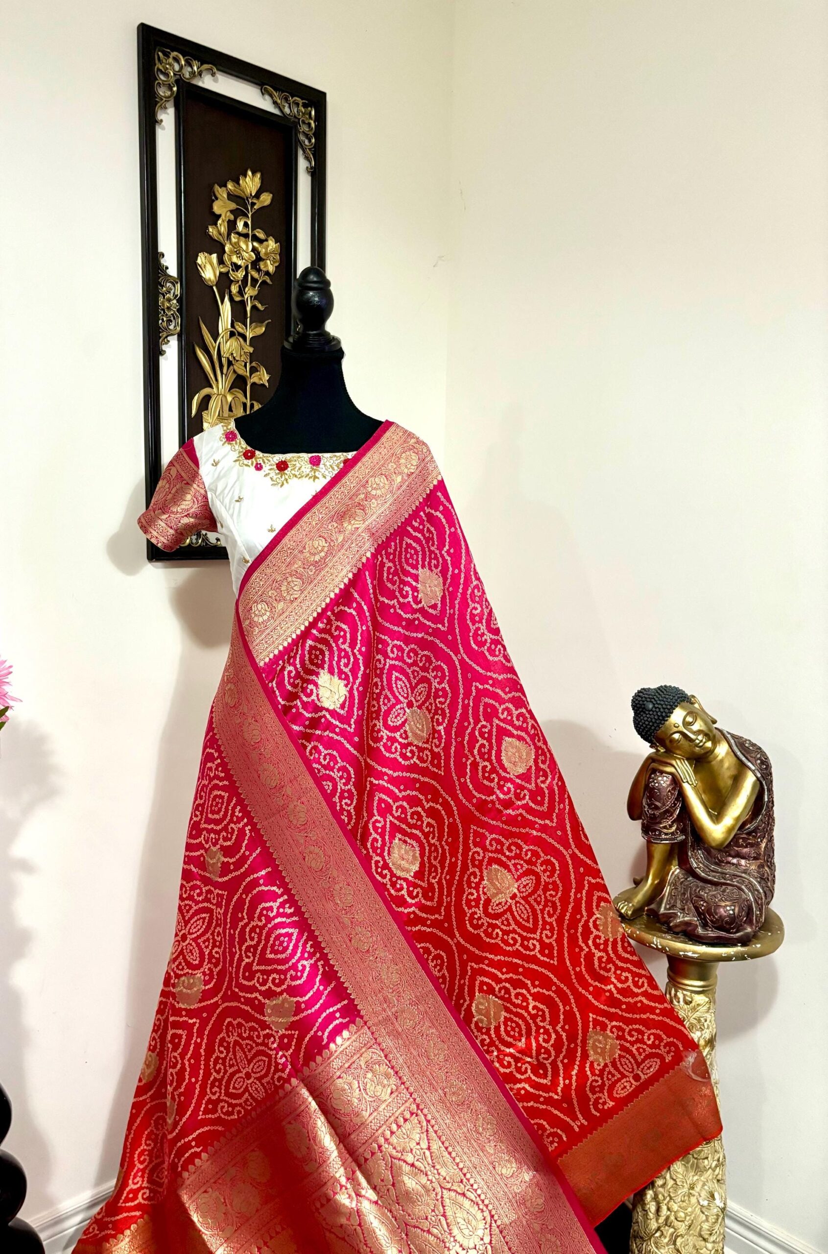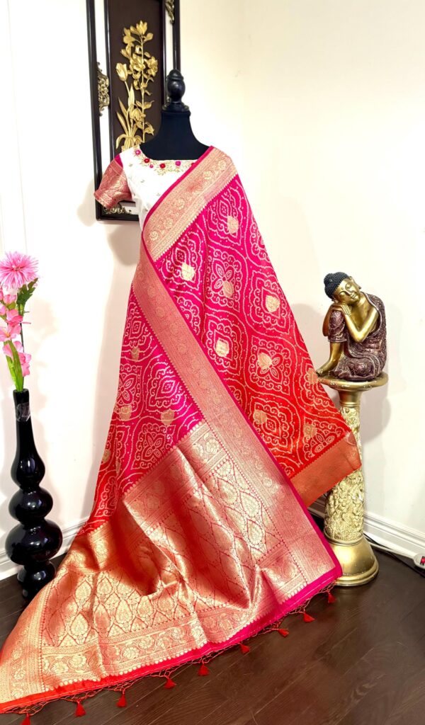 🪷🪷 Beautiful Dual shade banarasi bandhini silk saree paired up with pretty blouse.