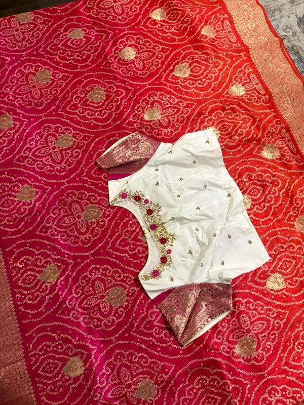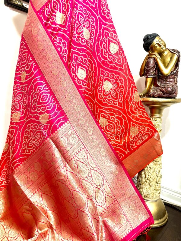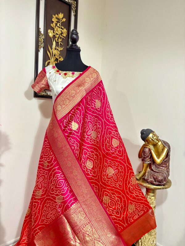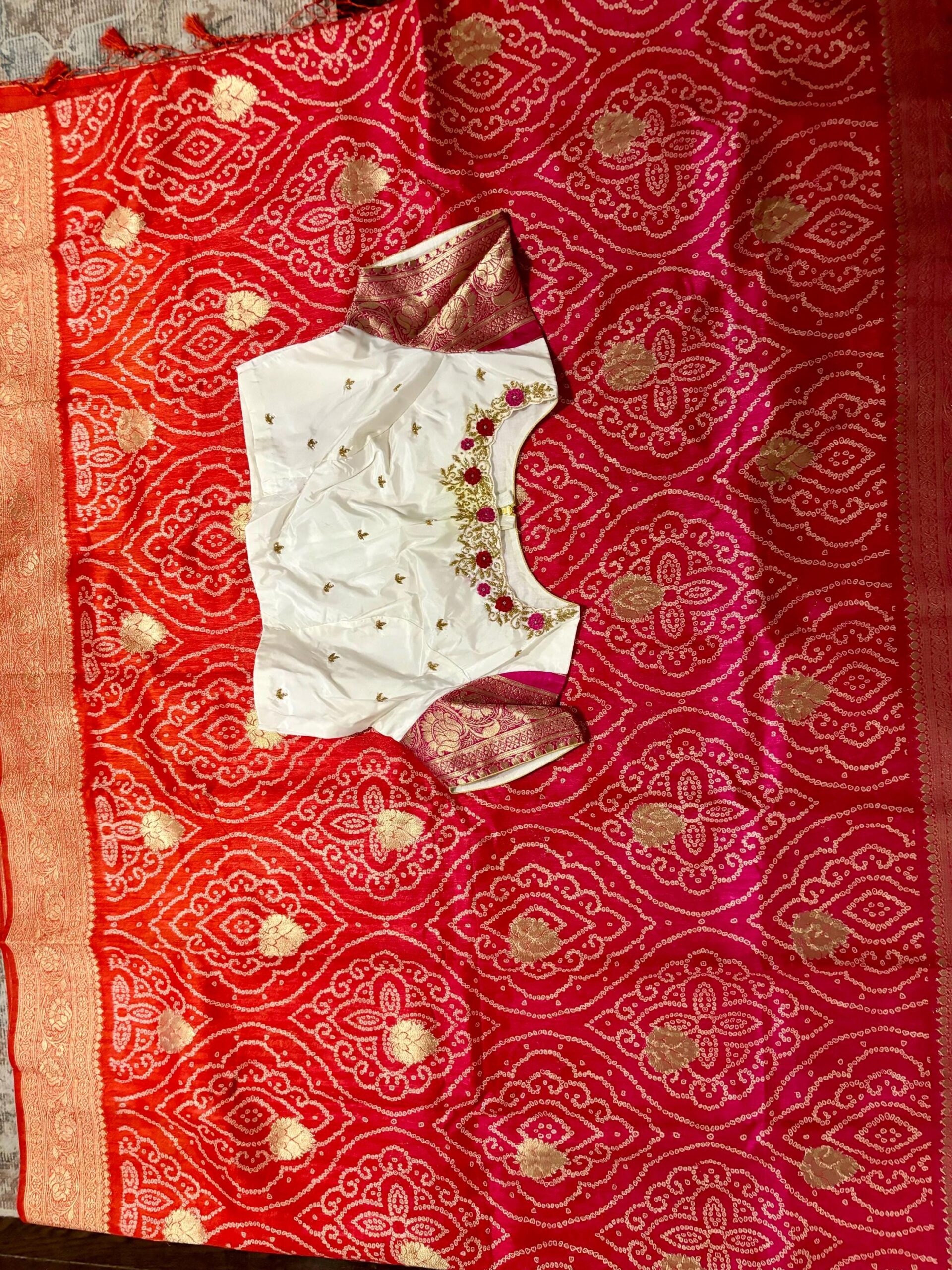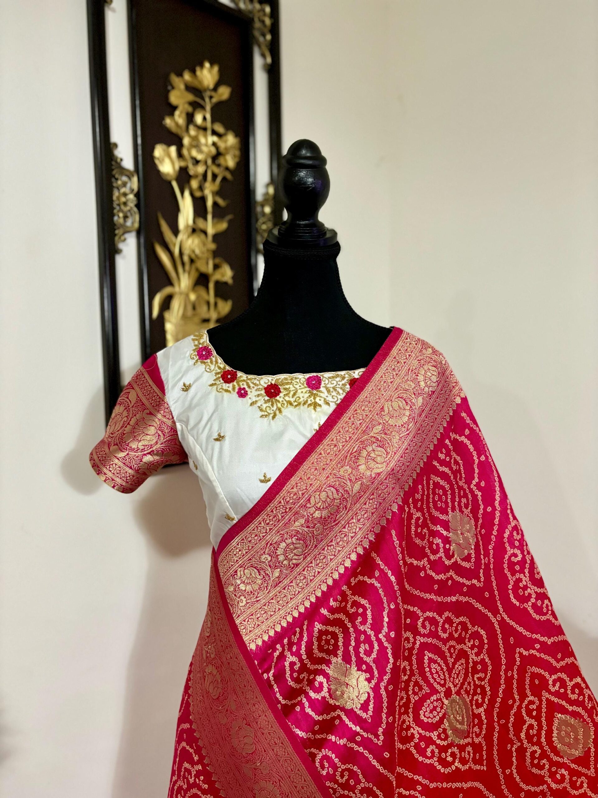 🪷🪷 Beautiful Dual shade banarasi bandhini silk saree paired up with pretty blouse.