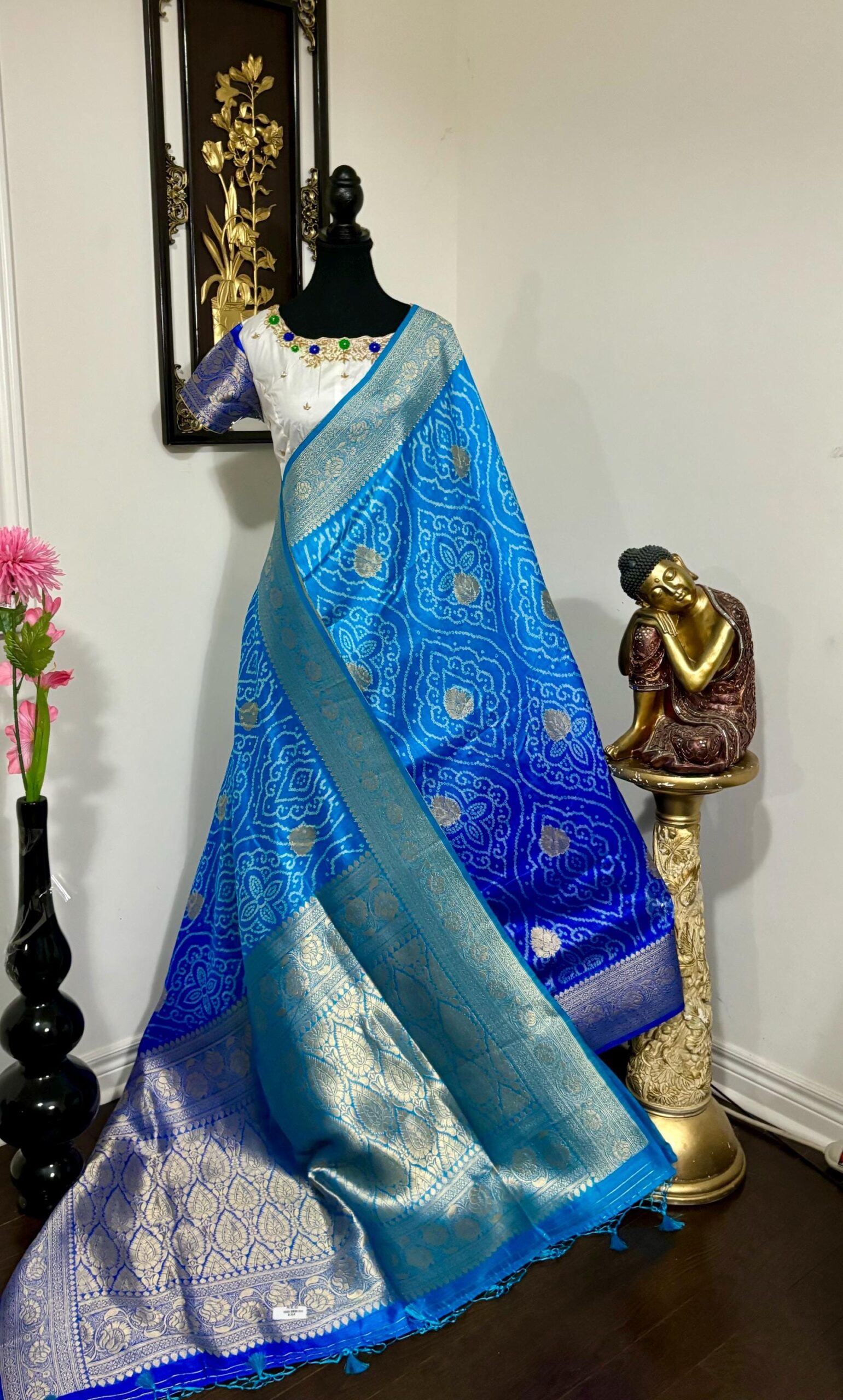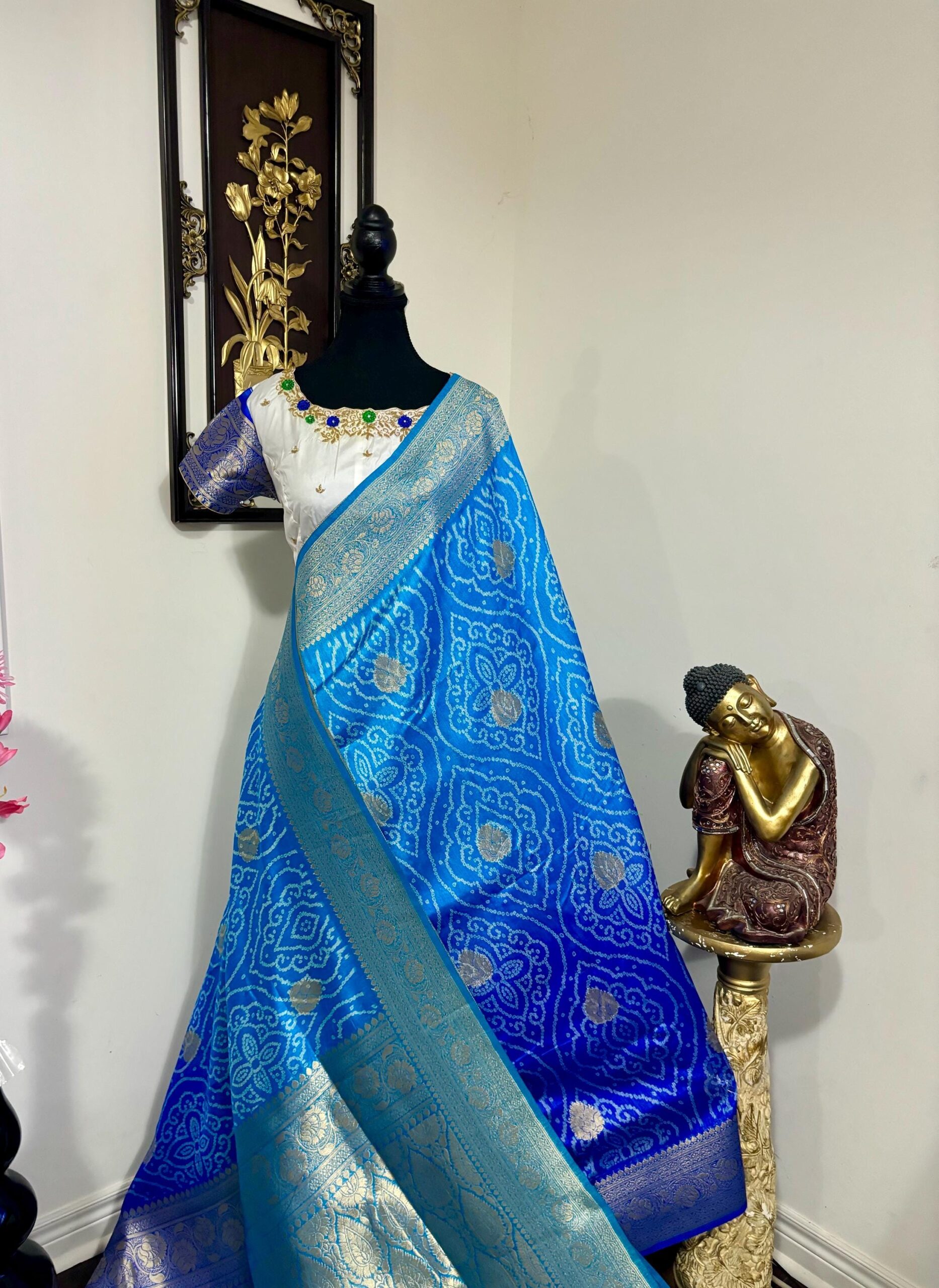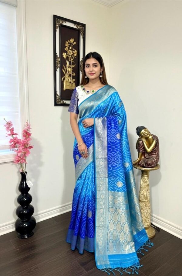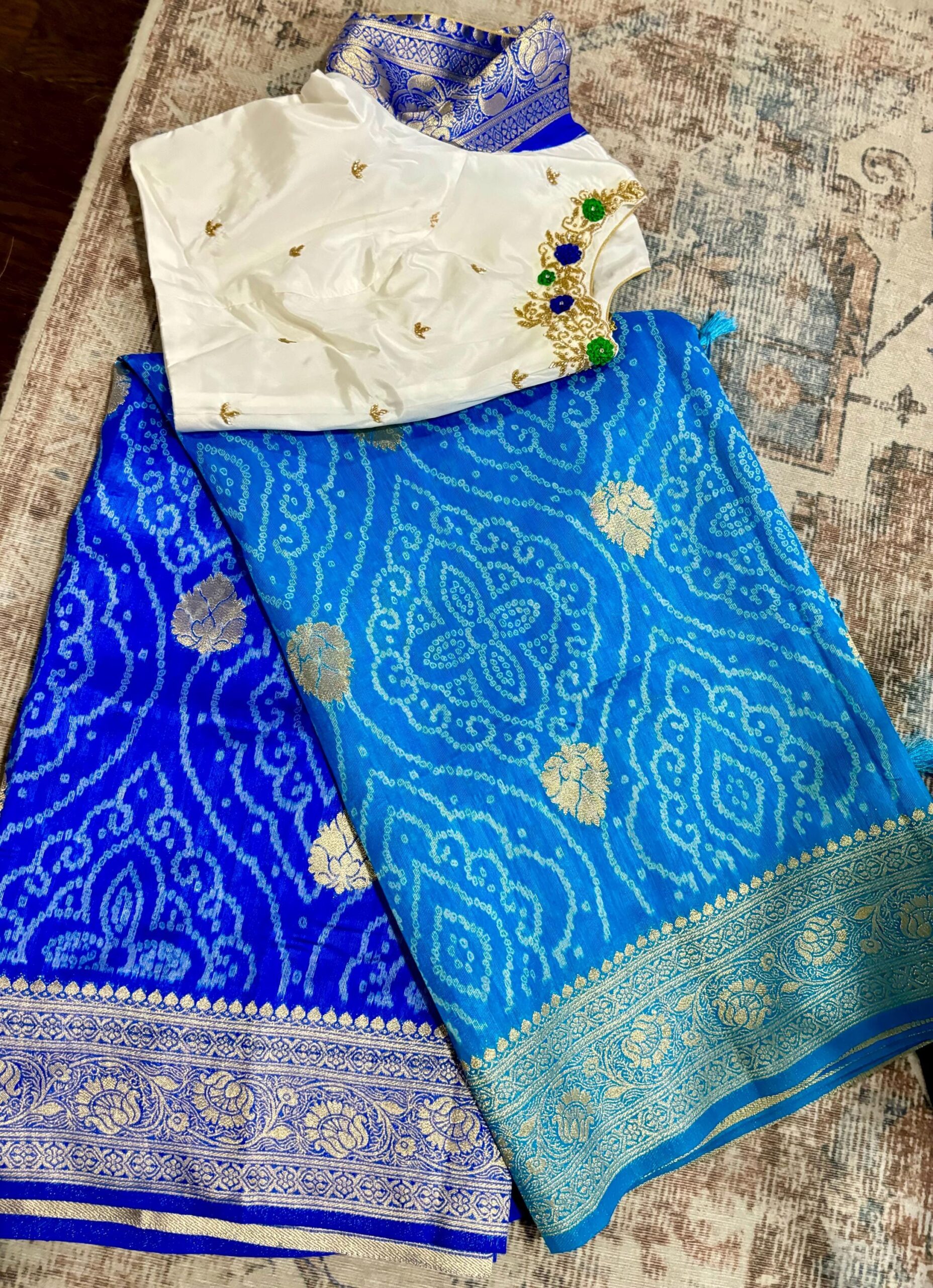 🪷🪷 Beautiful Dual shade bandhini silk saree paired up with pretty blouse.
