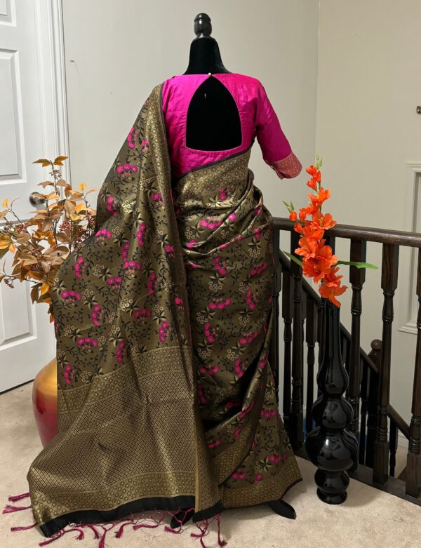 Fabric=pure heavy weaving saree with floral all over fabric flowers pallu and border both side with rich pallu