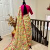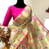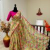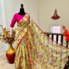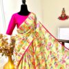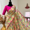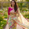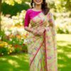 all over saree is florals and is designed with gold lace