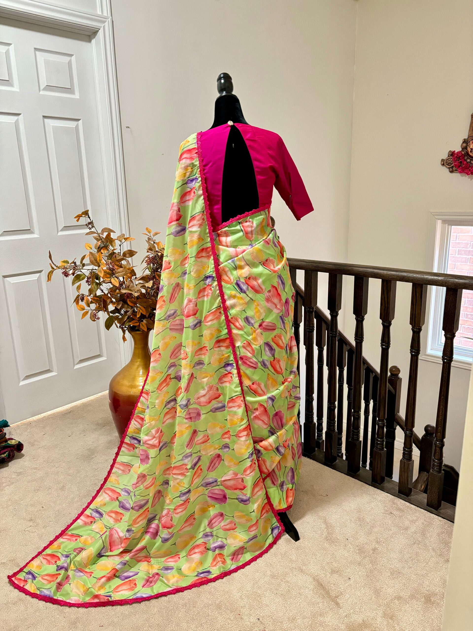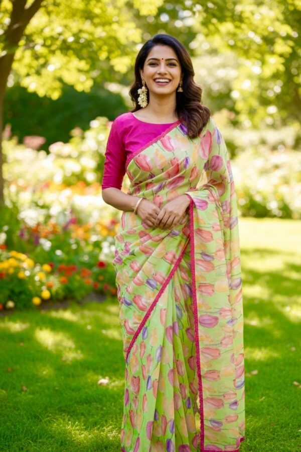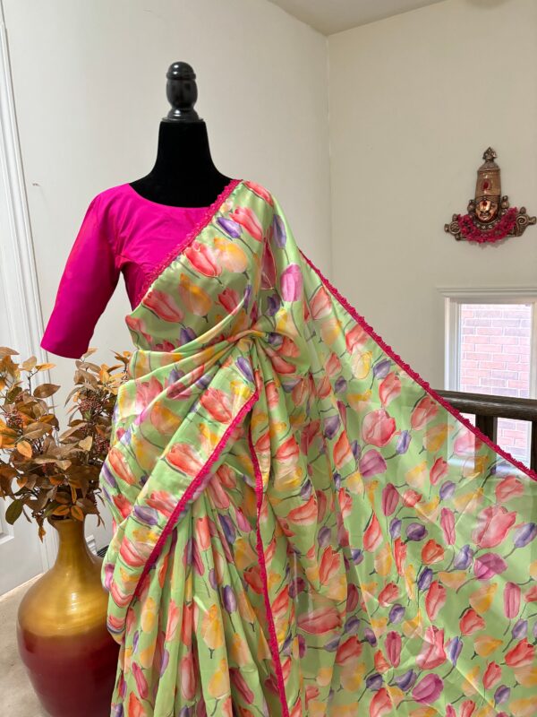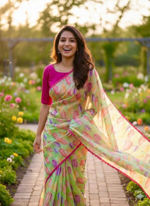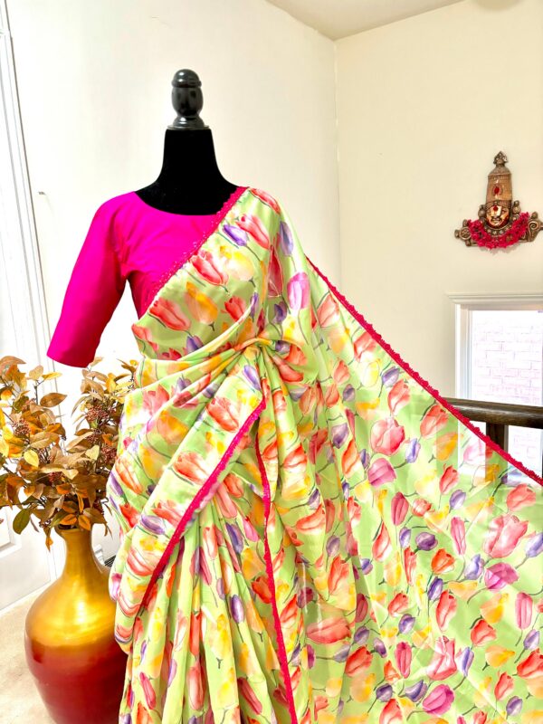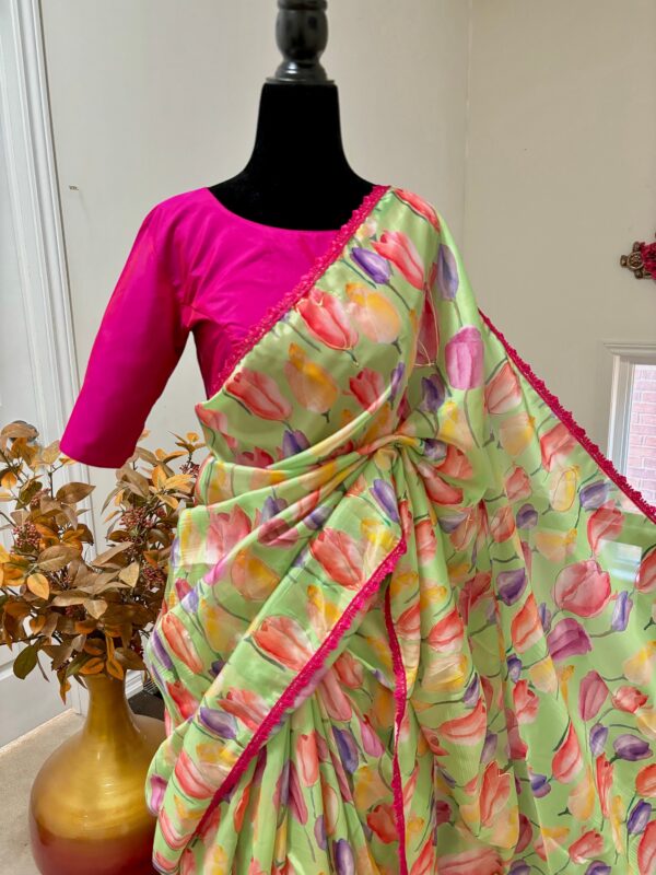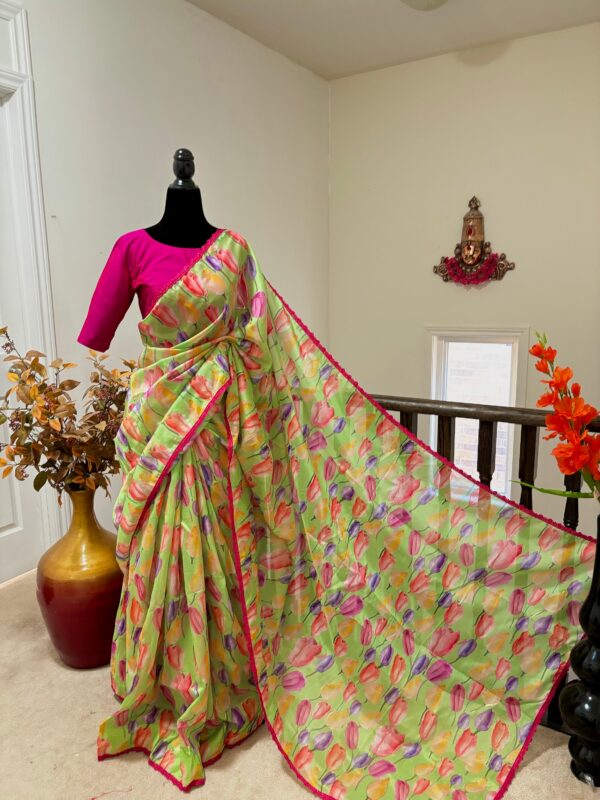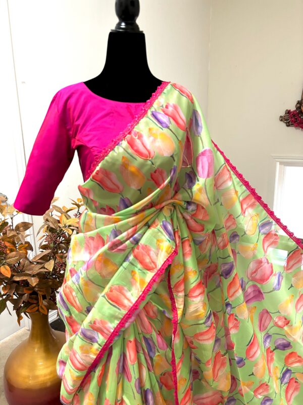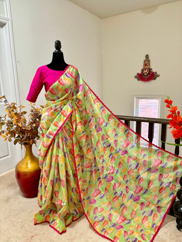 💥💥💥💥 Beautiful designer organza Beautiful Designer floral soft Organza Saree with beautiful lace ready to wear designer blouse fits to 32 to 46