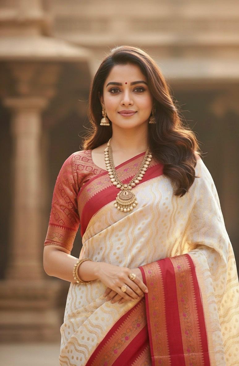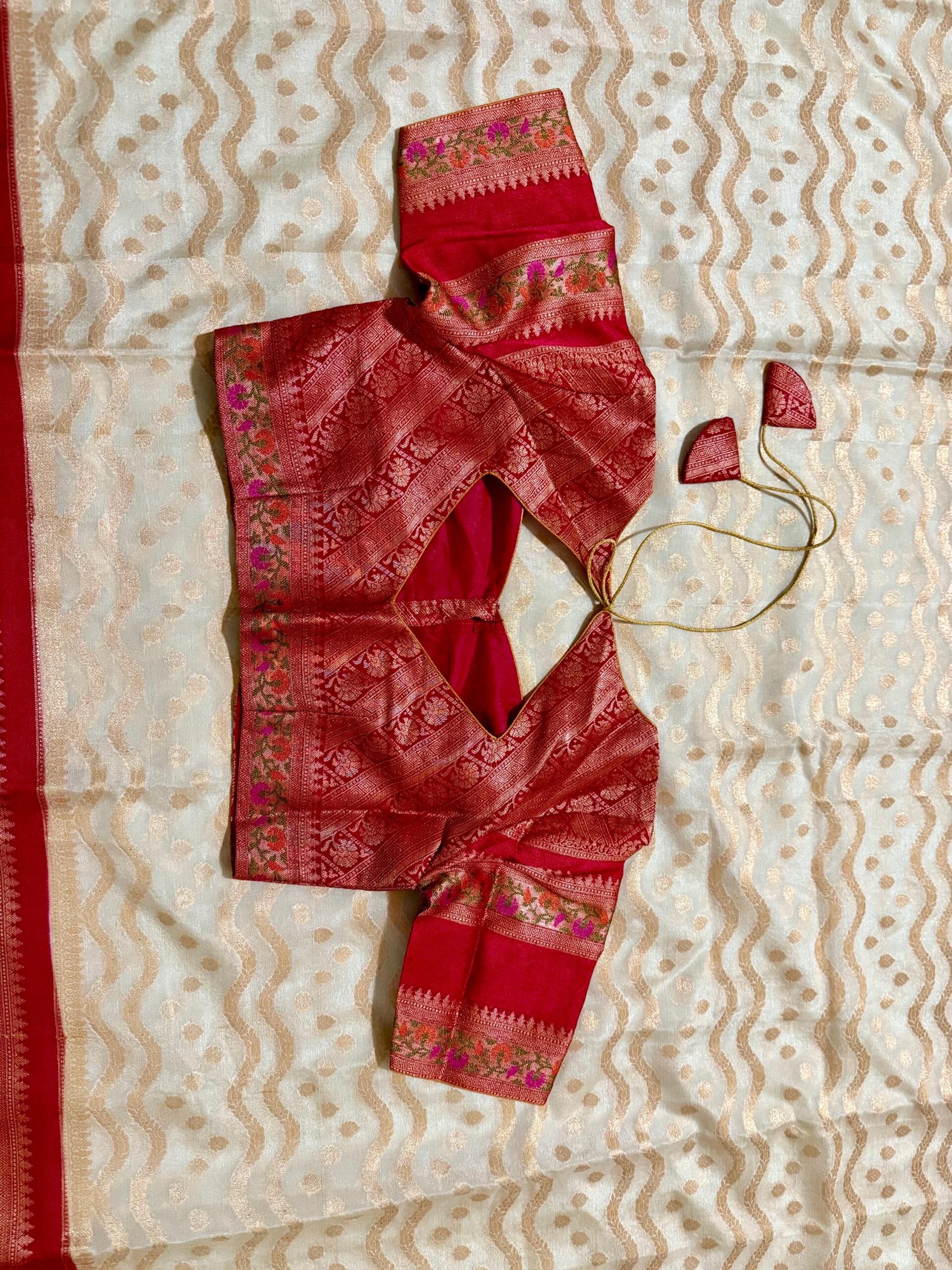 🩸Rich Pallu…. Plain Blouse… With Border to it….