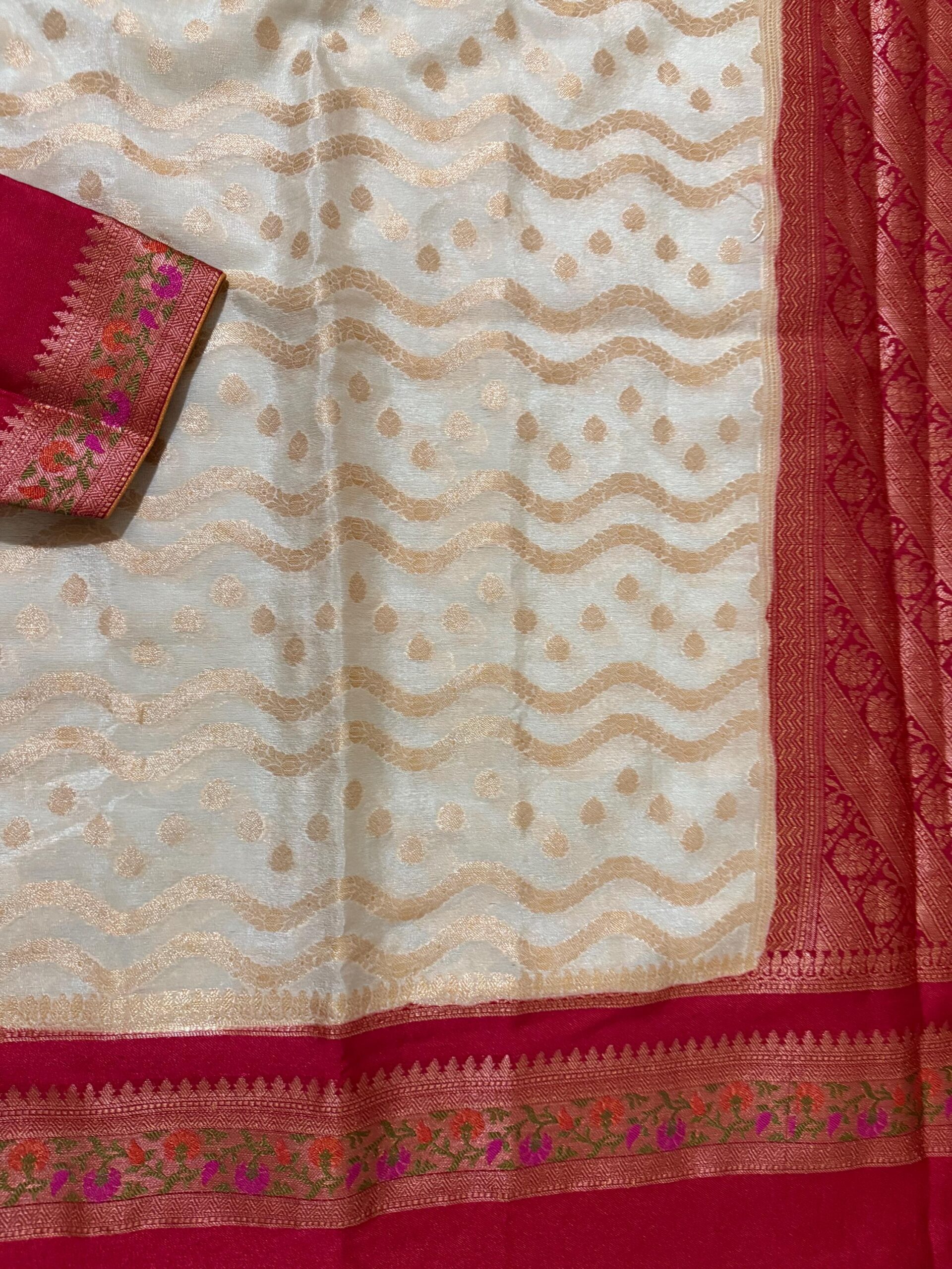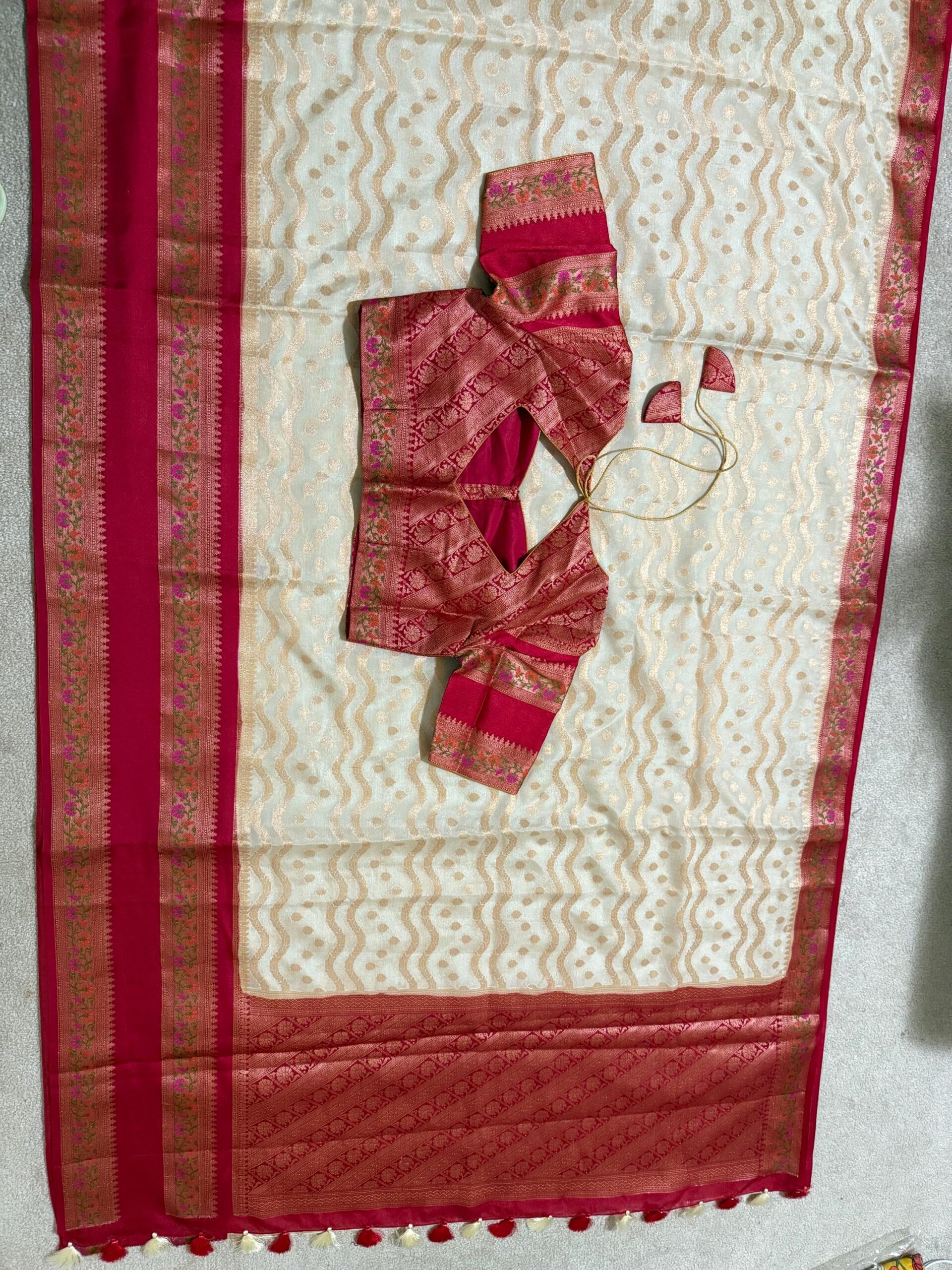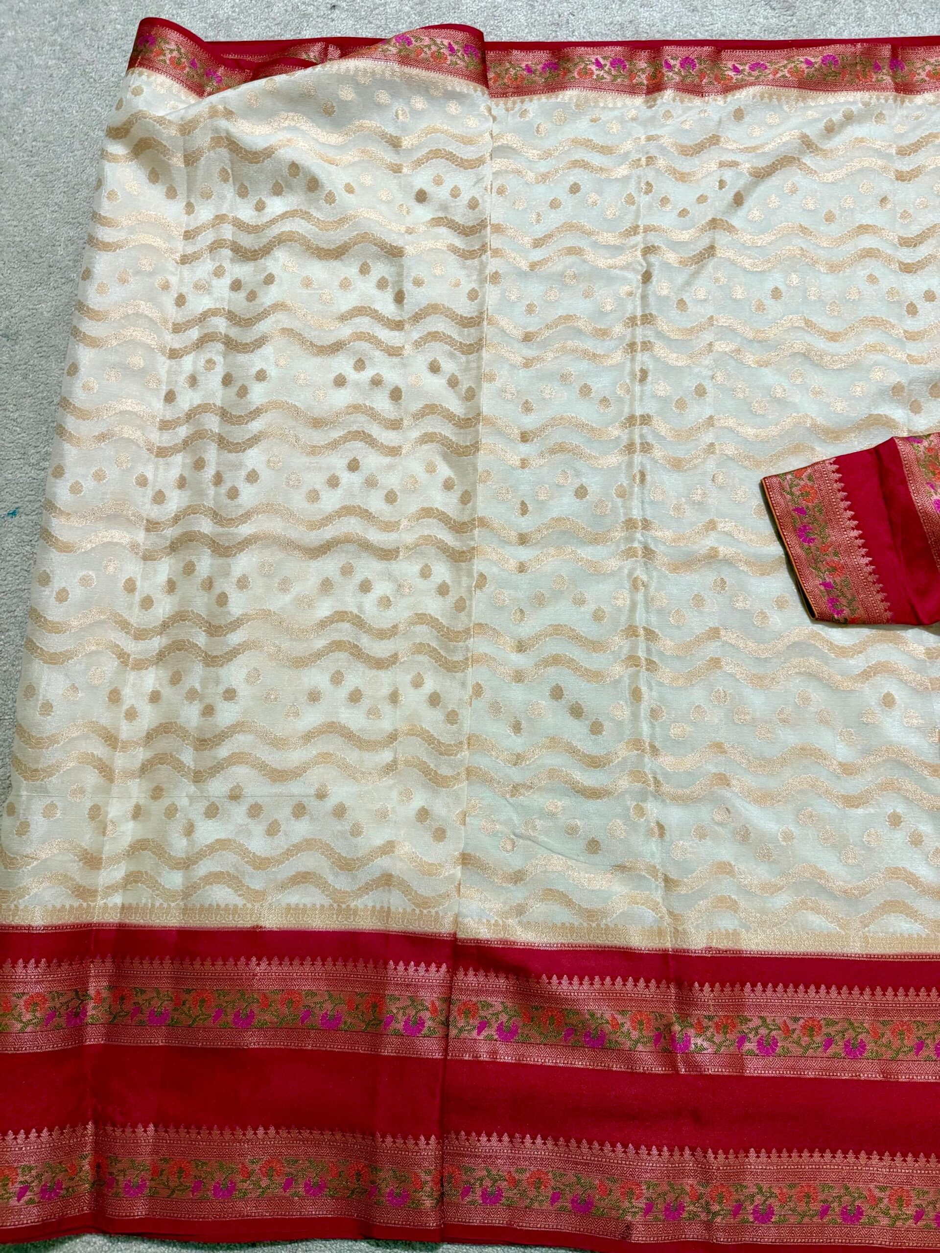 ALL OVER BEAUTIFUL WATER ZARI WEAVING WORK WITH BEAUTIFUL HAND BRUSH DYE WORK