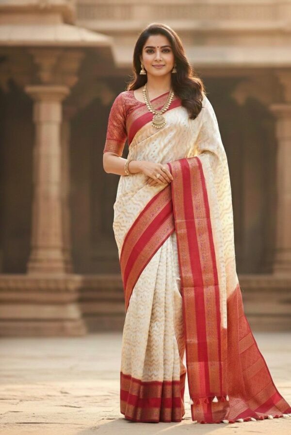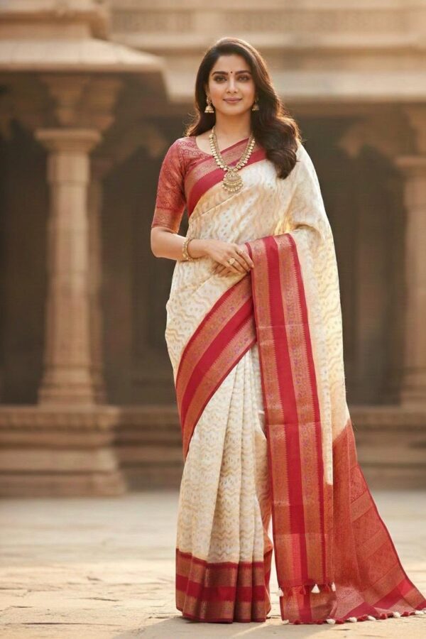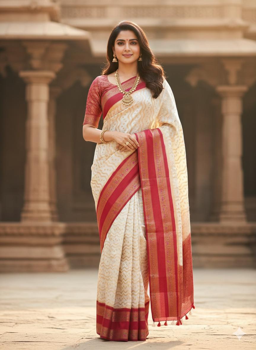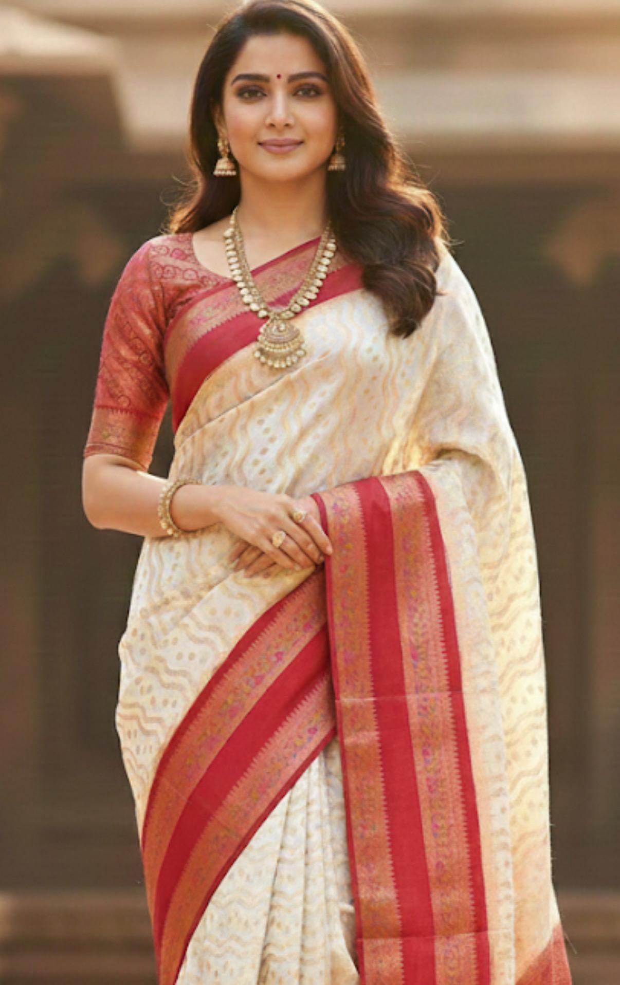 ALL OVER BEAUTIFUL WATER ZARI WEAVING WORK WITH BEAUTIFUL HAND BRUSH DYE WORK