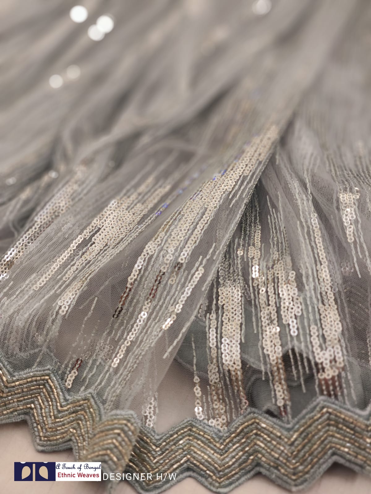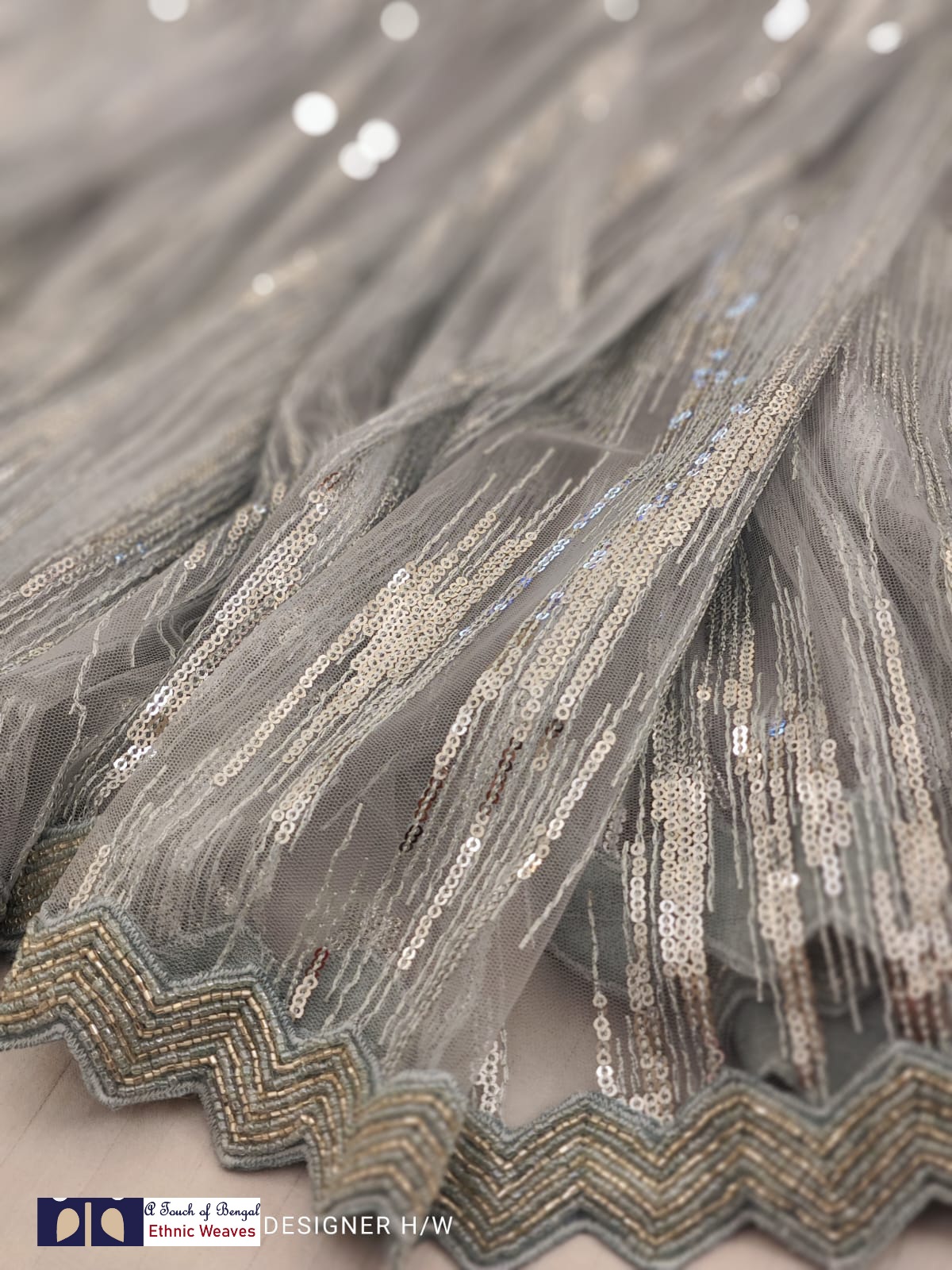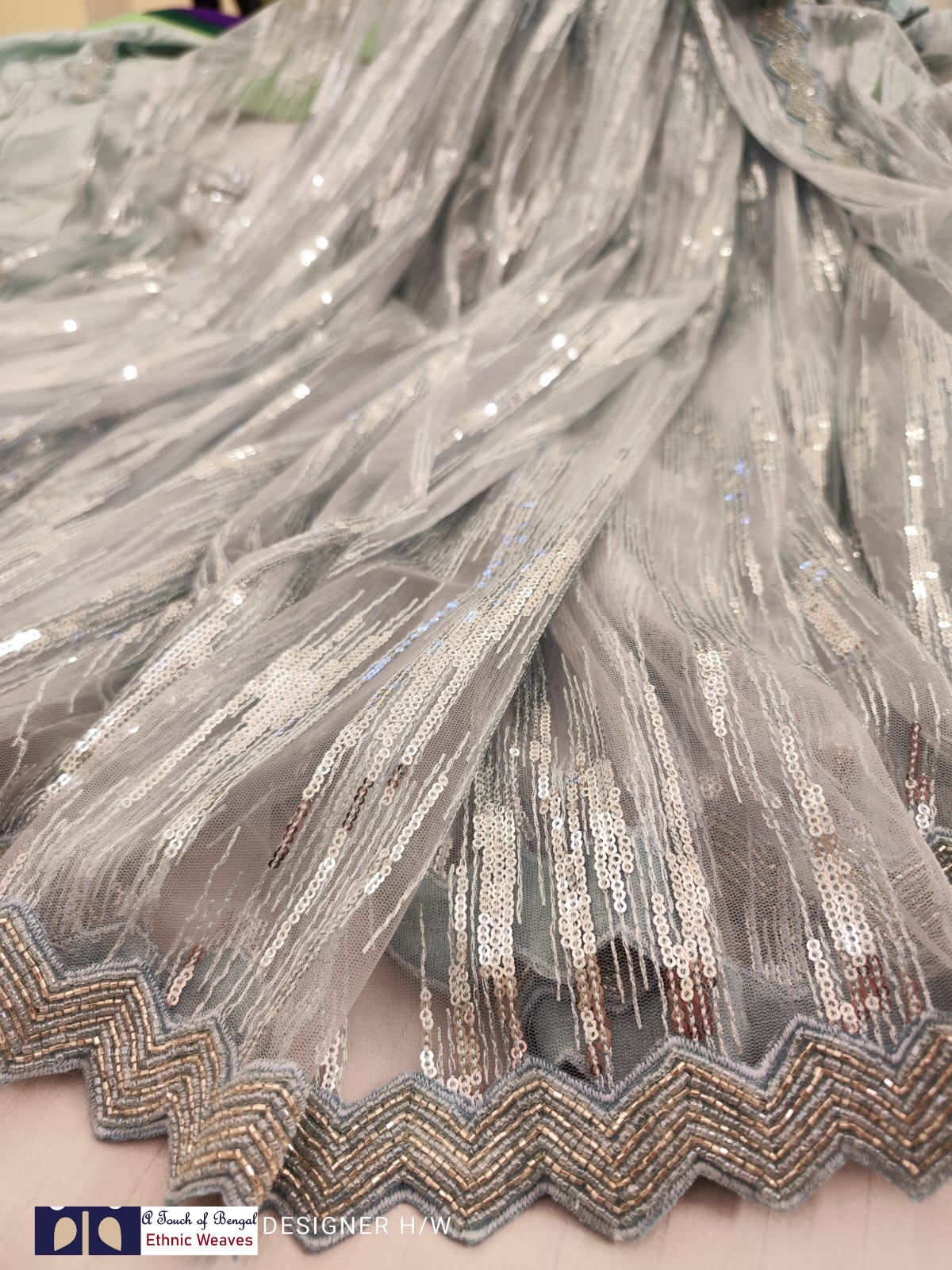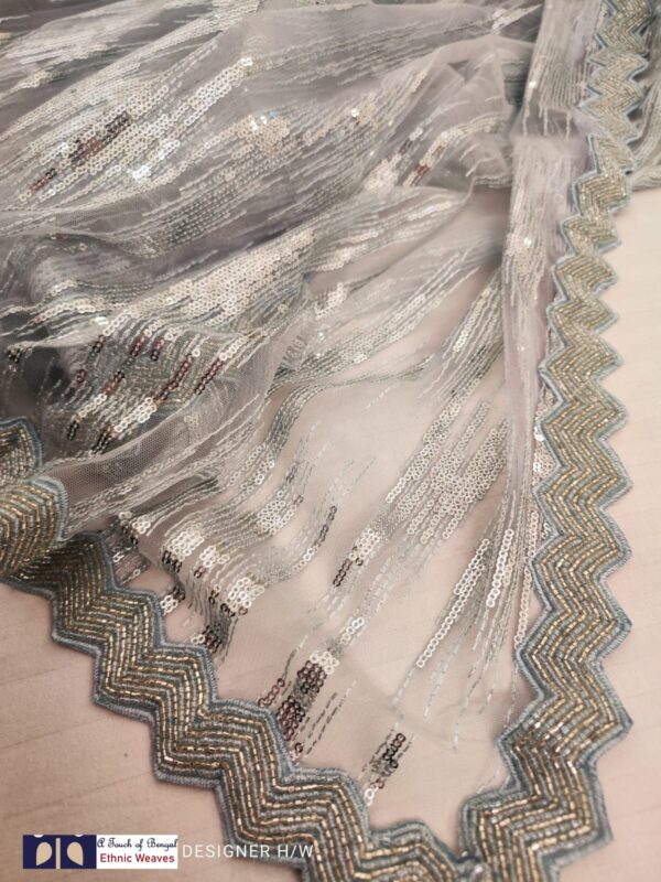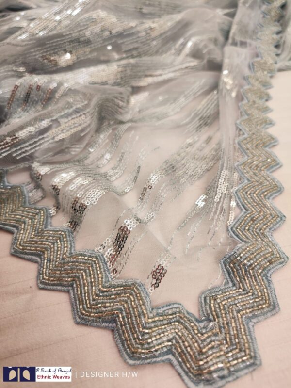 A beautiful sequence saree with cutwork cutdana handwork border.