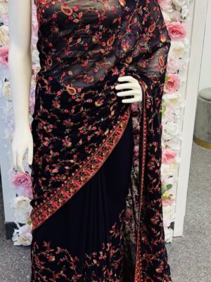 Navy Blue Kashmiri Embroidered Saree