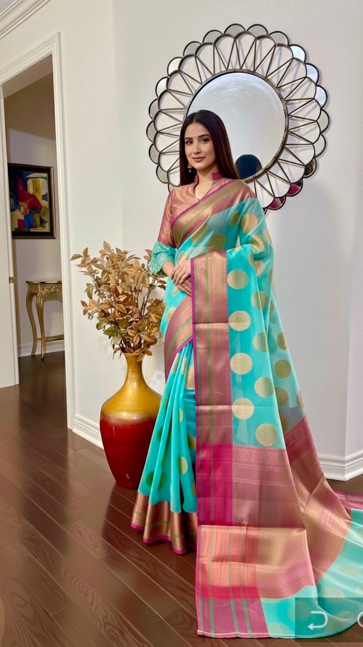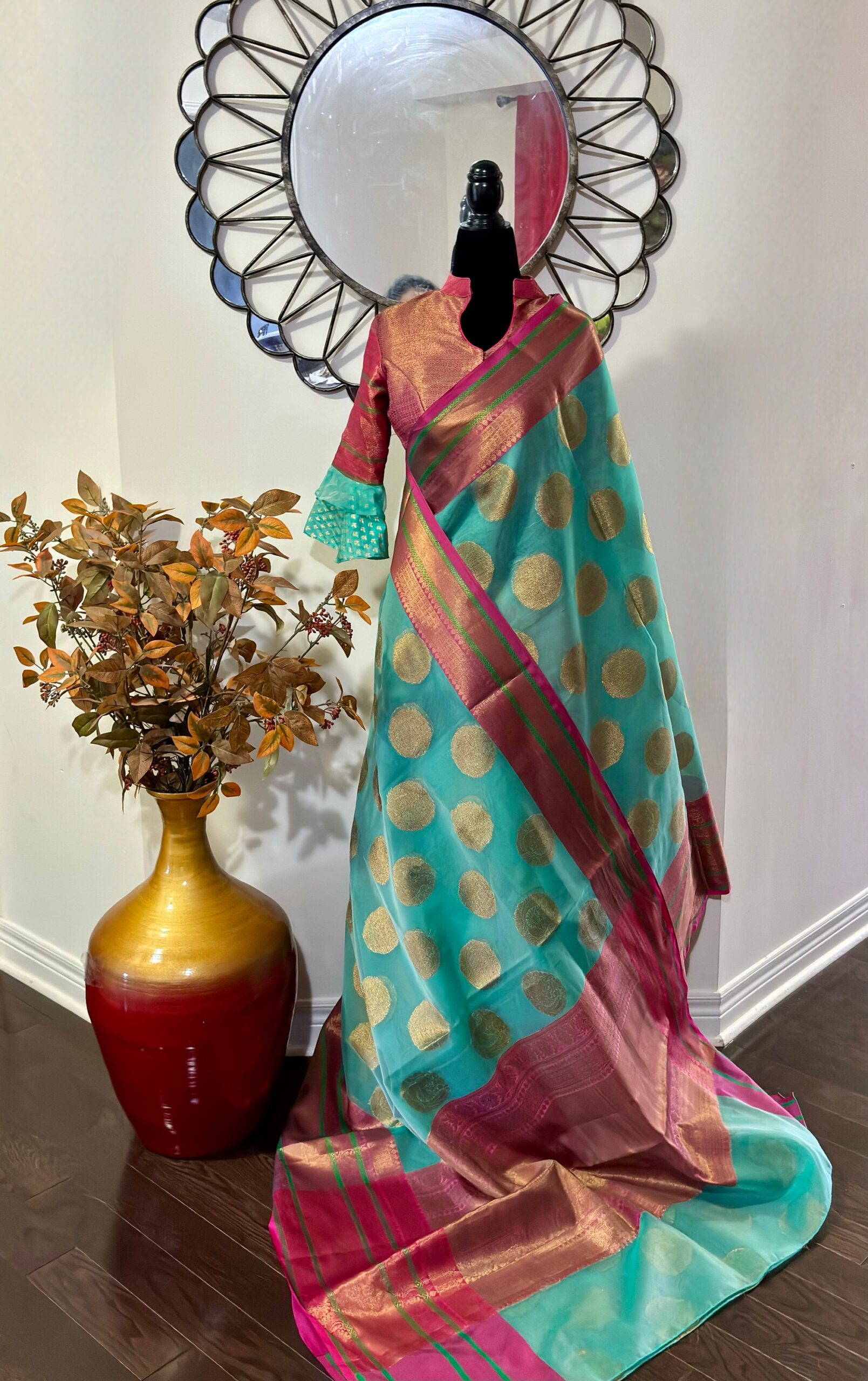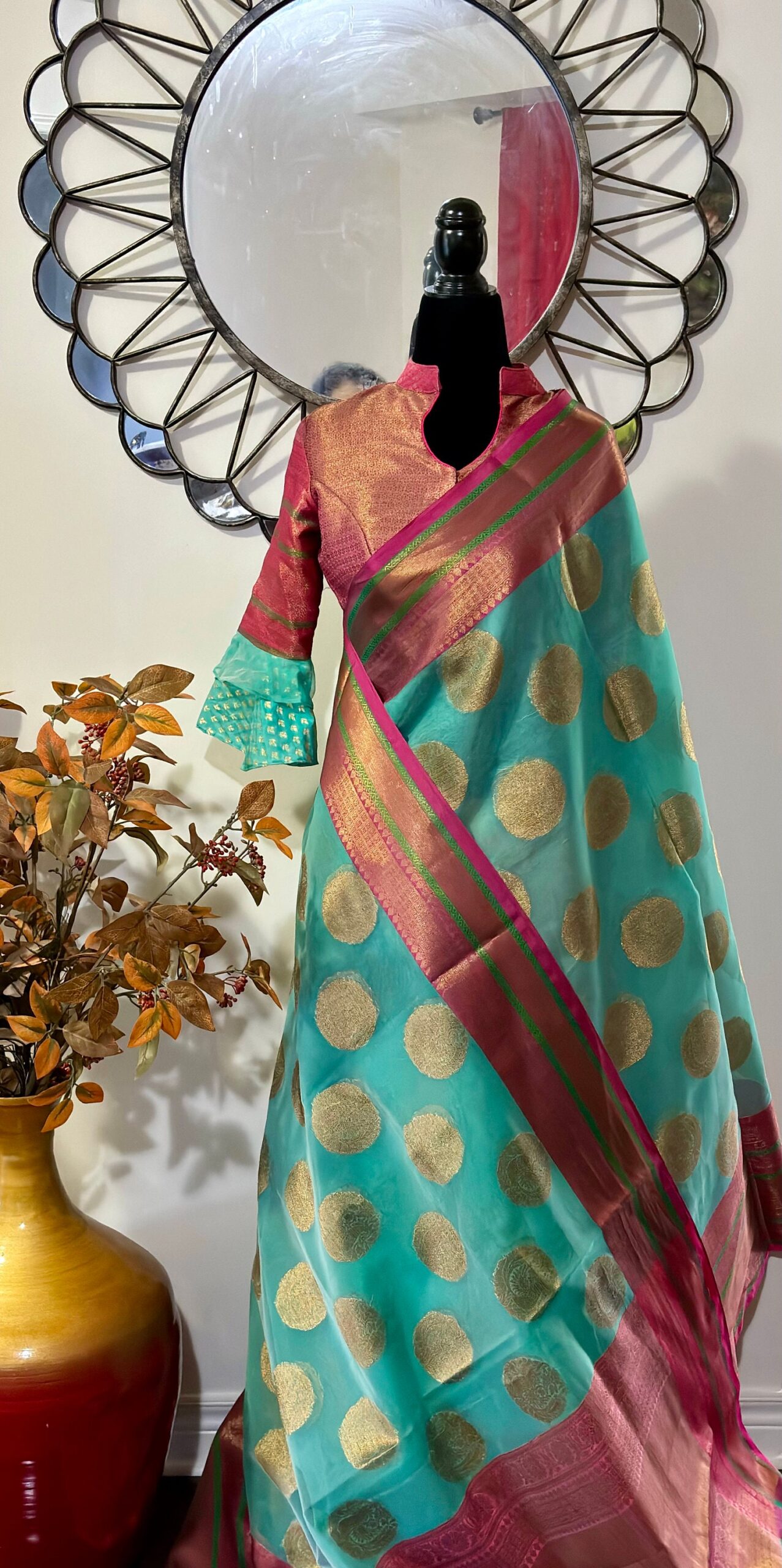 paired up with ready to wear pretty designer blouse fits to 32 to 44 size