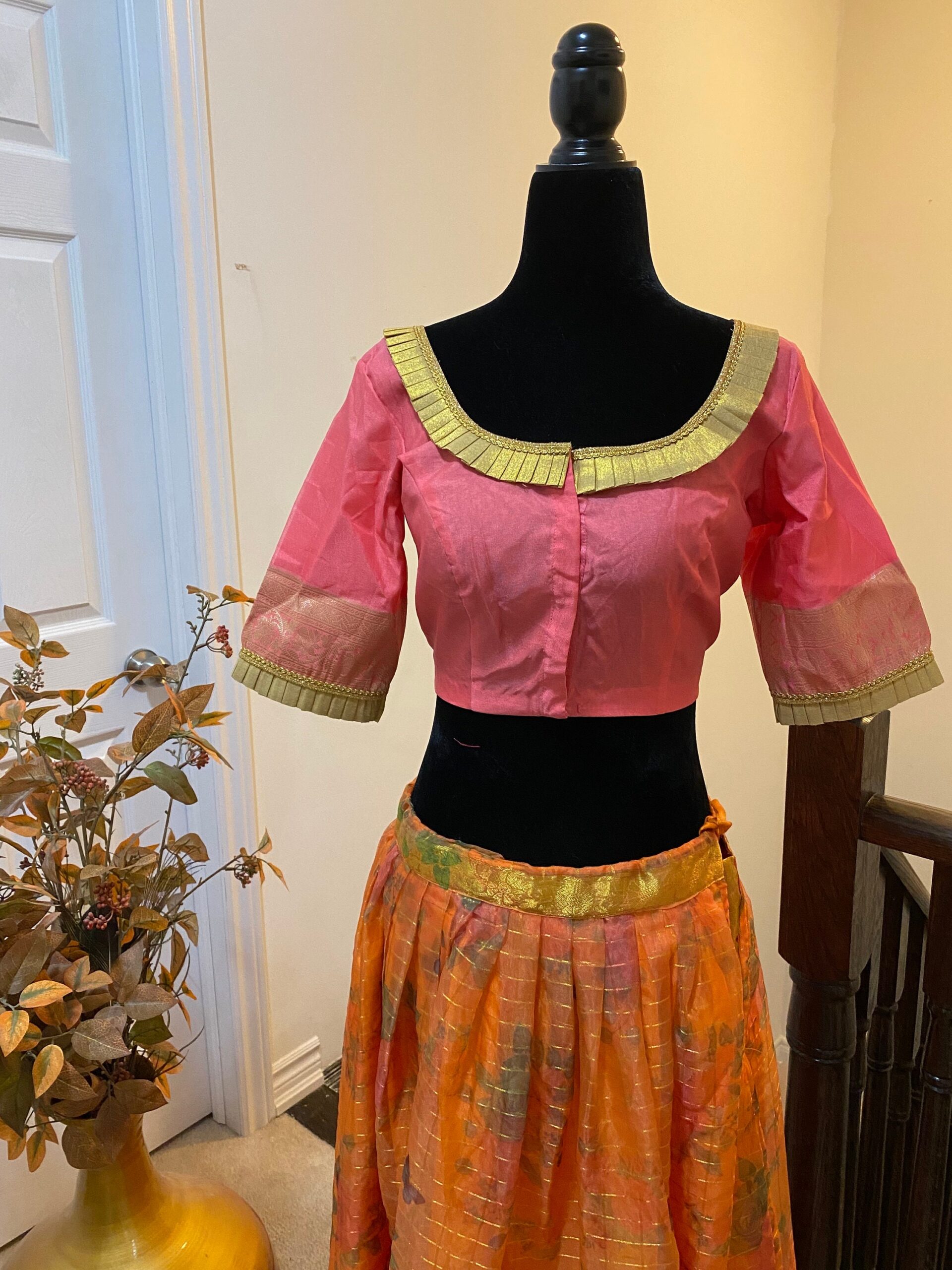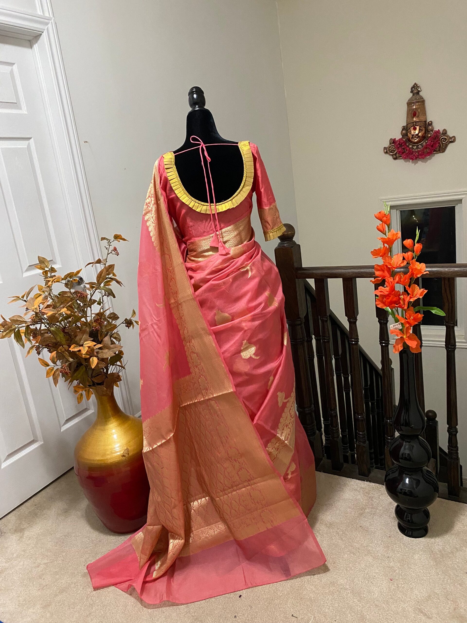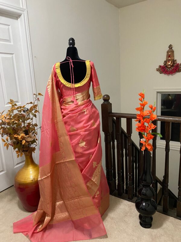 paired up with ready to wear pretty designer blouse fits to 32 to 46 size
