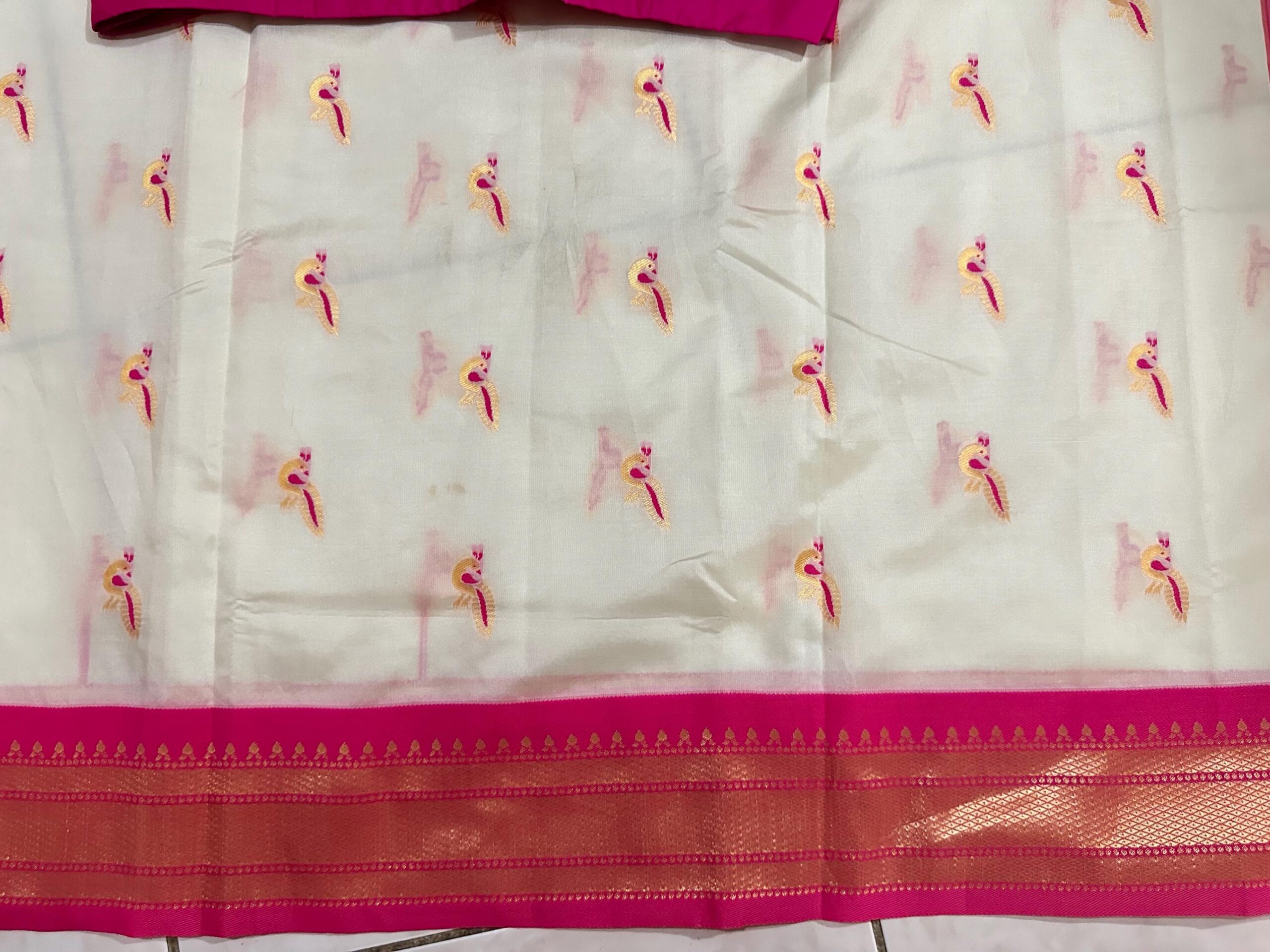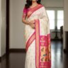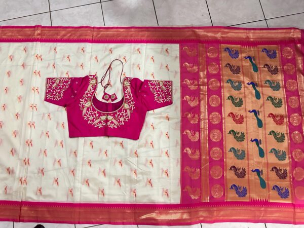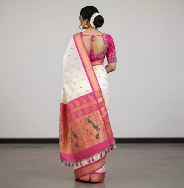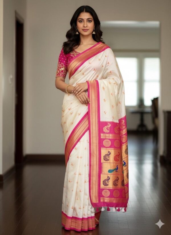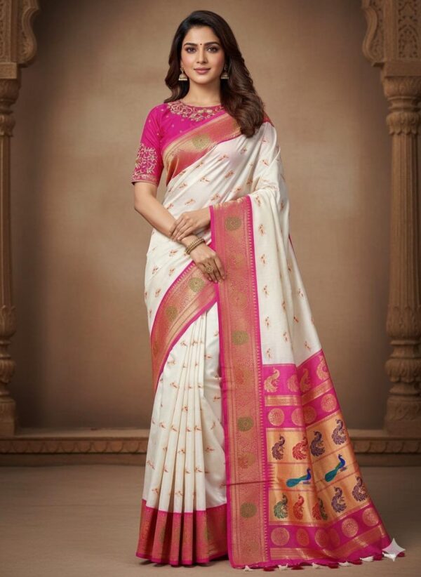 Beautiful soft paithani silk saree with all over zari weaving along with contrast border