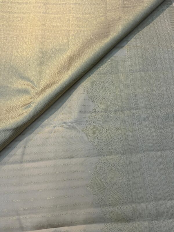 Ideal for weddings, festivals, and formal events, this silk fabric transcends trends with its timeless charm and heritage value. It is a perfect blend of tradition and subtlety, making it a cherished addition to any wardrobe or a treasured heirloom to pass down through generations.