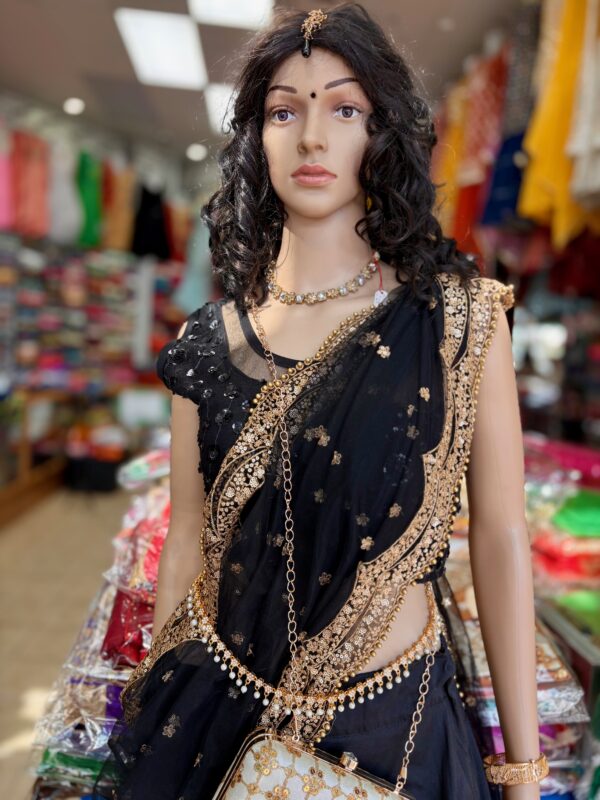 Black Chiffon Saree Gold border
