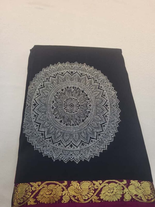 The black saree is a masterpiece of timeless beauty, draping effortlessly around the body with its sleek fabric that catches the light and shimmers subtly. The simplicity of the color allows intricate details like embroidery, sequins, or zari work to take center stage, adding drama and flair. Whether you’re attending a wedding, a formal gala, or a cultural celebration, this saree is sure to make you feel confident, elegant, and unforgettable. Its flowing silhouette creates a stunning visual effect, making it a versatile and chic choice for any occasion.