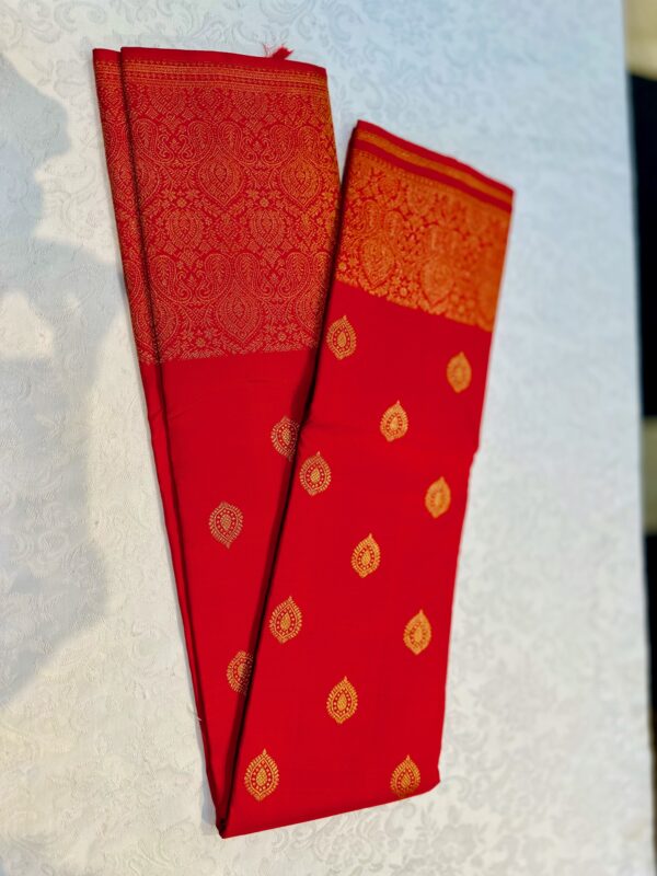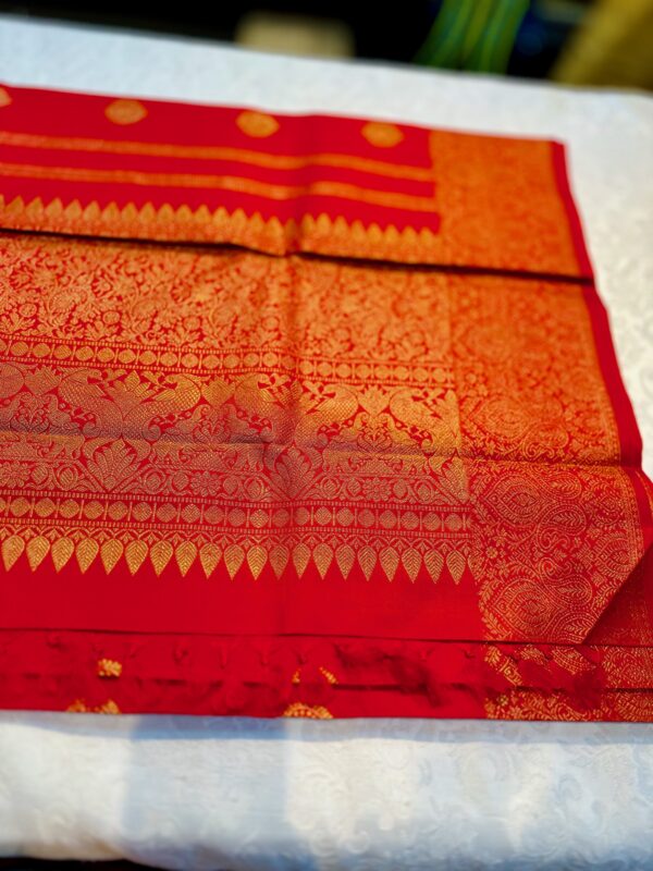 Zari Work: Intricately woven gold/silver zari borders and pallu, adding a luxurious finish.