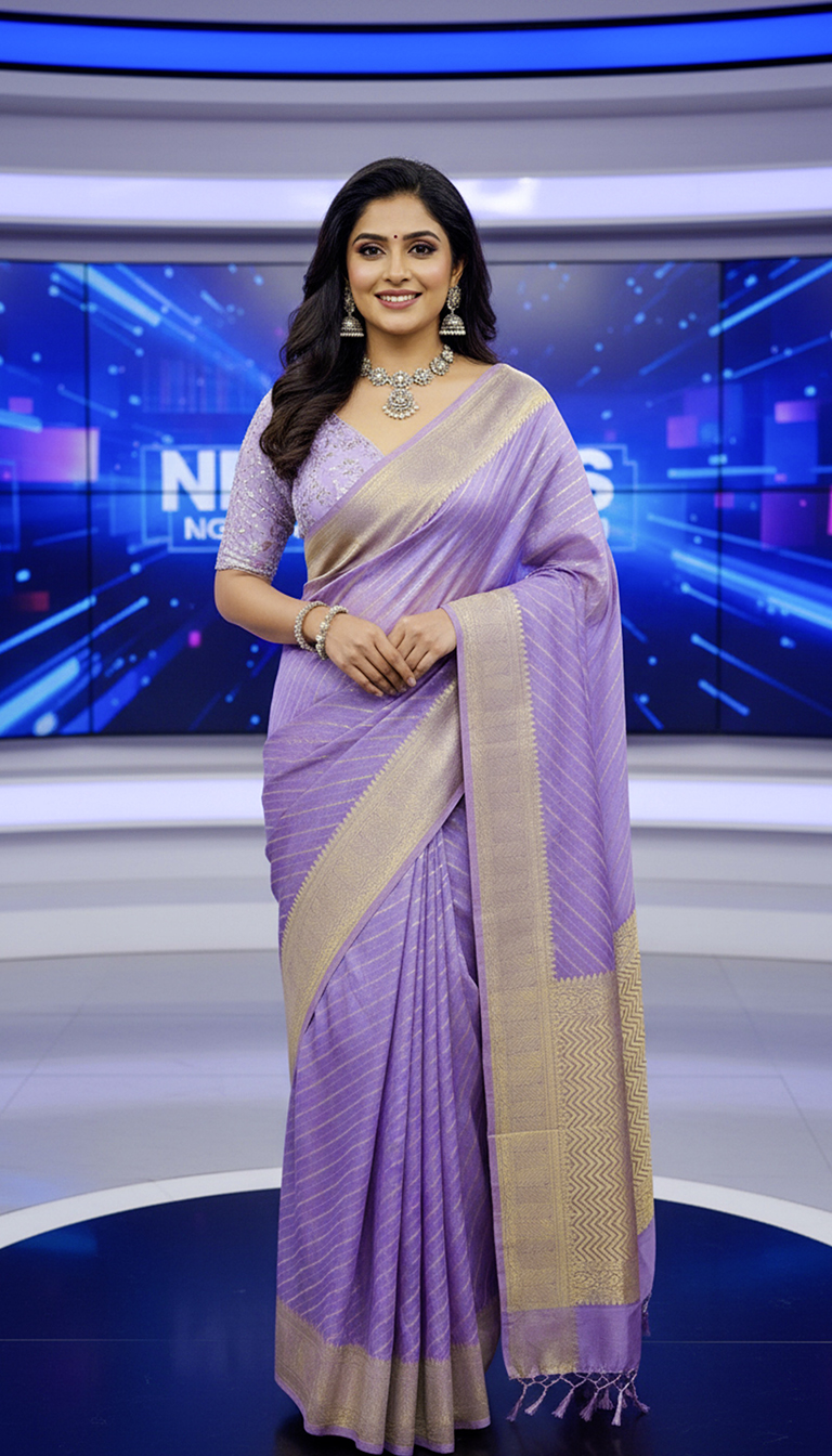 - Color: A soft Lavender with rich Gold Zari detailing.