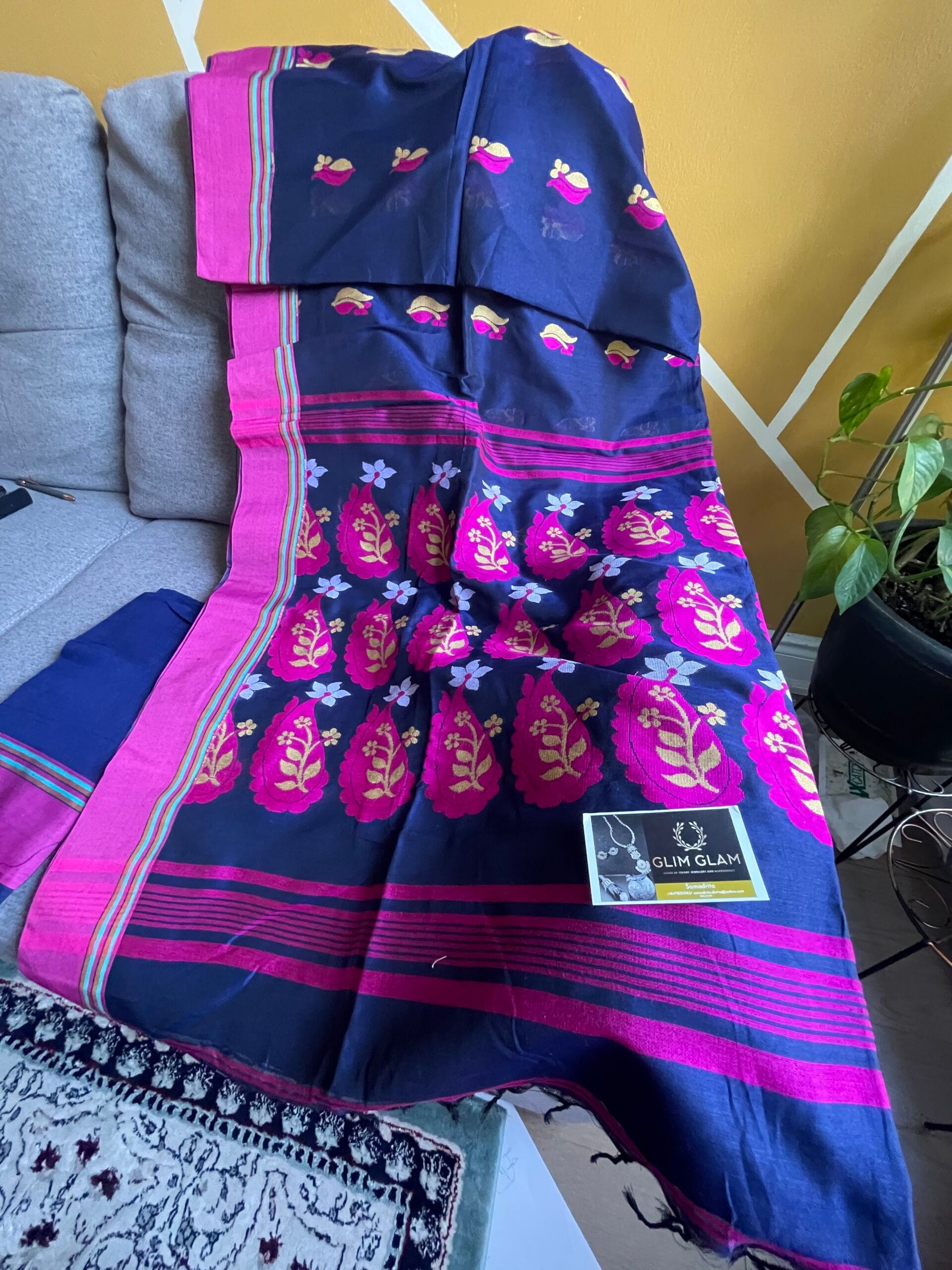 Supper comfortable saree in mesmerising blue and pink combinations. Ready to wear,Fall pico all done comes with blouse piece