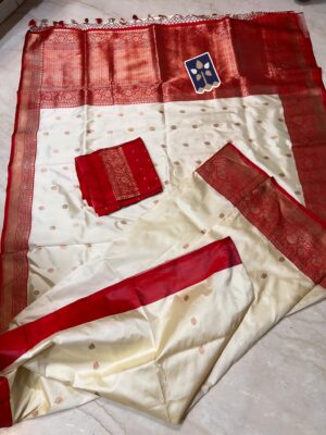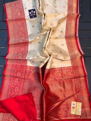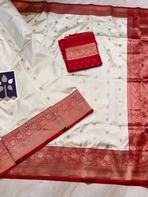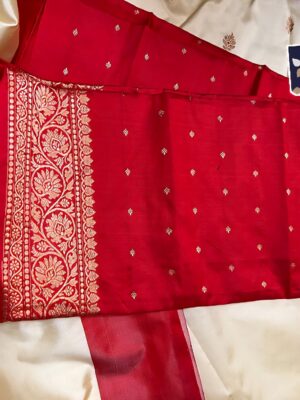 - Weave: A beautiful Banarasi weave featuring a subtle floral jaal across the body,