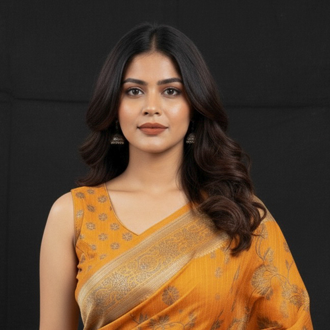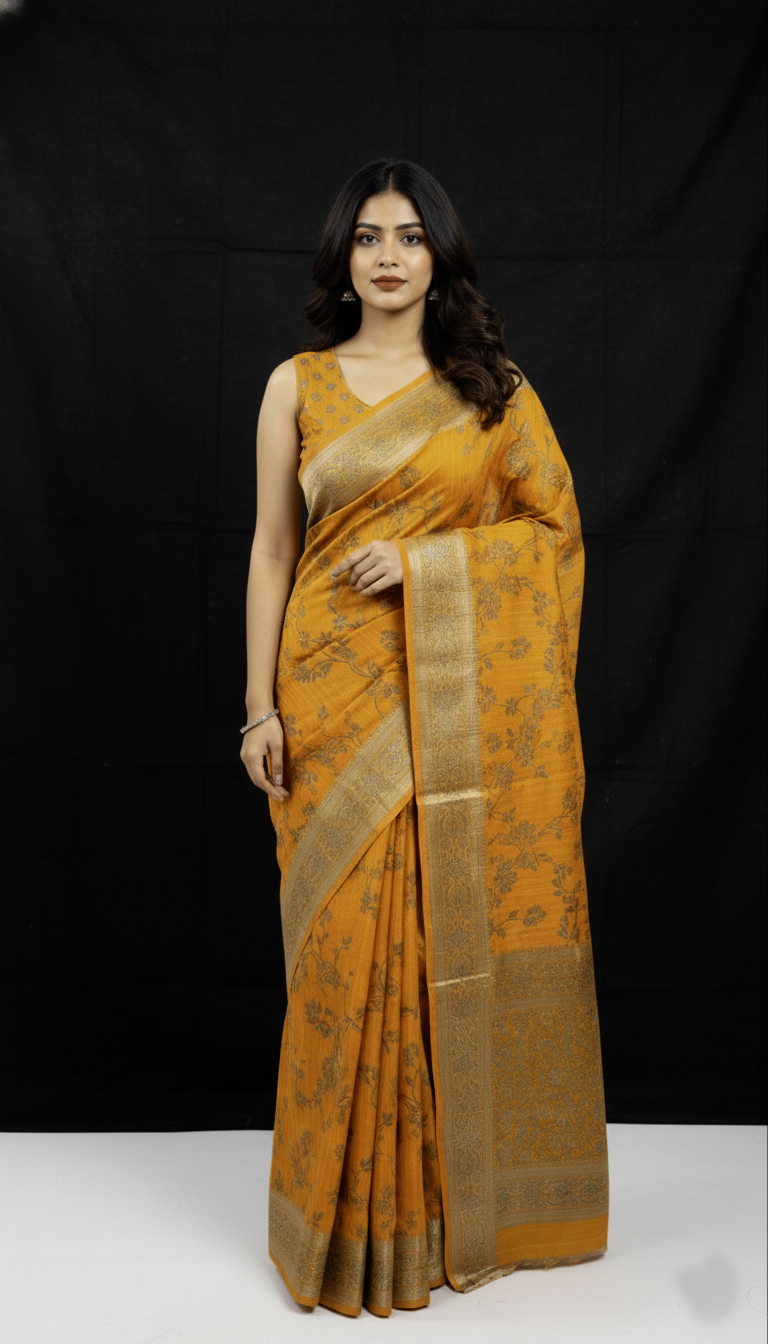 - Color: A rich Mustard Yellow with elegant Antique Gold Zari.