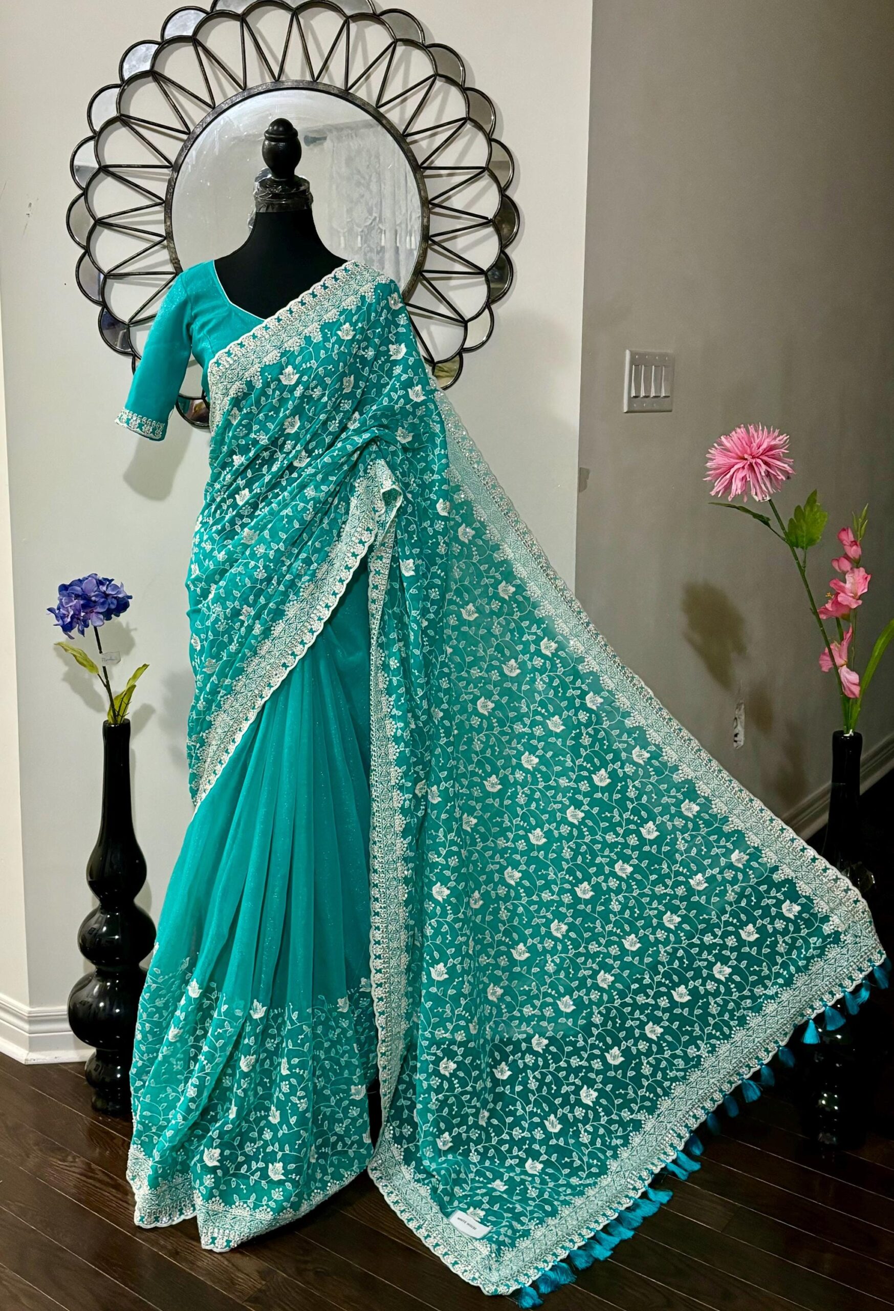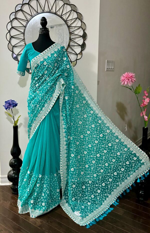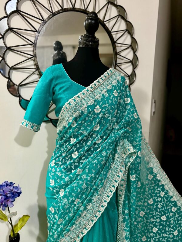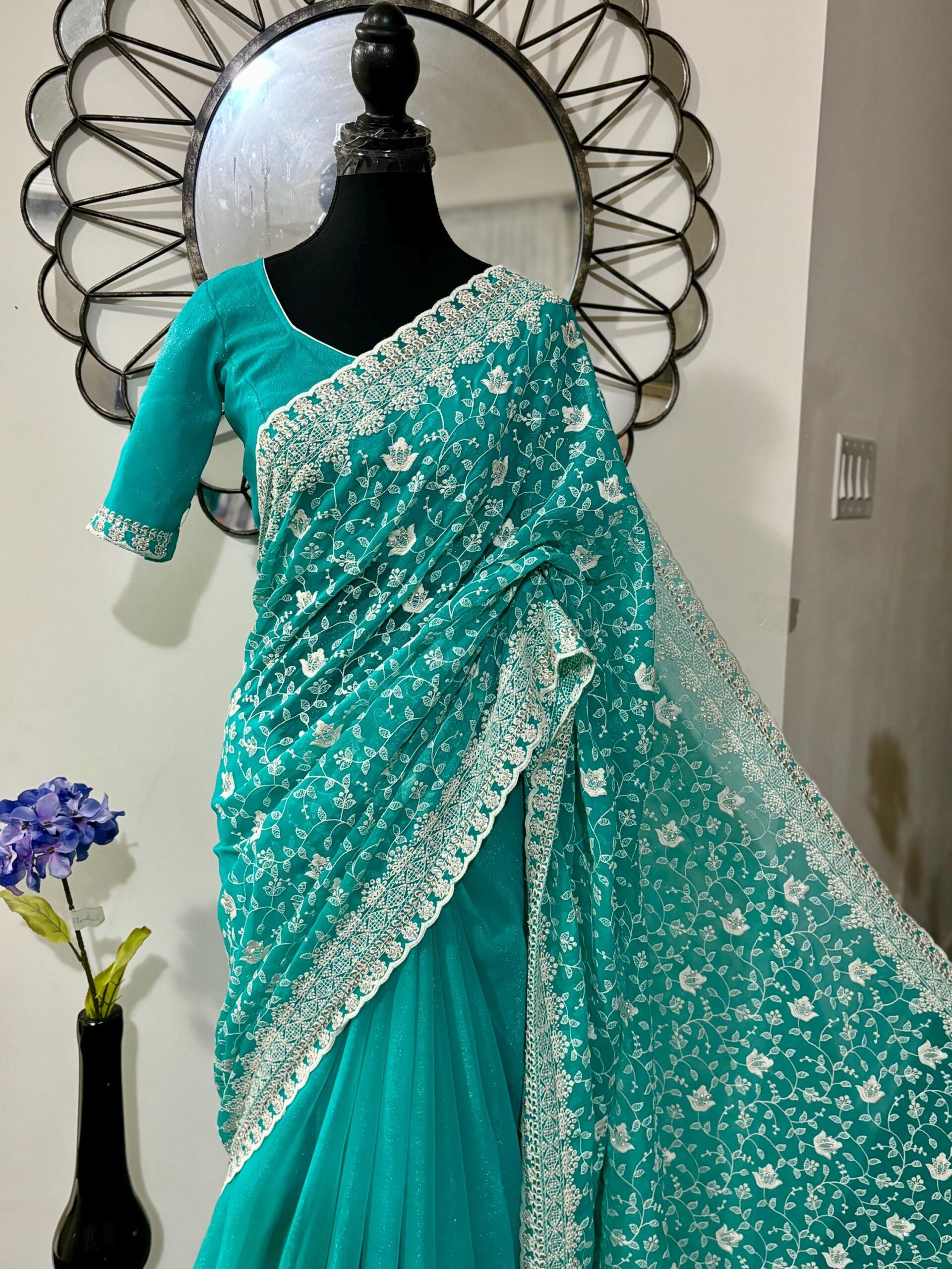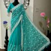 🙏🥳 New Collection 🙏Beautiful shimmer georgette handloom georgette silk saree all over beautiful pearl and thread weaving and beautiful boarder ready blouse