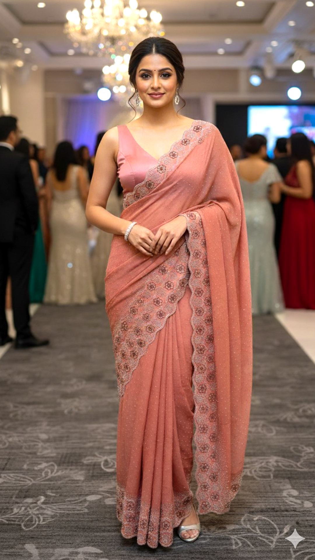 tradition with contemporary style. The soft, flowing georgette fabric drapes