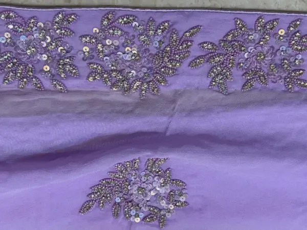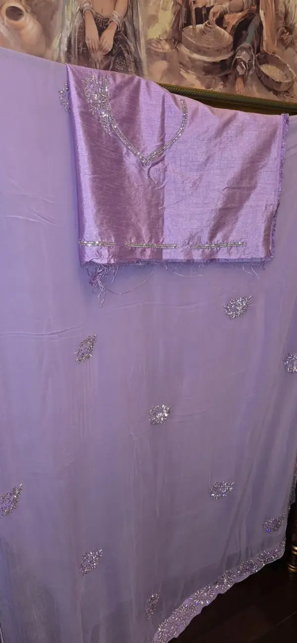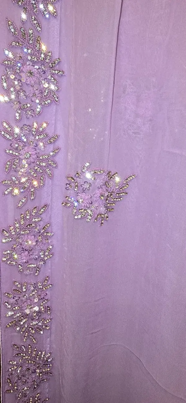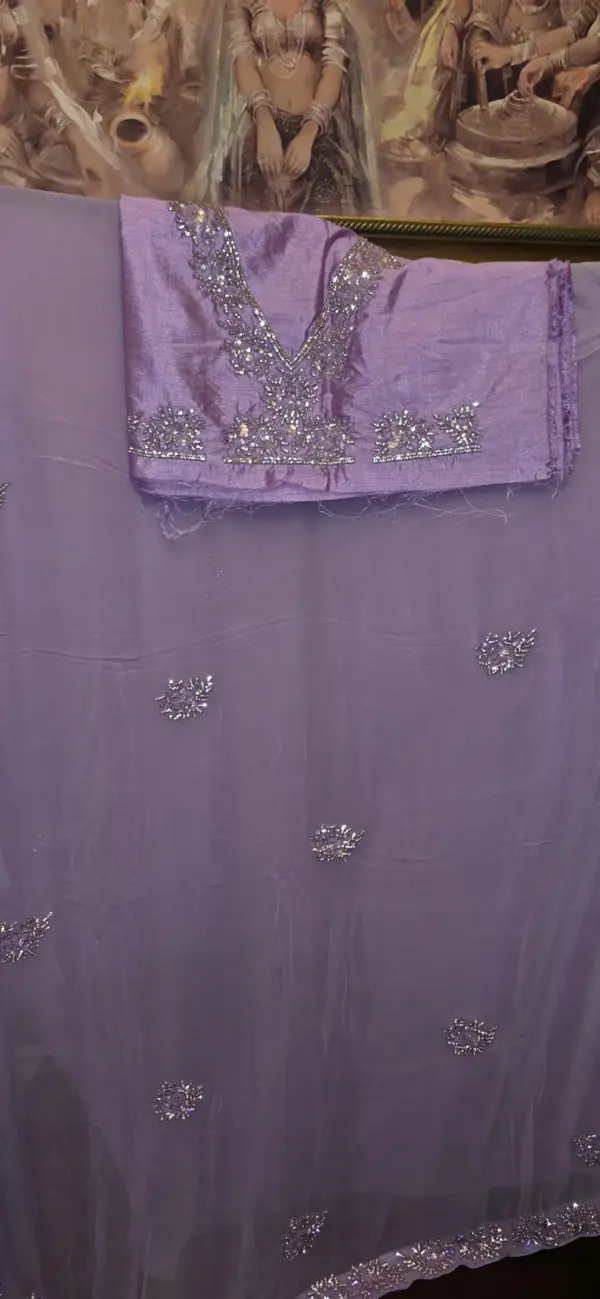 Presenting this beautiful Lavender colour handwork with zircon, sequin, Zardozi, cut dana, beads, work georgette silk saree. Suitable for party wear, Wedding wear, designer soft saree on premium fabric with all-over work.