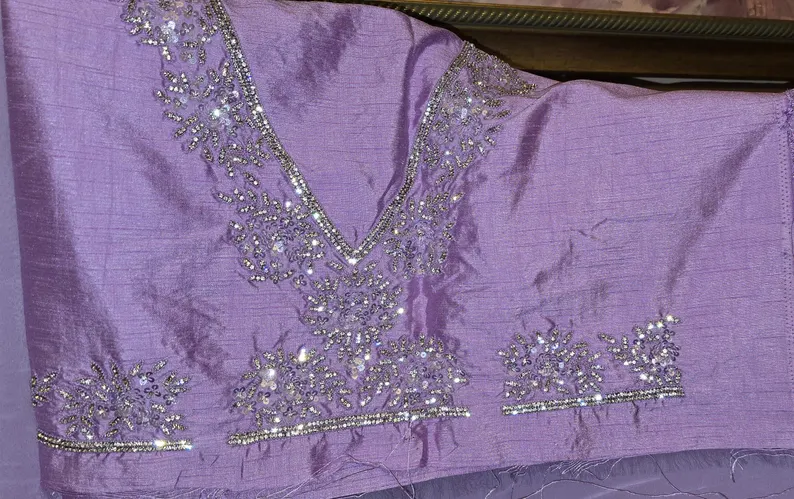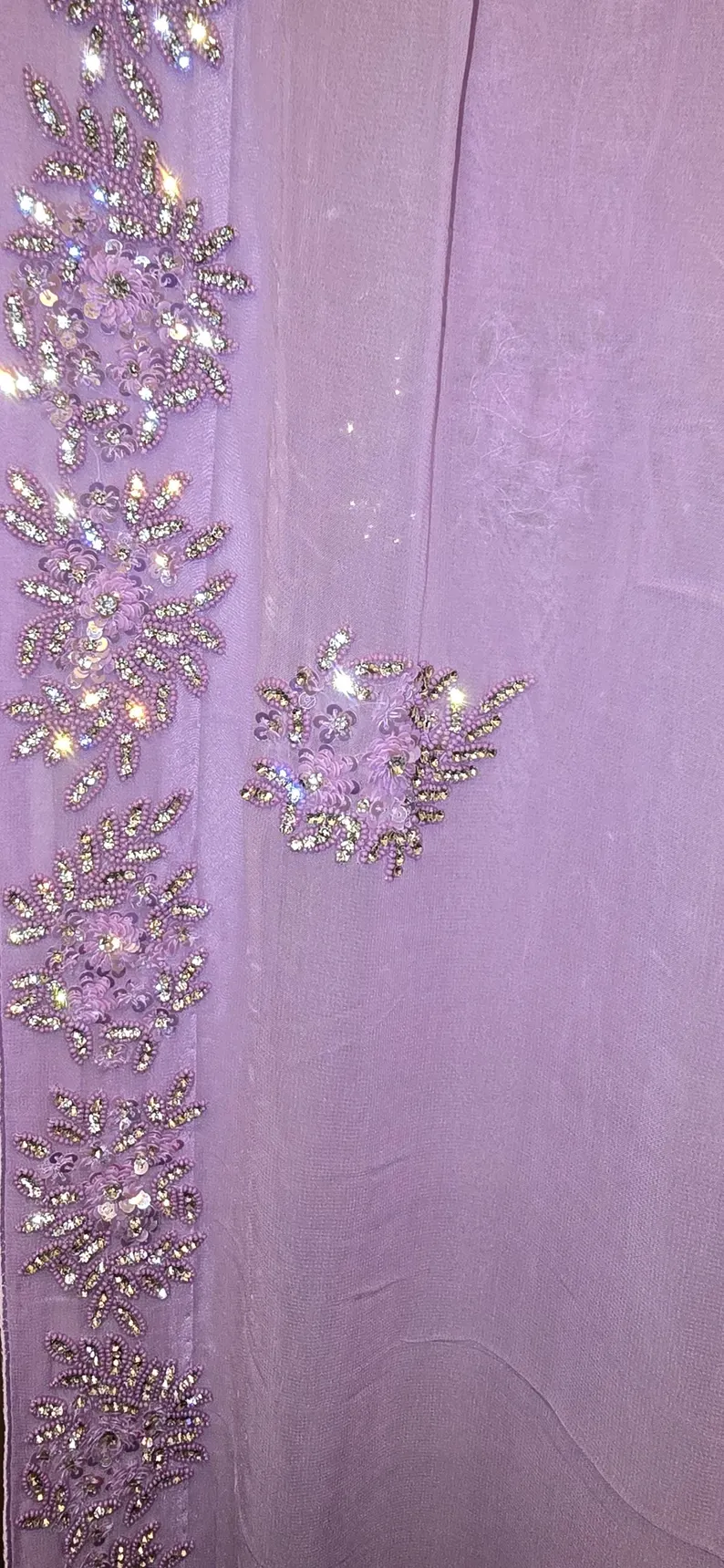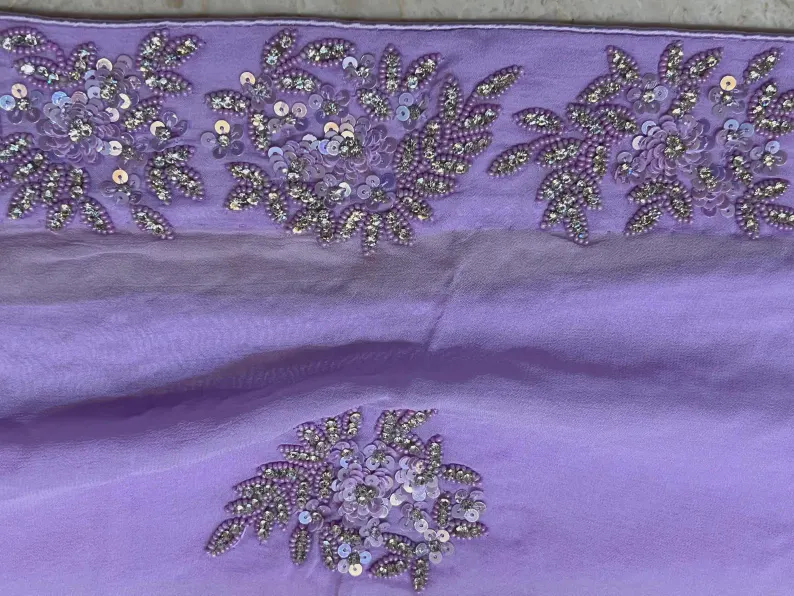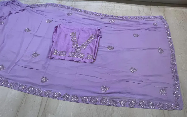 Presenting this beautiful Lavender colour handwork with zircon, sequin, Zardozi, cut dana, beads, work georgette silk saree. Suitable for party wear, Wedding wear, designer soft saree on premium fabric with all-over work.