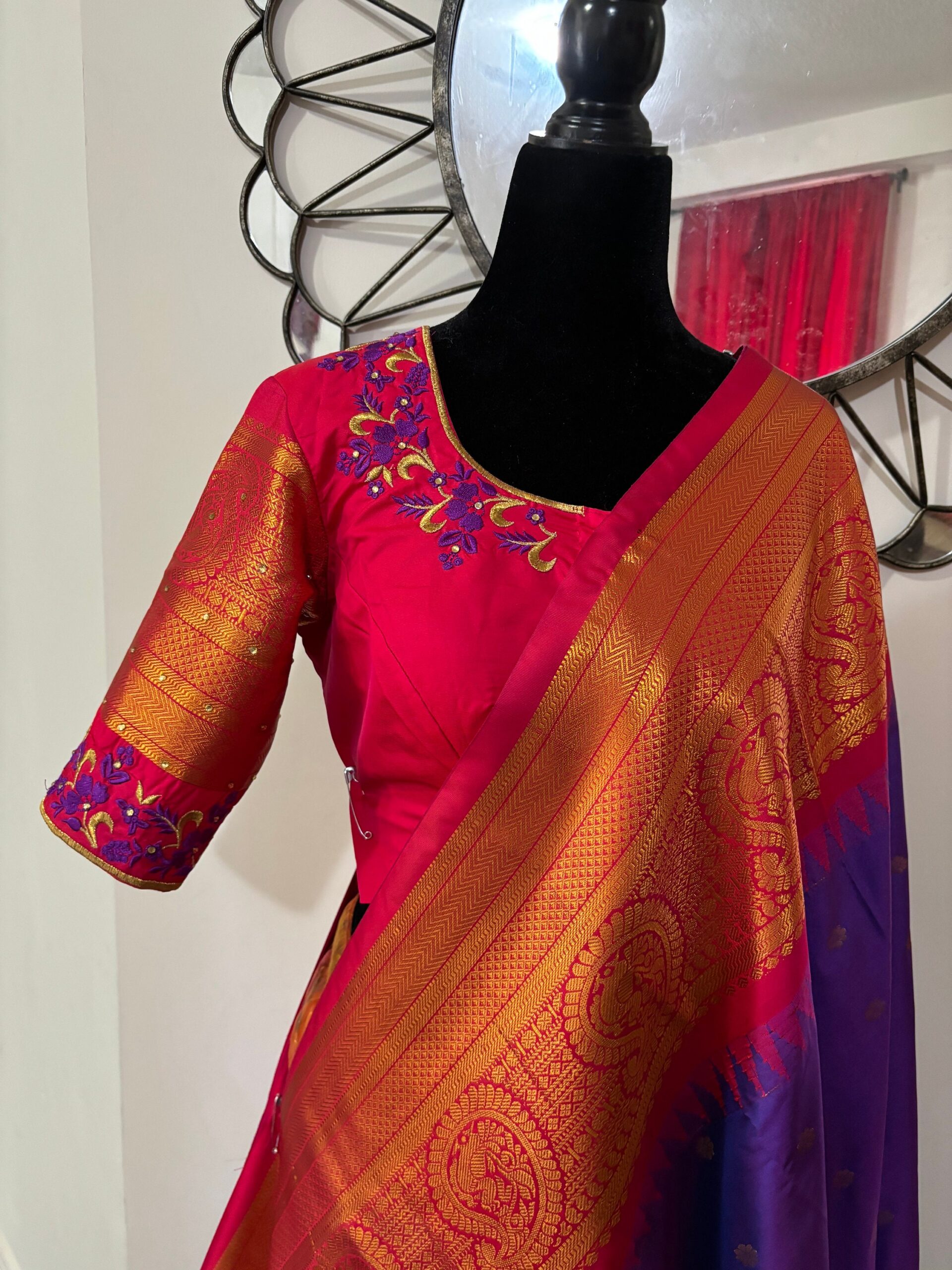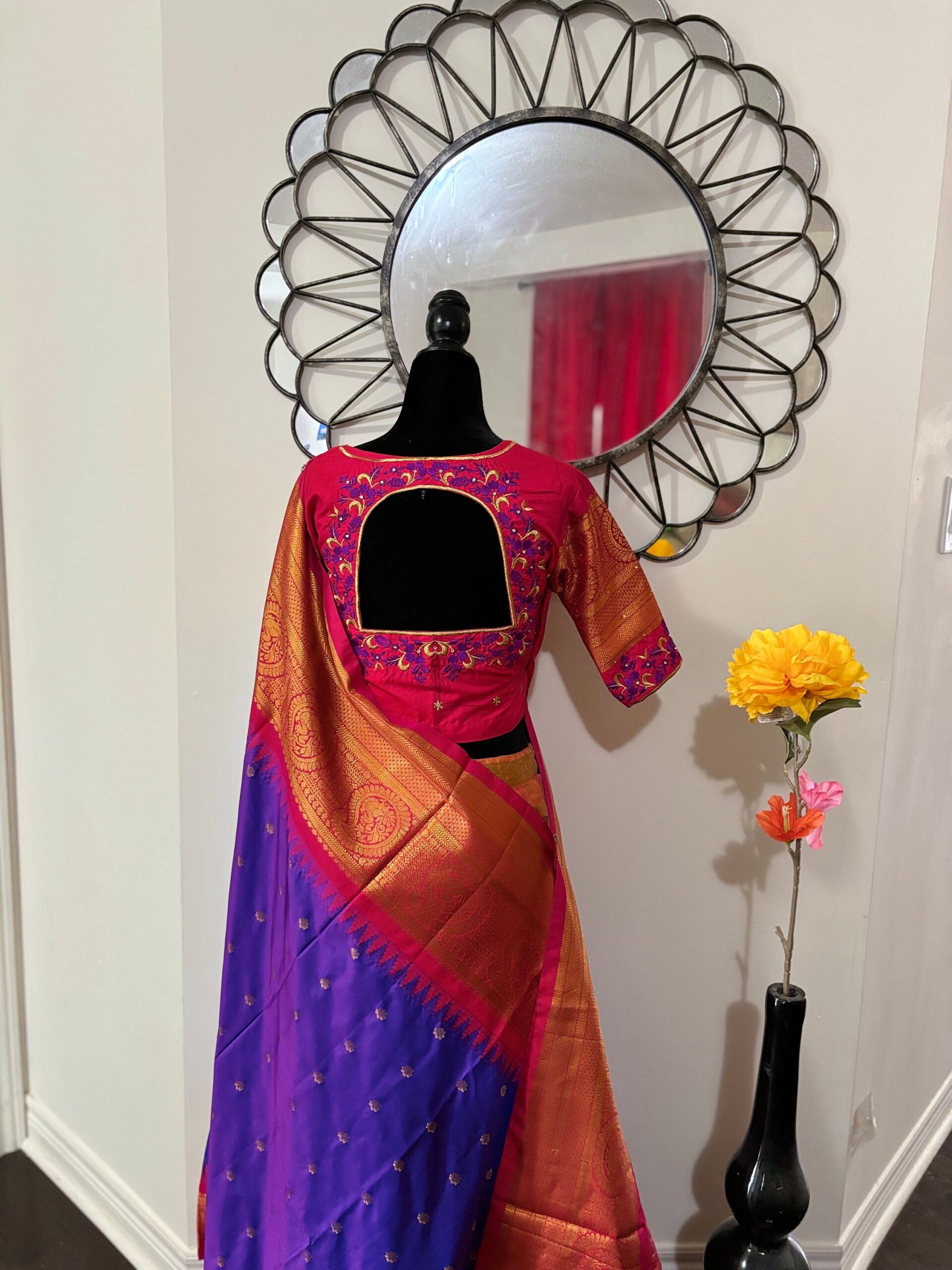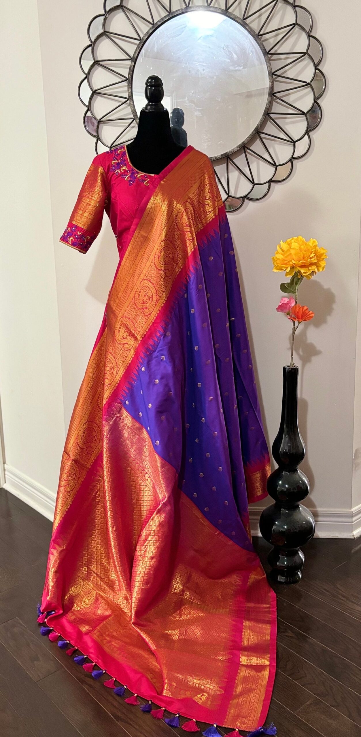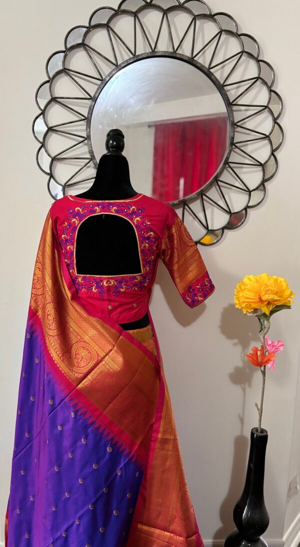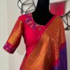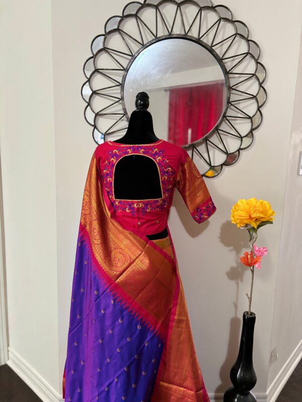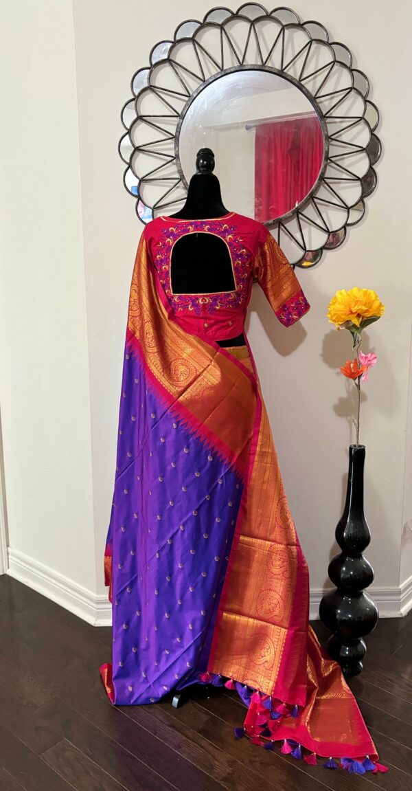 Handloom Gadwal powerloom single weaving pure silk sarees ready to wear blouse with Durga ma embroidered blouse fits up to 32 -46 saree is ready fall,pico tussels