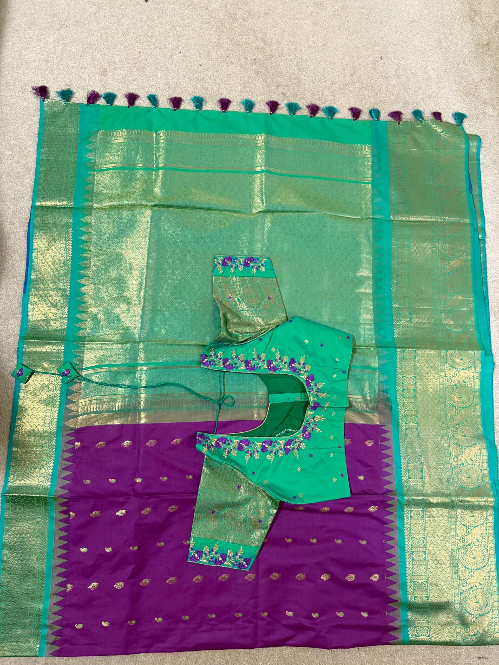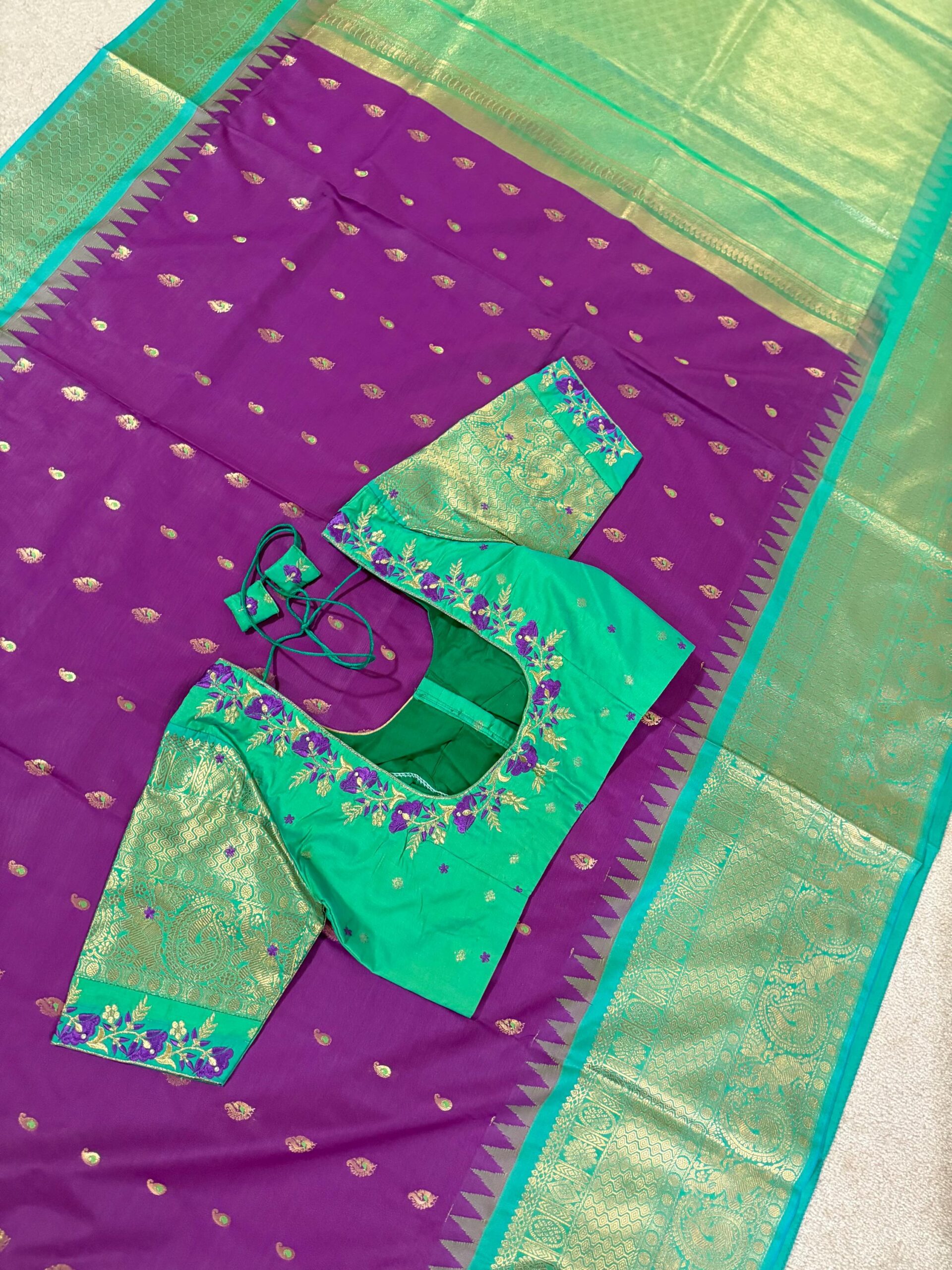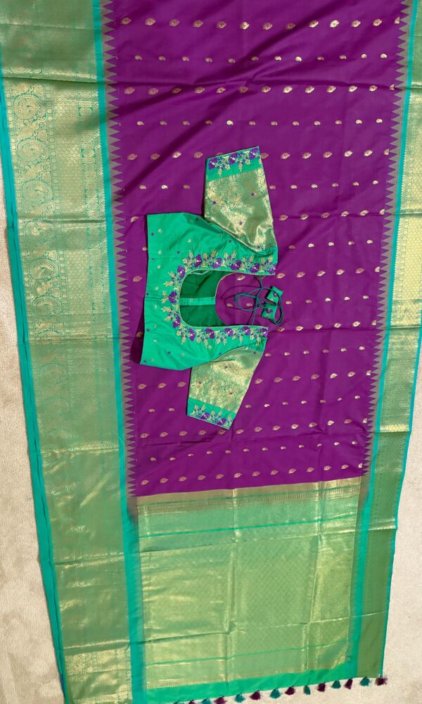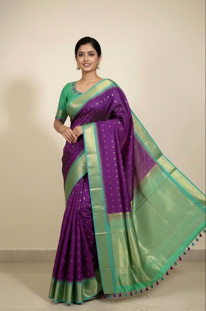 Gadwal Premium silk handloom sarees in purple and green