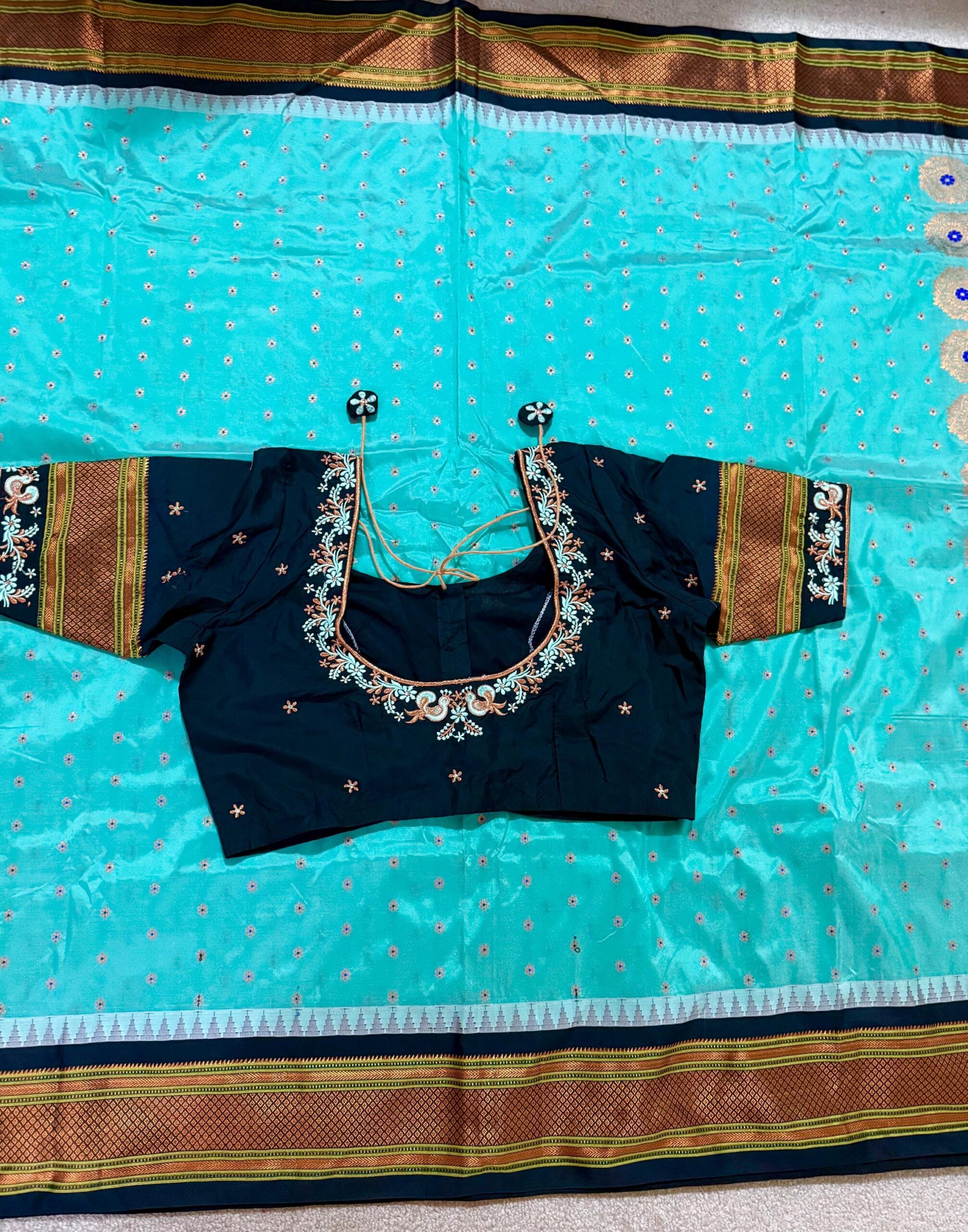 Handloom Gadwal pure silk sarees ready to wear blouse with beautiful embroidered blouse fits up to 32 -46 saree is ready fall,pico tussels