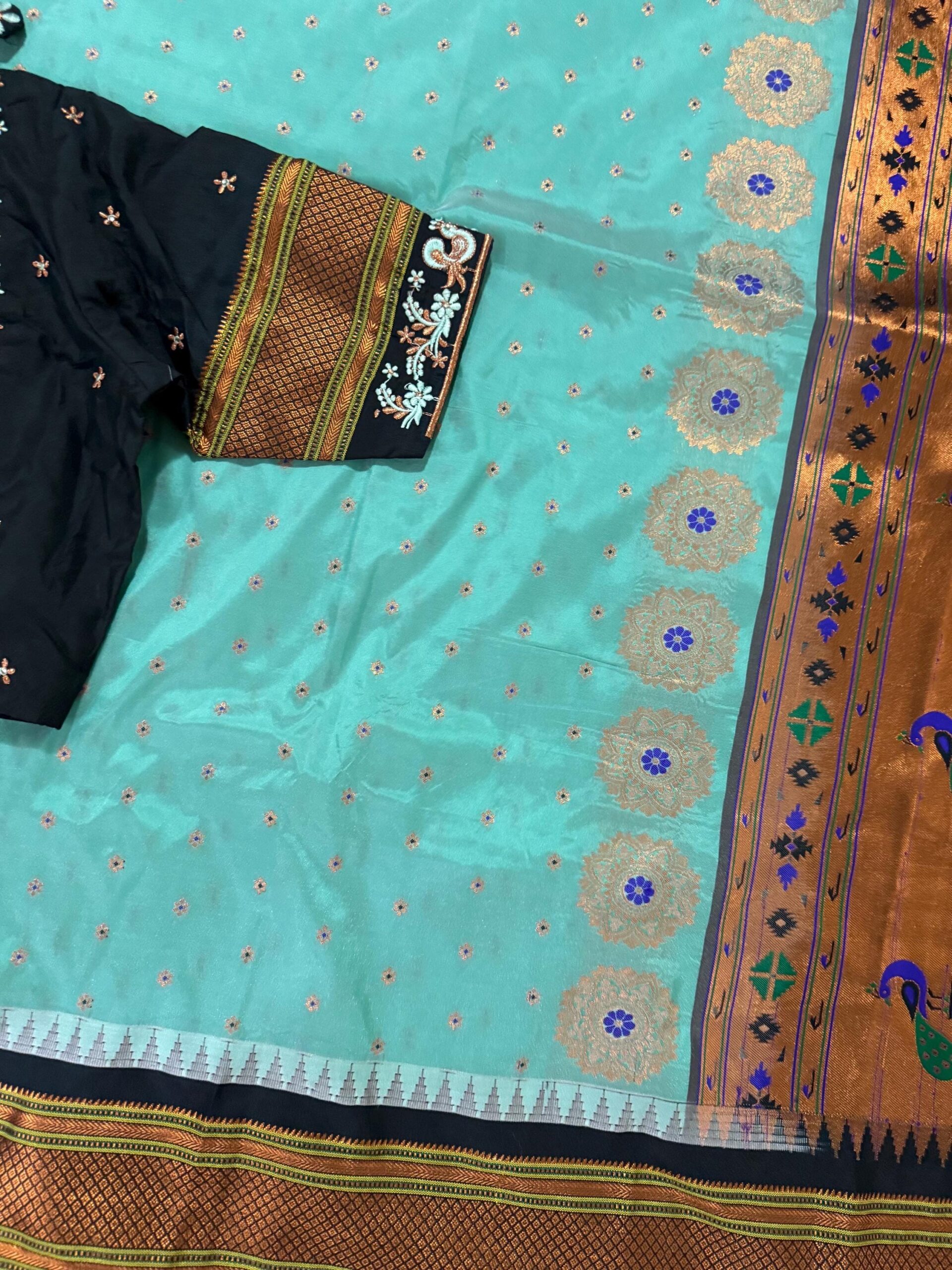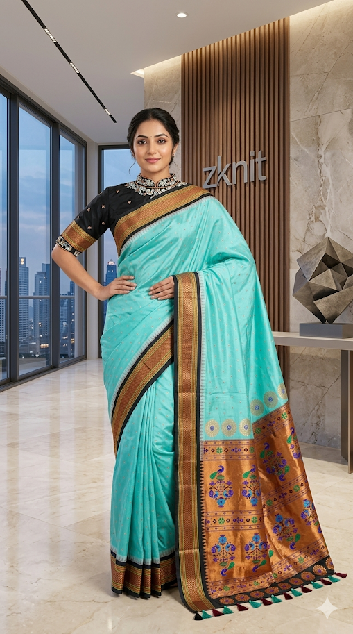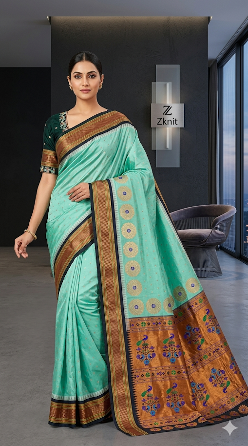 Gadwal Premium silk handloom sarees in Teal green
