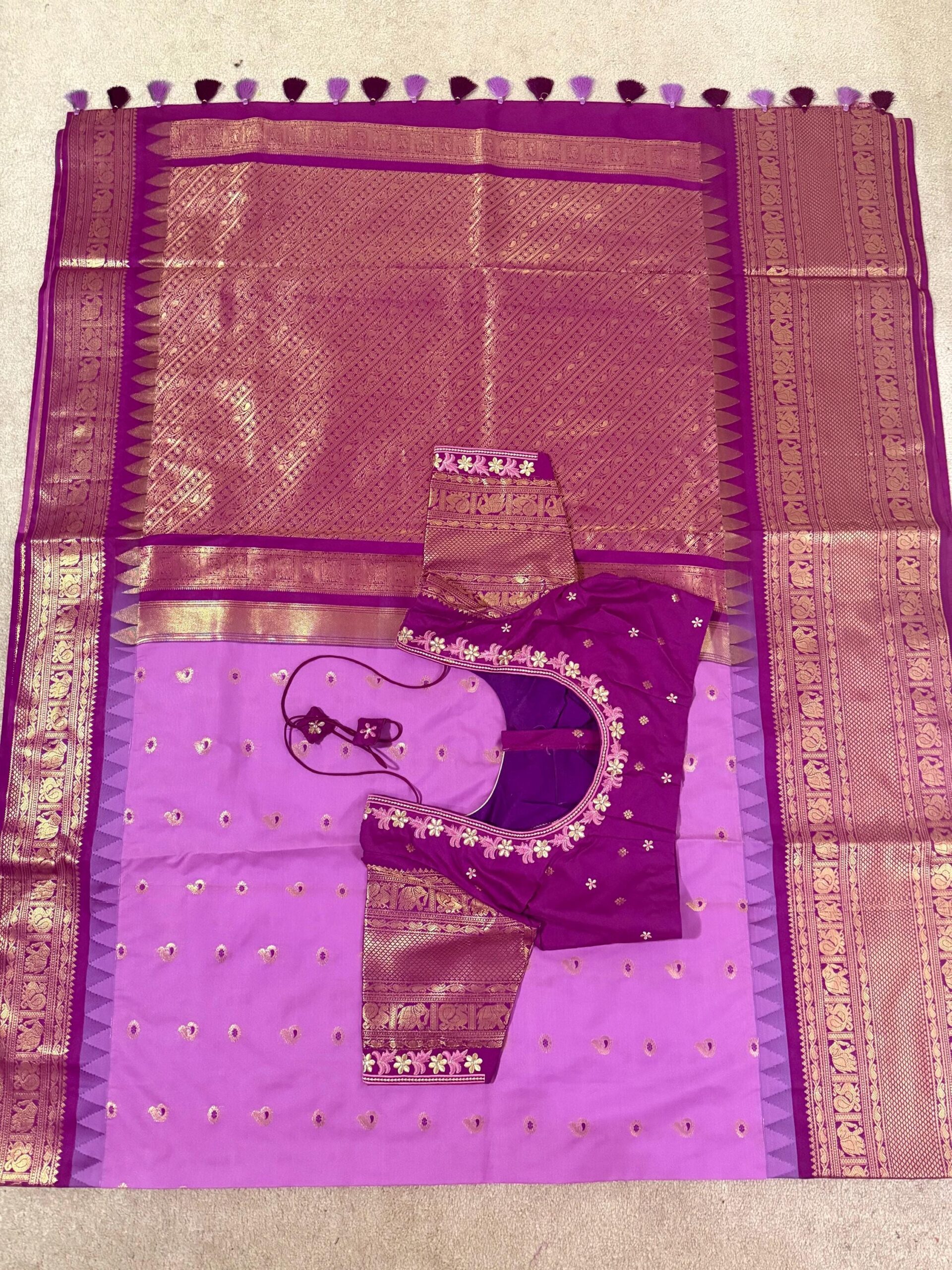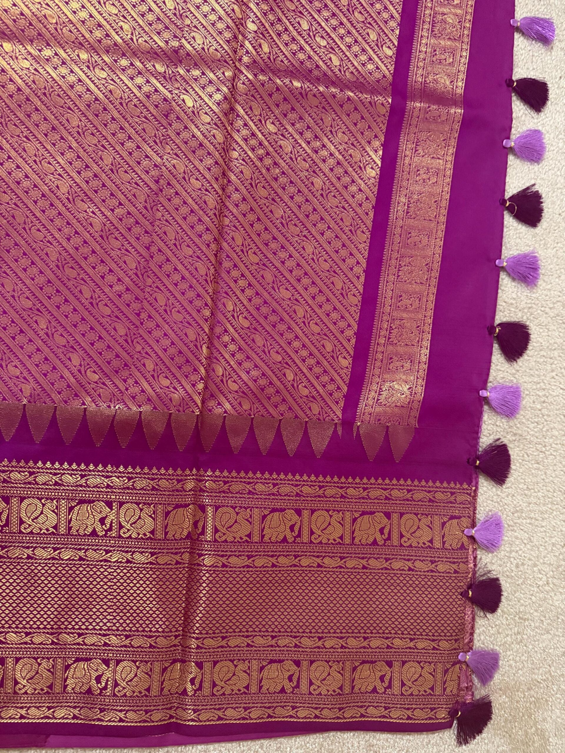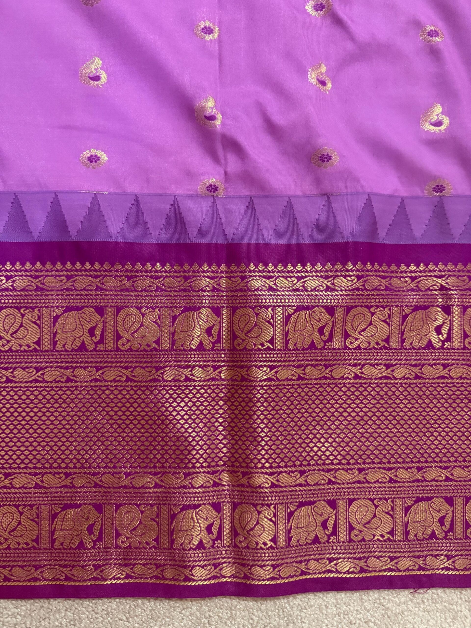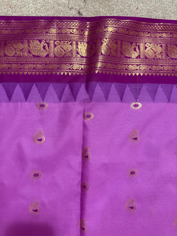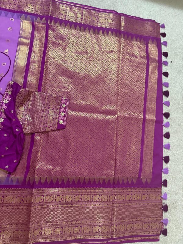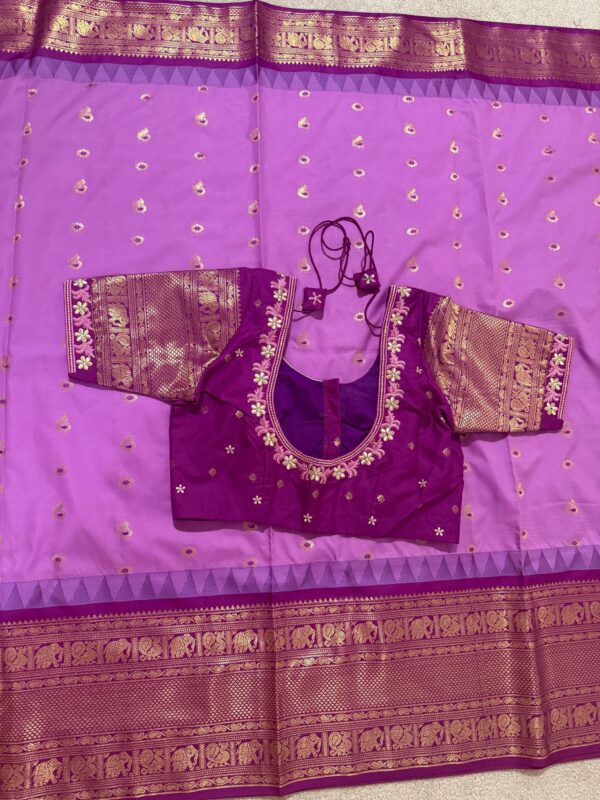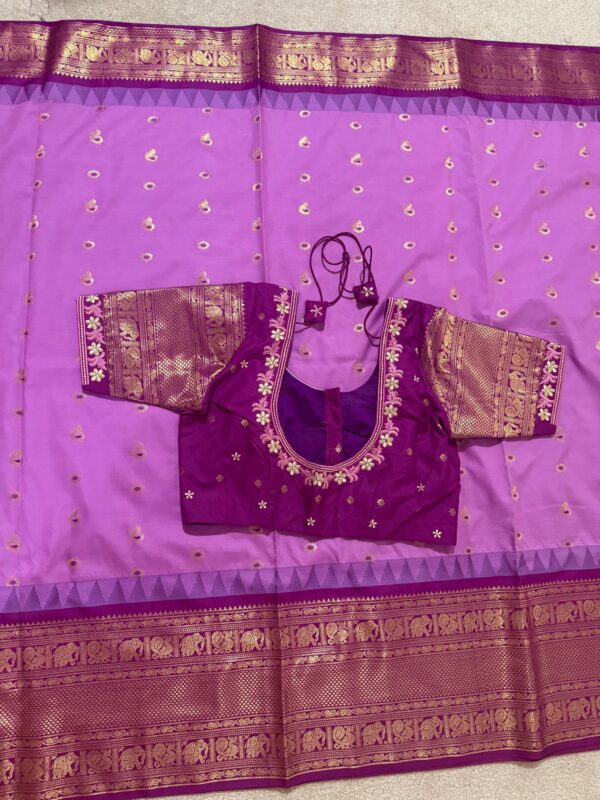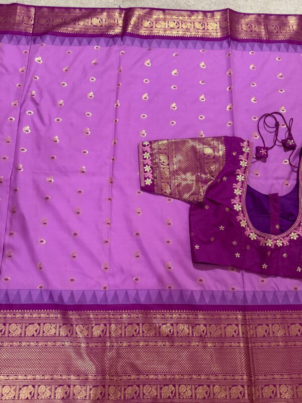 Gadwal premium silk saree in purple Handloom Gadwal silk sarees with kuttu borders contrast pallu and blouse……..💛💛💛