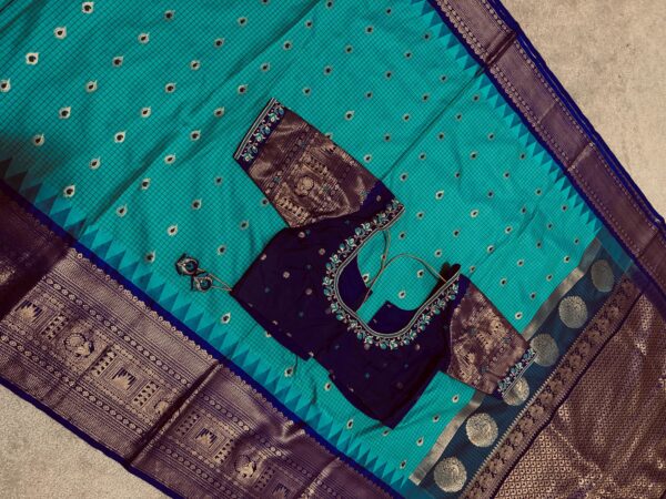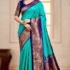 Gadwal Premium silk handloom sarees in Turquoise blue