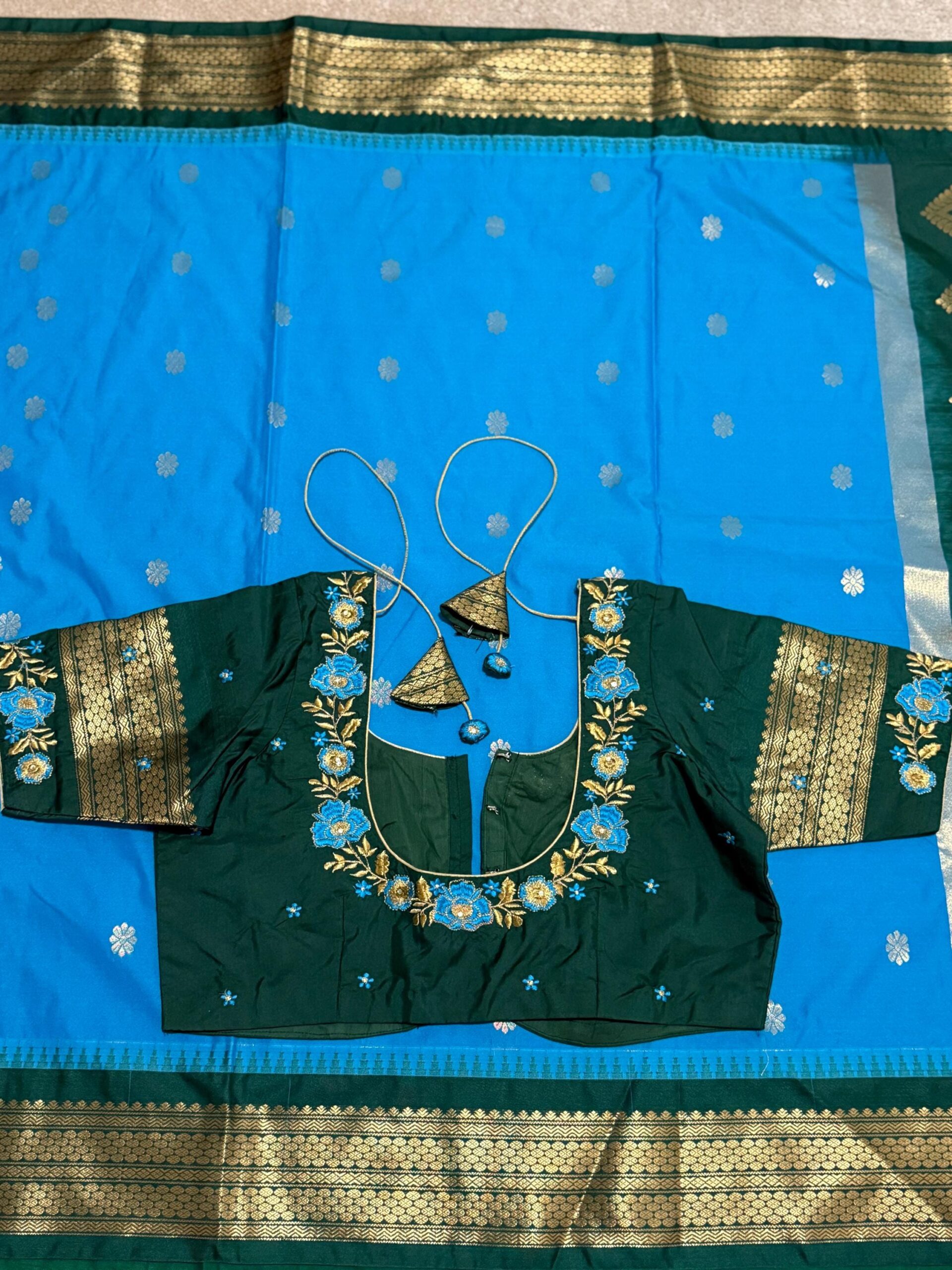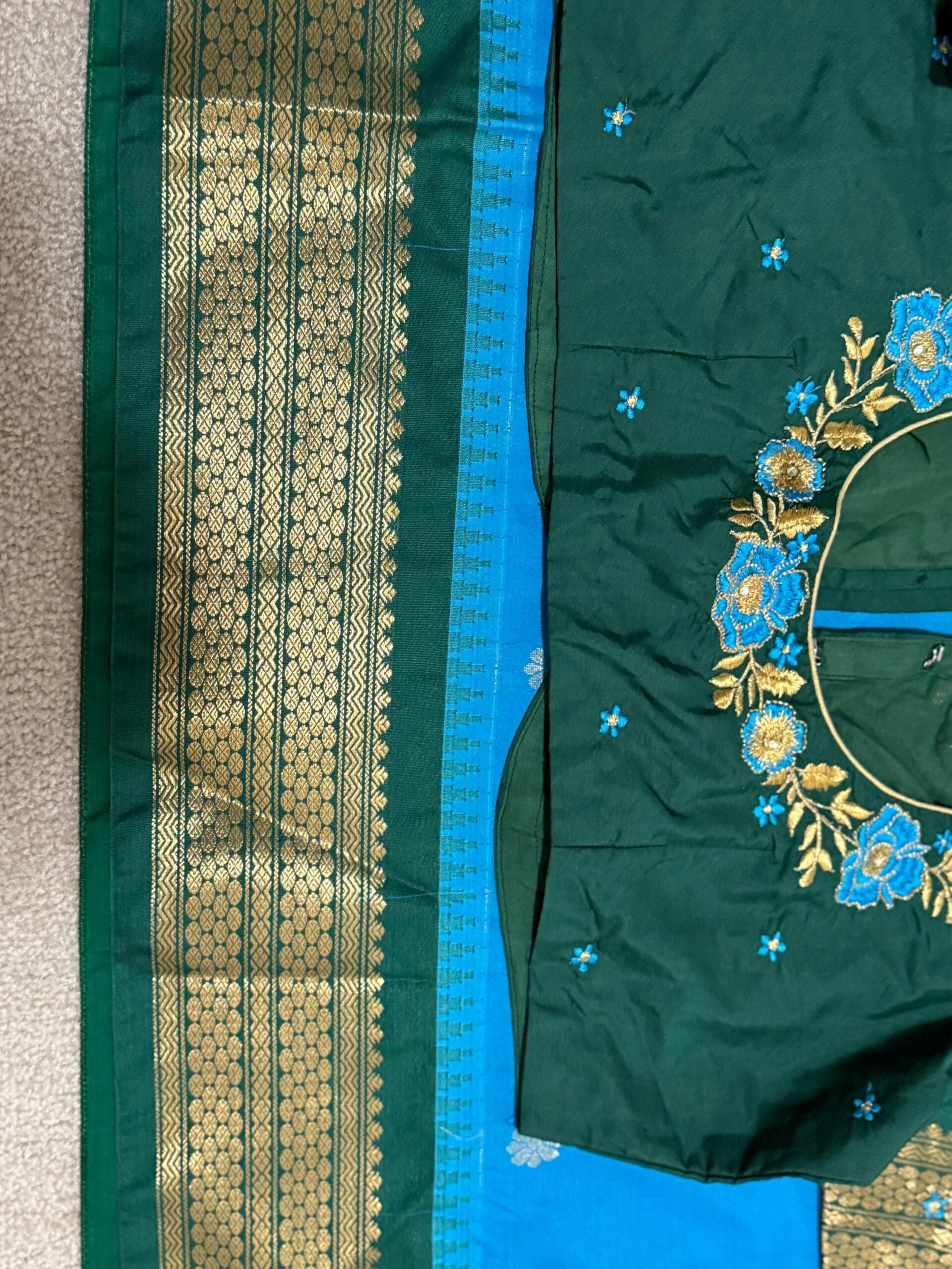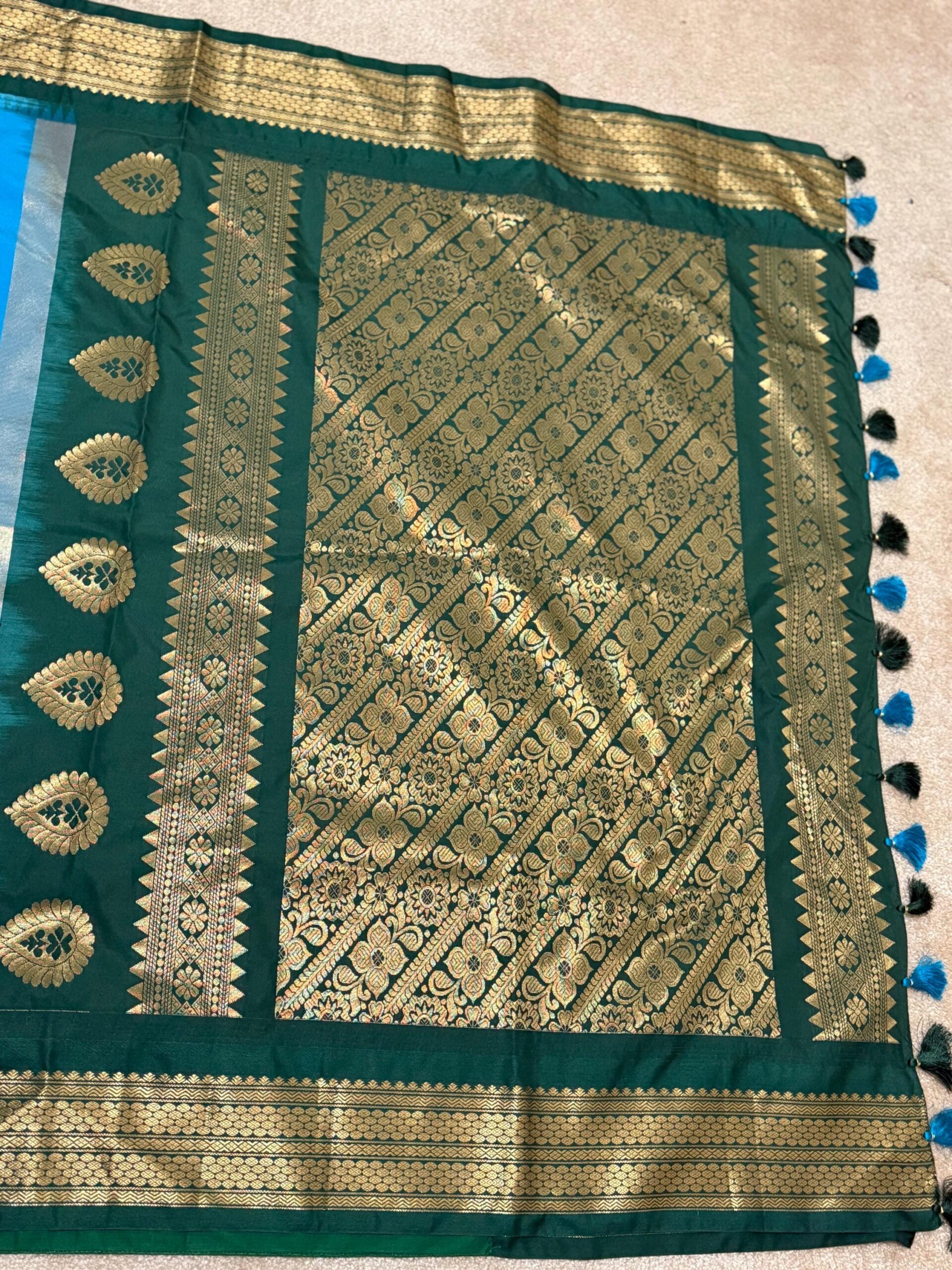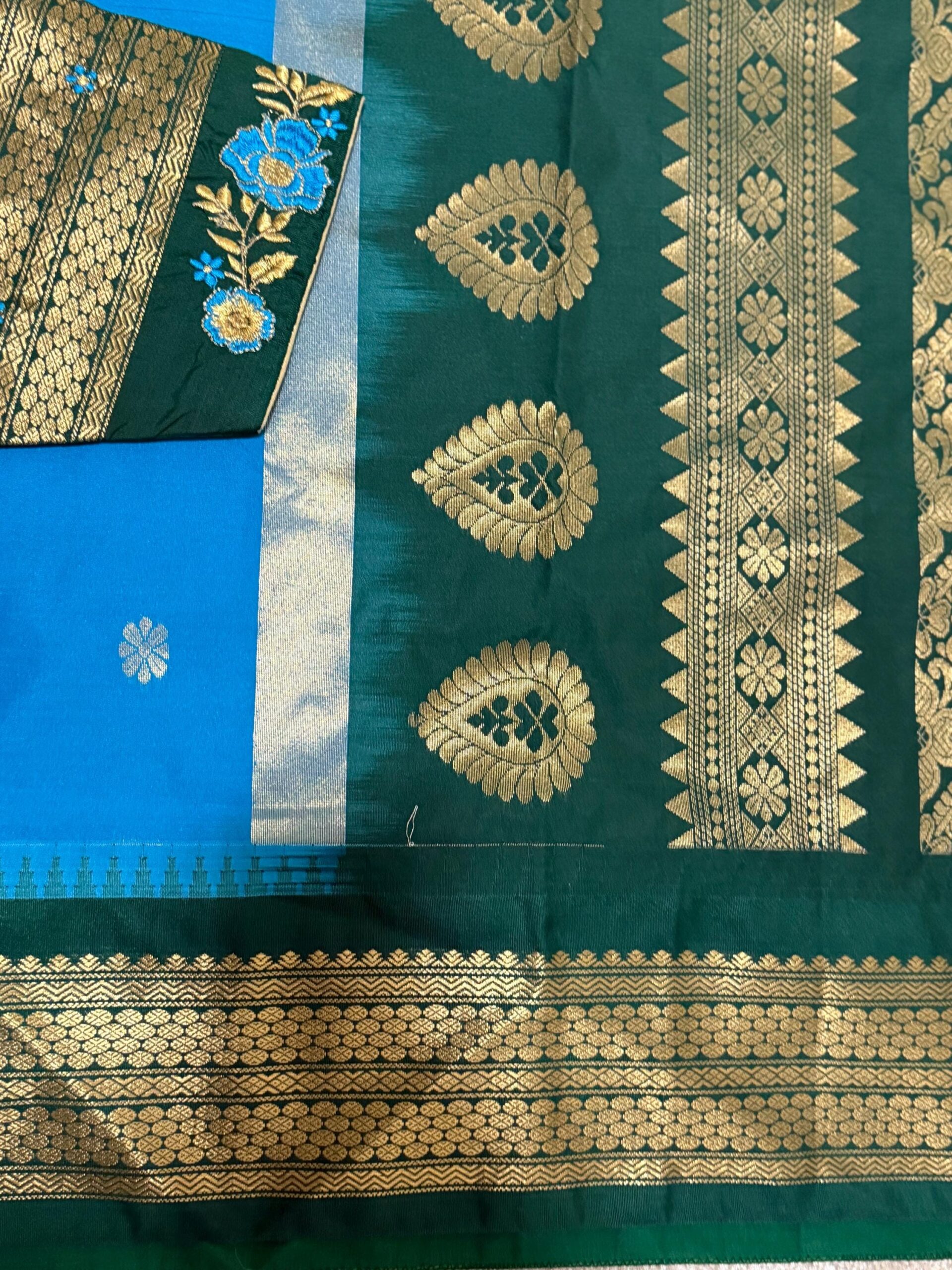 Gadwal Premium silk handloom sarees in blue and green