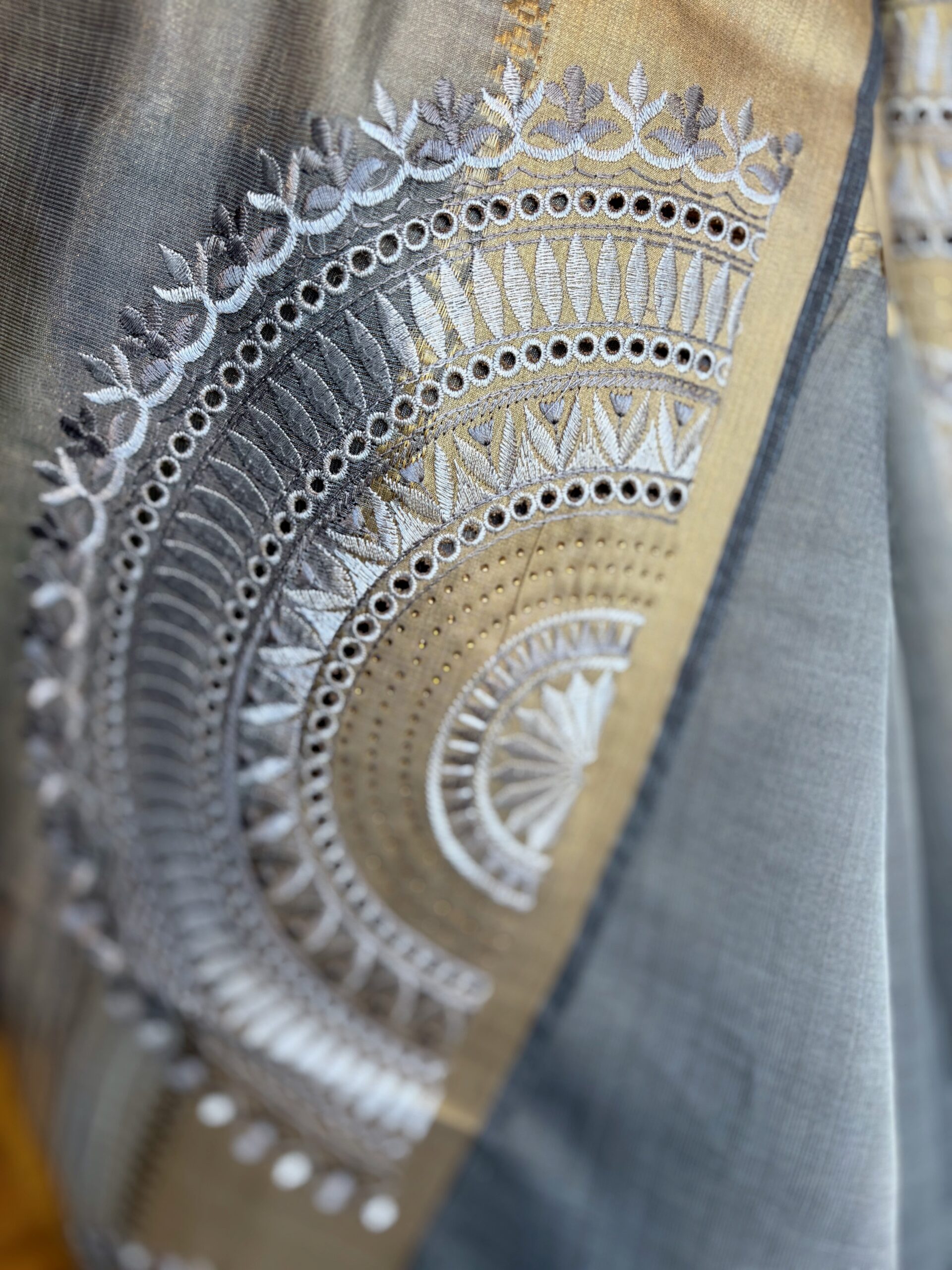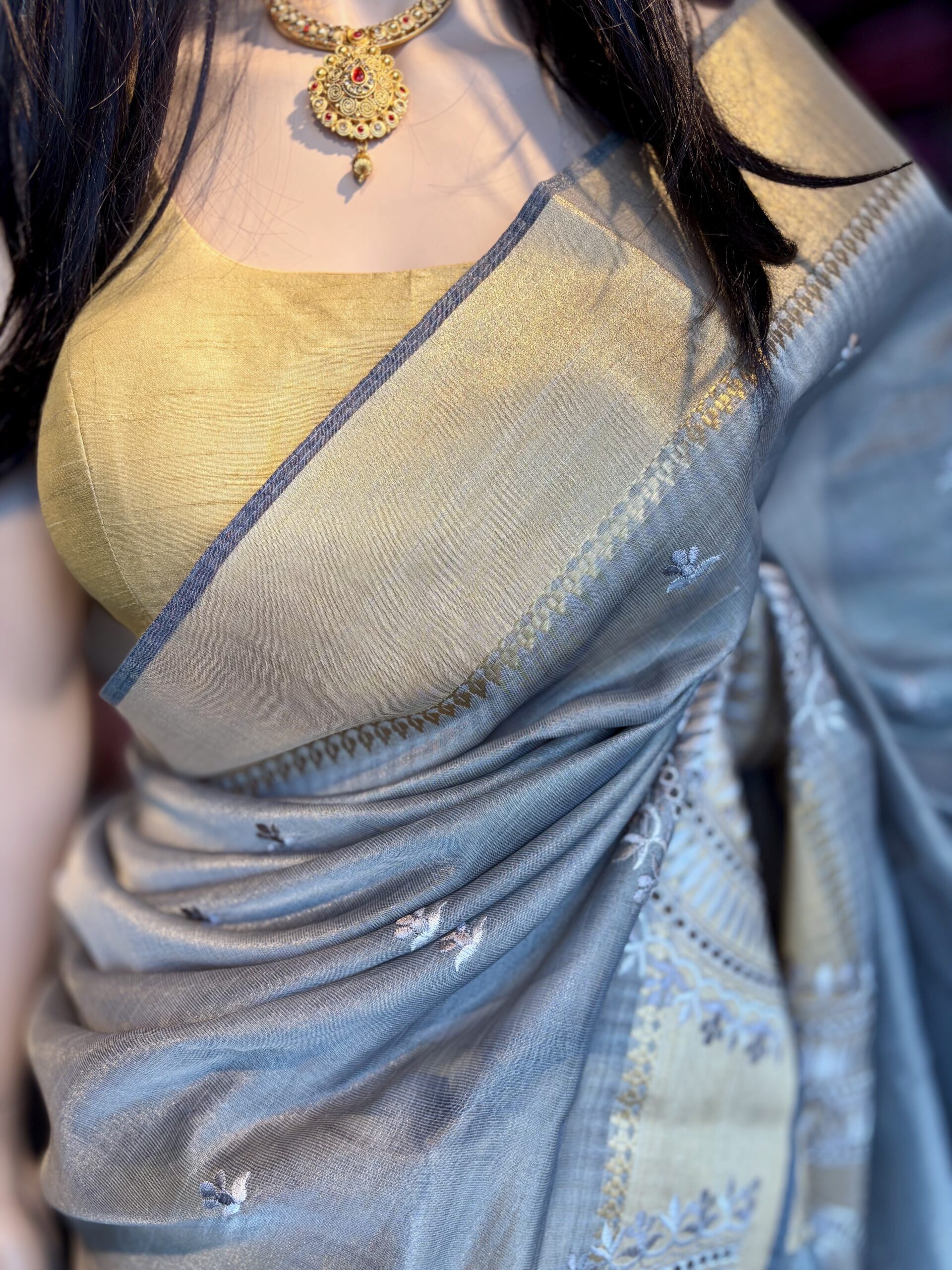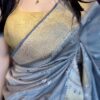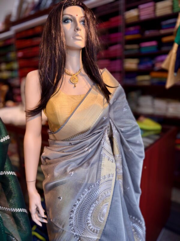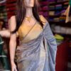 Grey Semi Silk Kanjeevaram style Saree with Gold border and embroidery