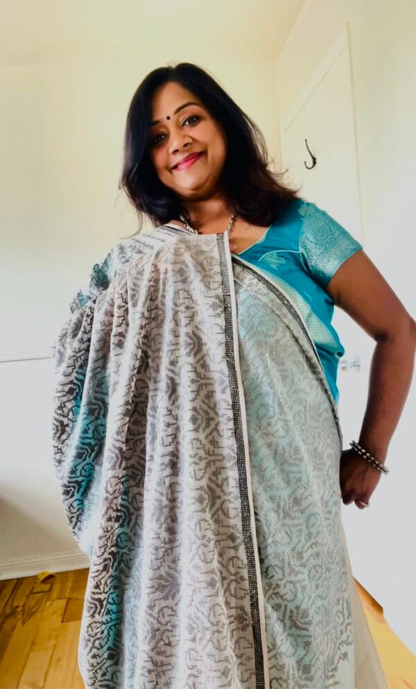 Pure handloom sari in grey...