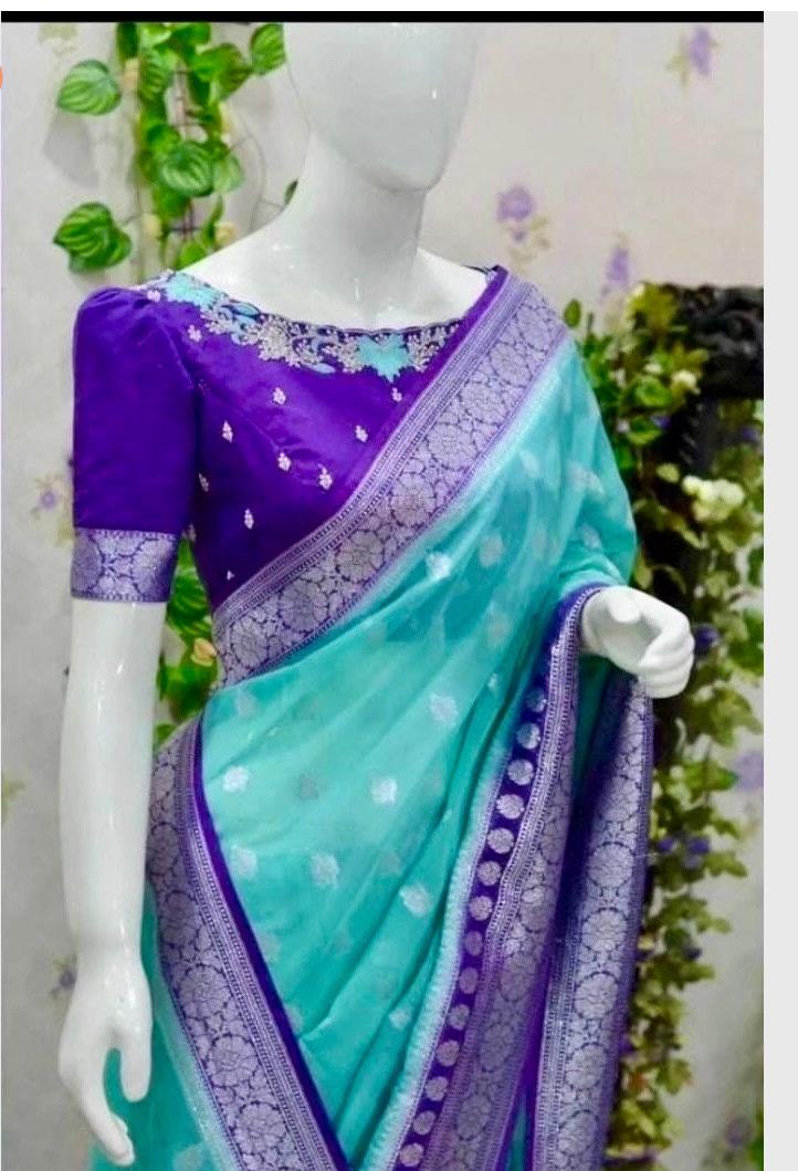 Beautiful Banarasi soft falling Handloom saree paired up with pretty maggam work blouse.