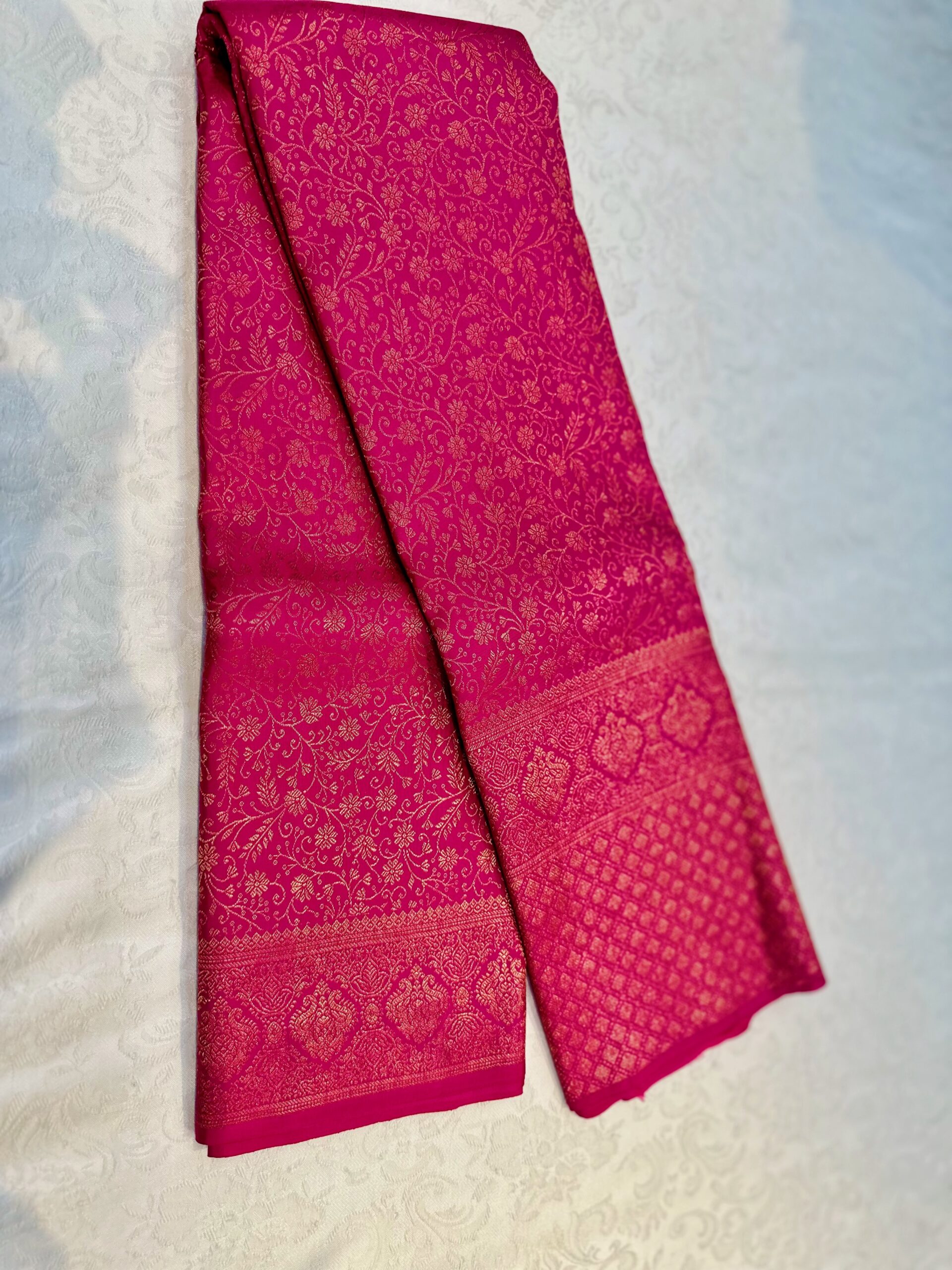 Weave: Authentic handwoven Kanjeevaram weave crafted by skilled artisans from Kanchipuram.