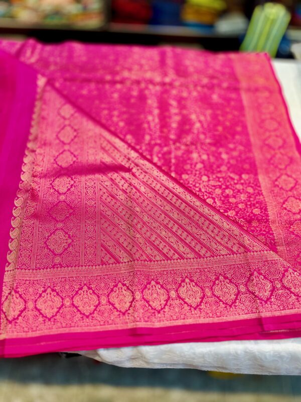Zari Work: Intricately woven gold zari borders and pallu, adding a luxurious finish.