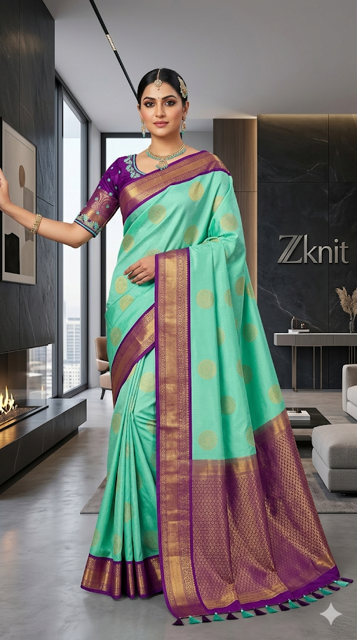 Kanjeevaram Kanchipuram soft silk saree in sea green
