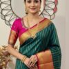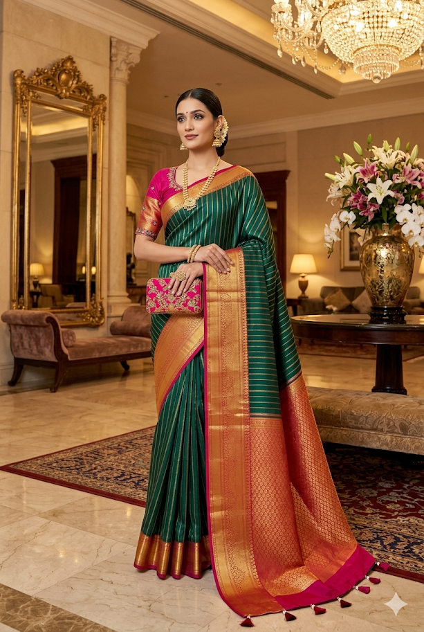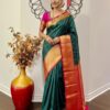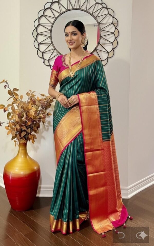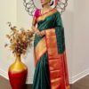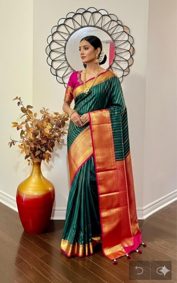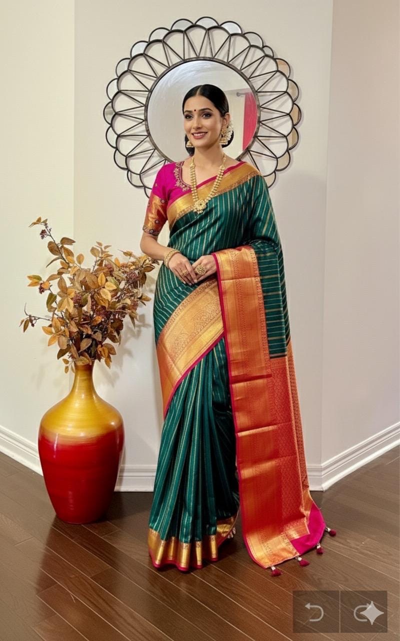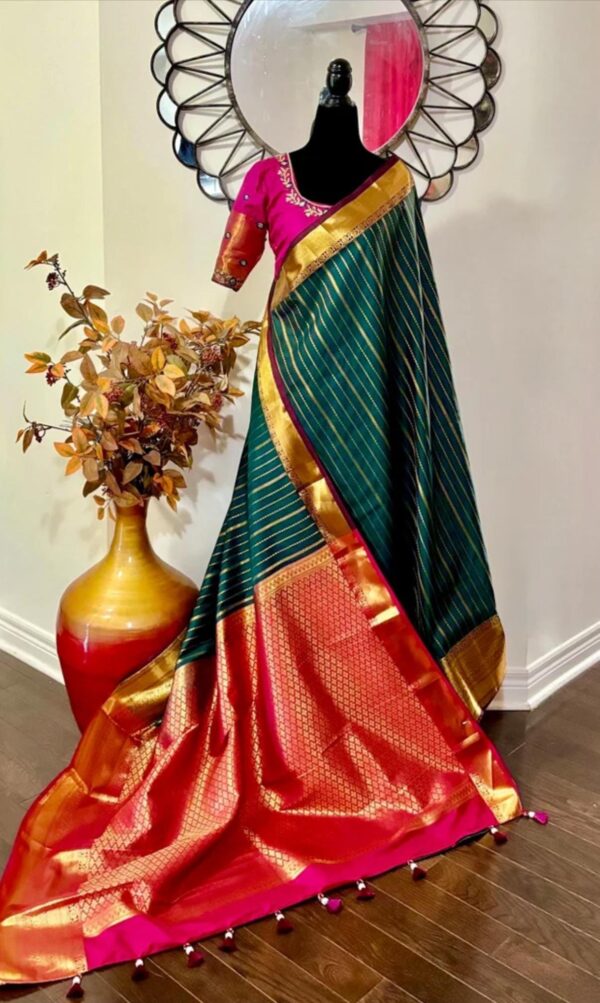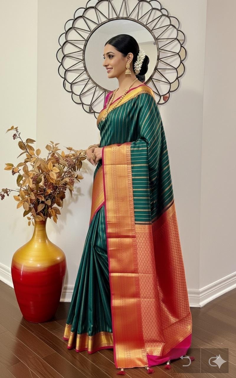 💥kanchipuram silk saree with rare color combinations with ready to wear work blouse that first to 34 to 46